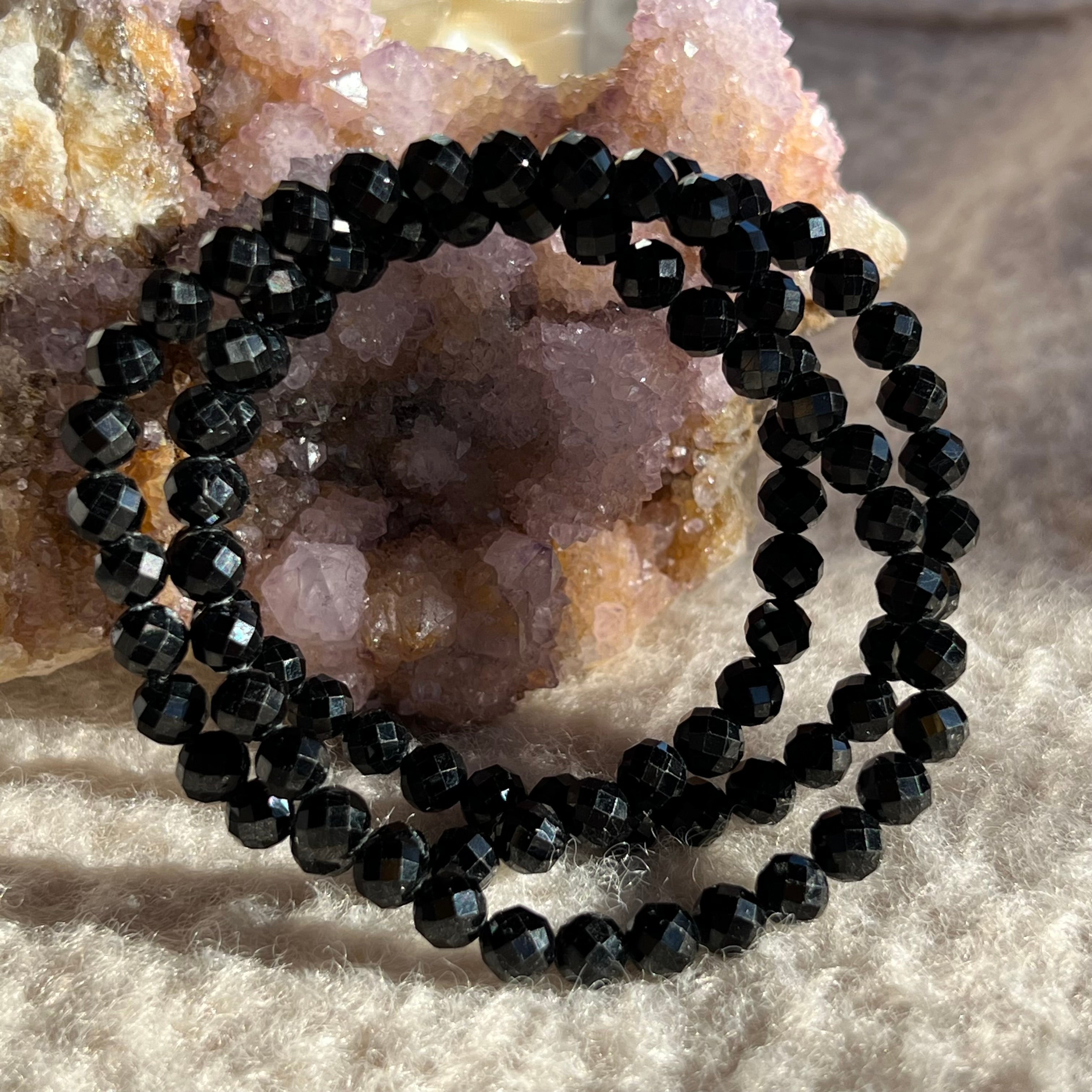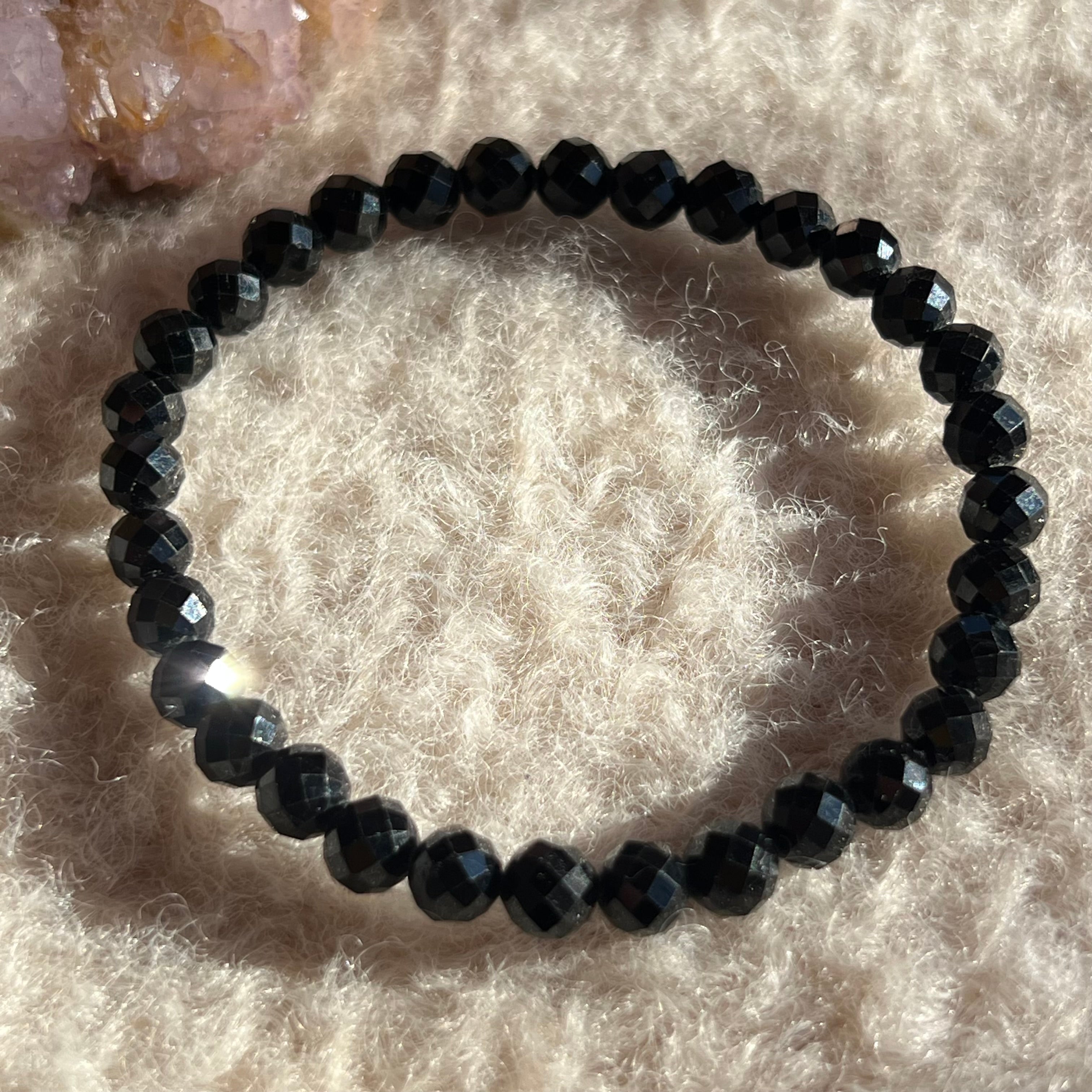 Pulsera de turmalina negra facetada de 6 mm, calidad AAA