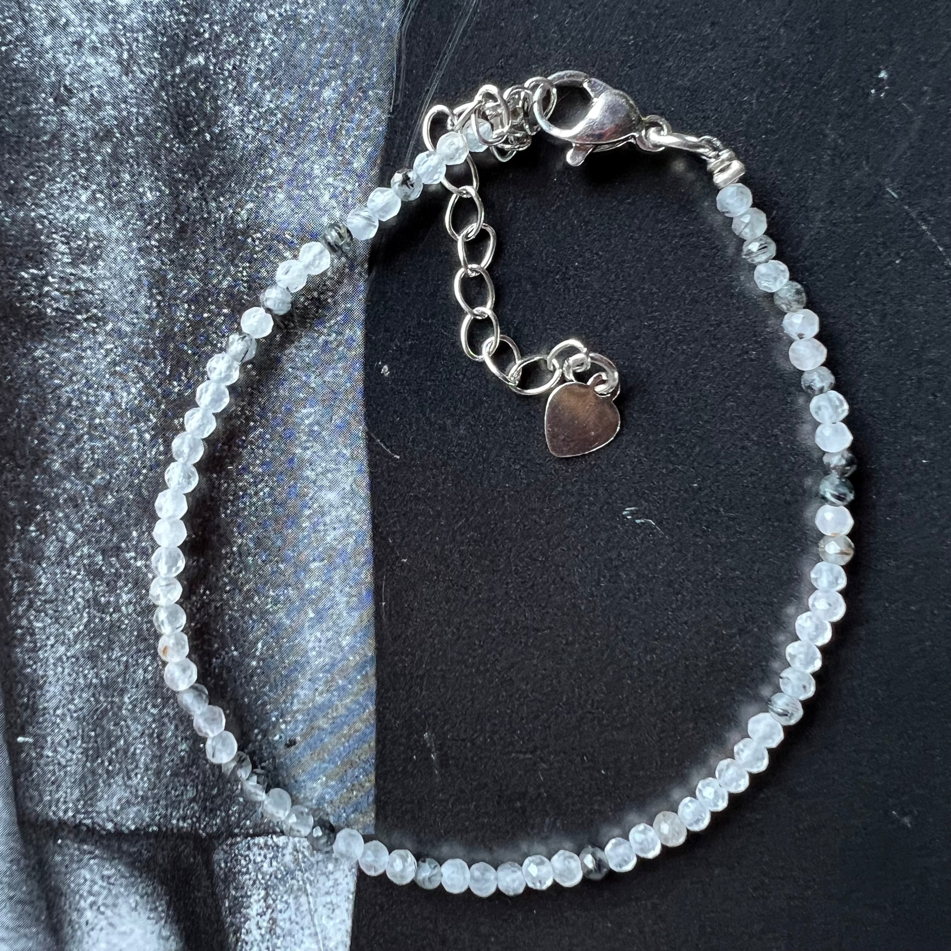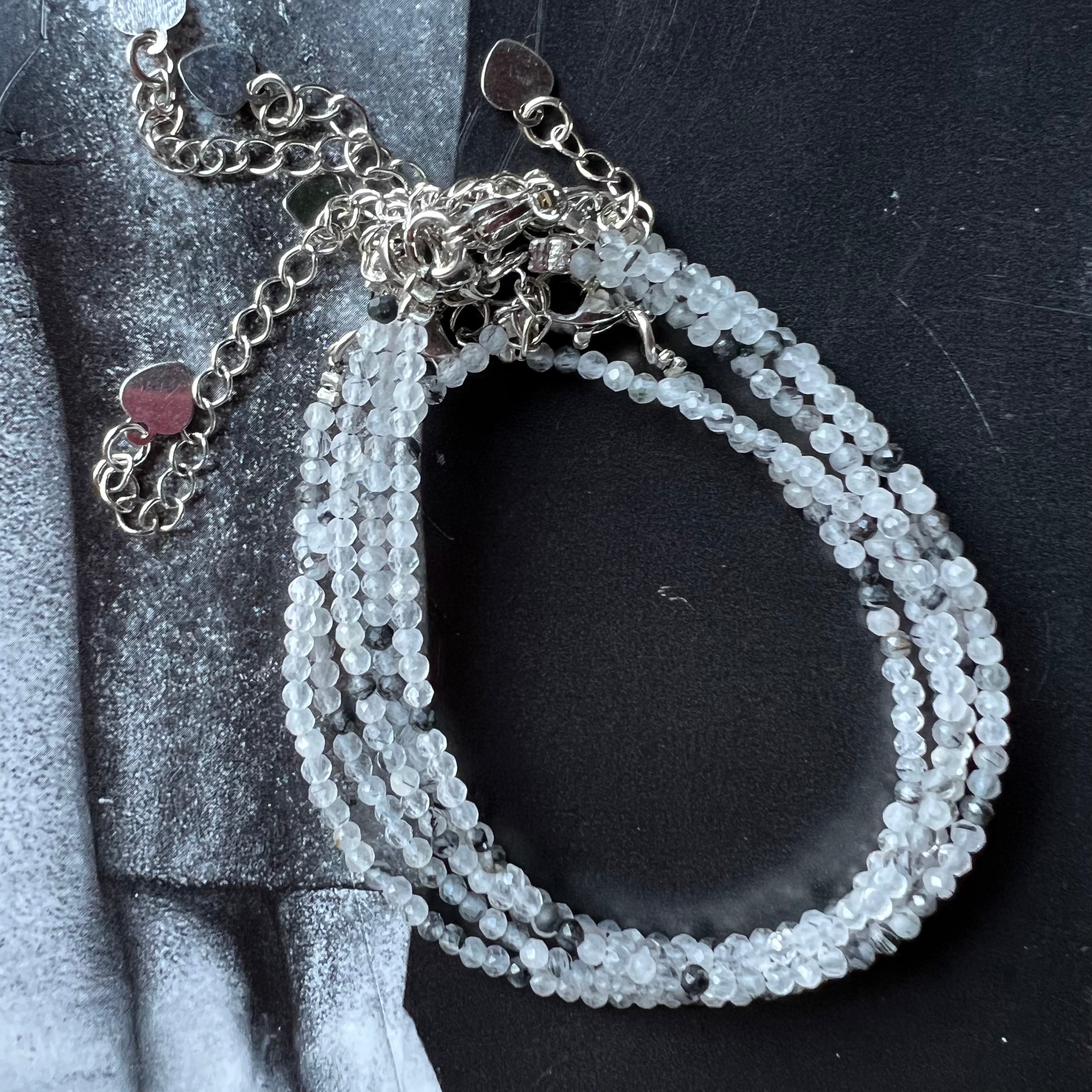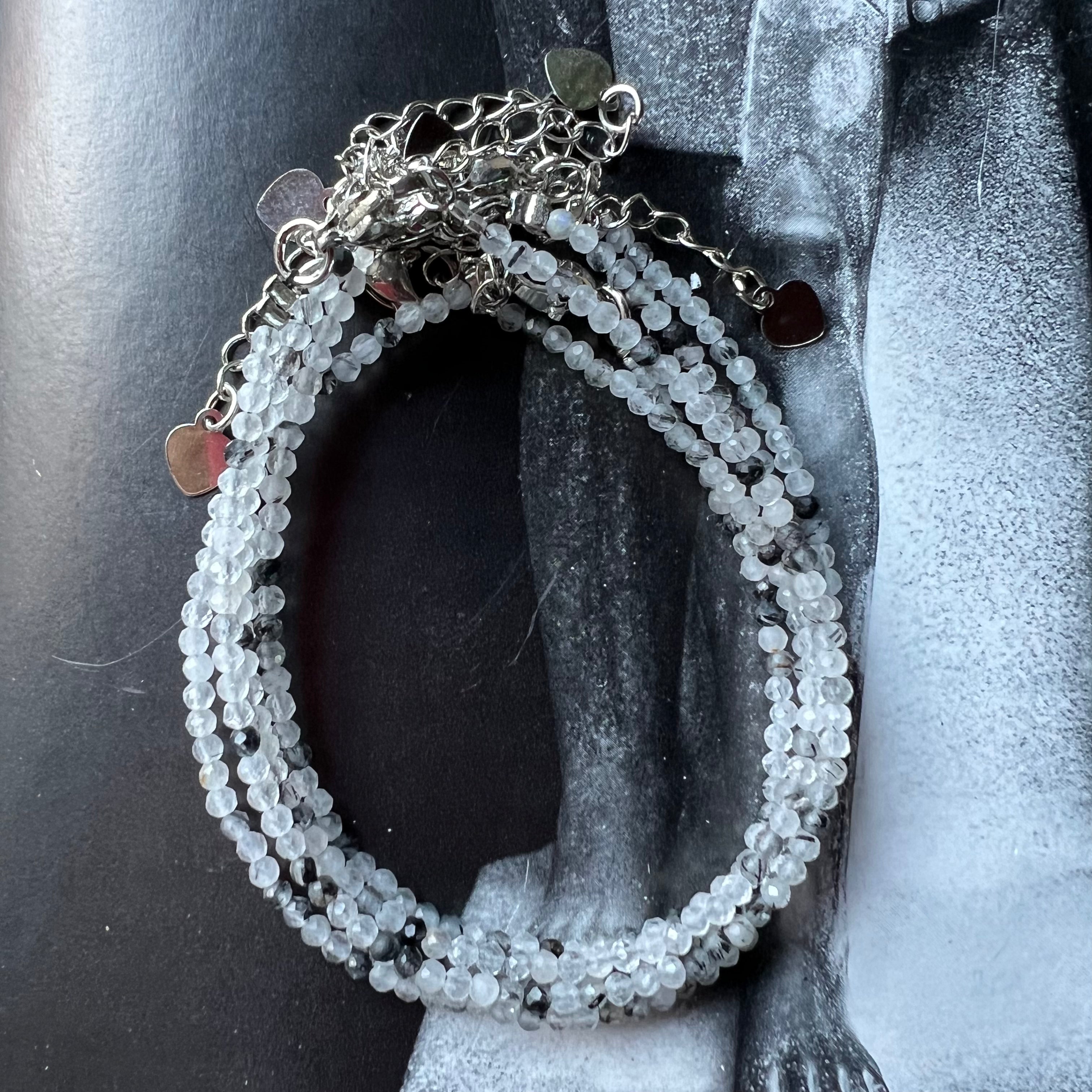 Pulsera de turmalina negra y cuarzo de 2 mm
