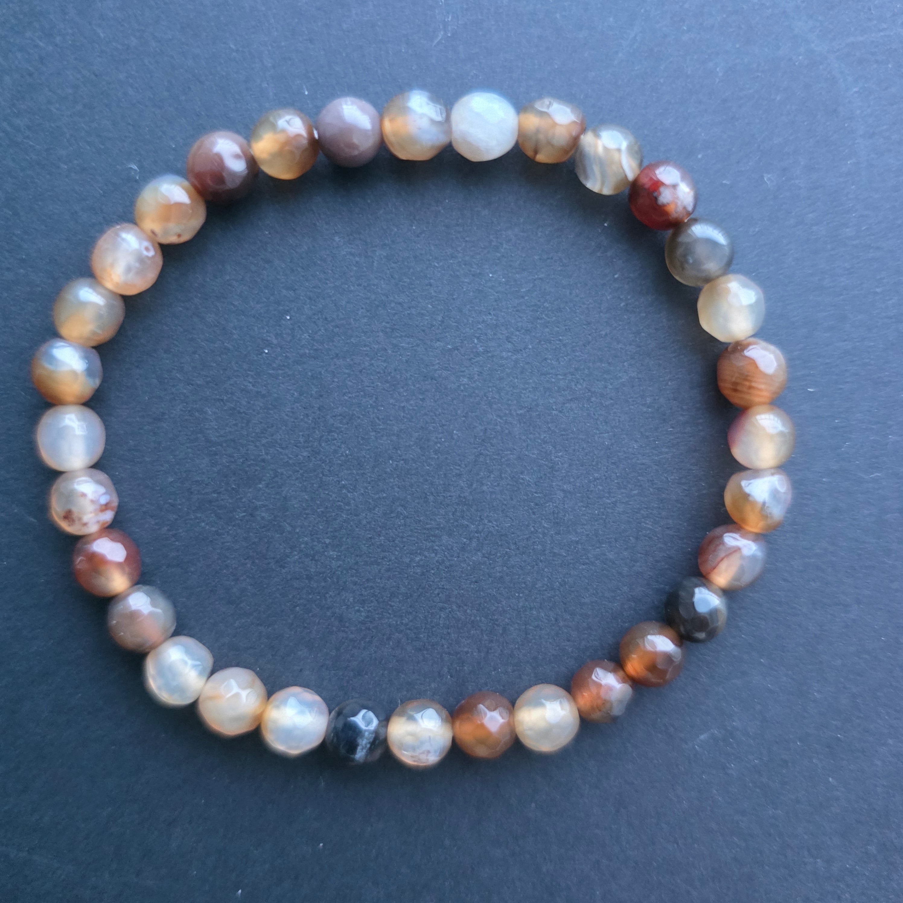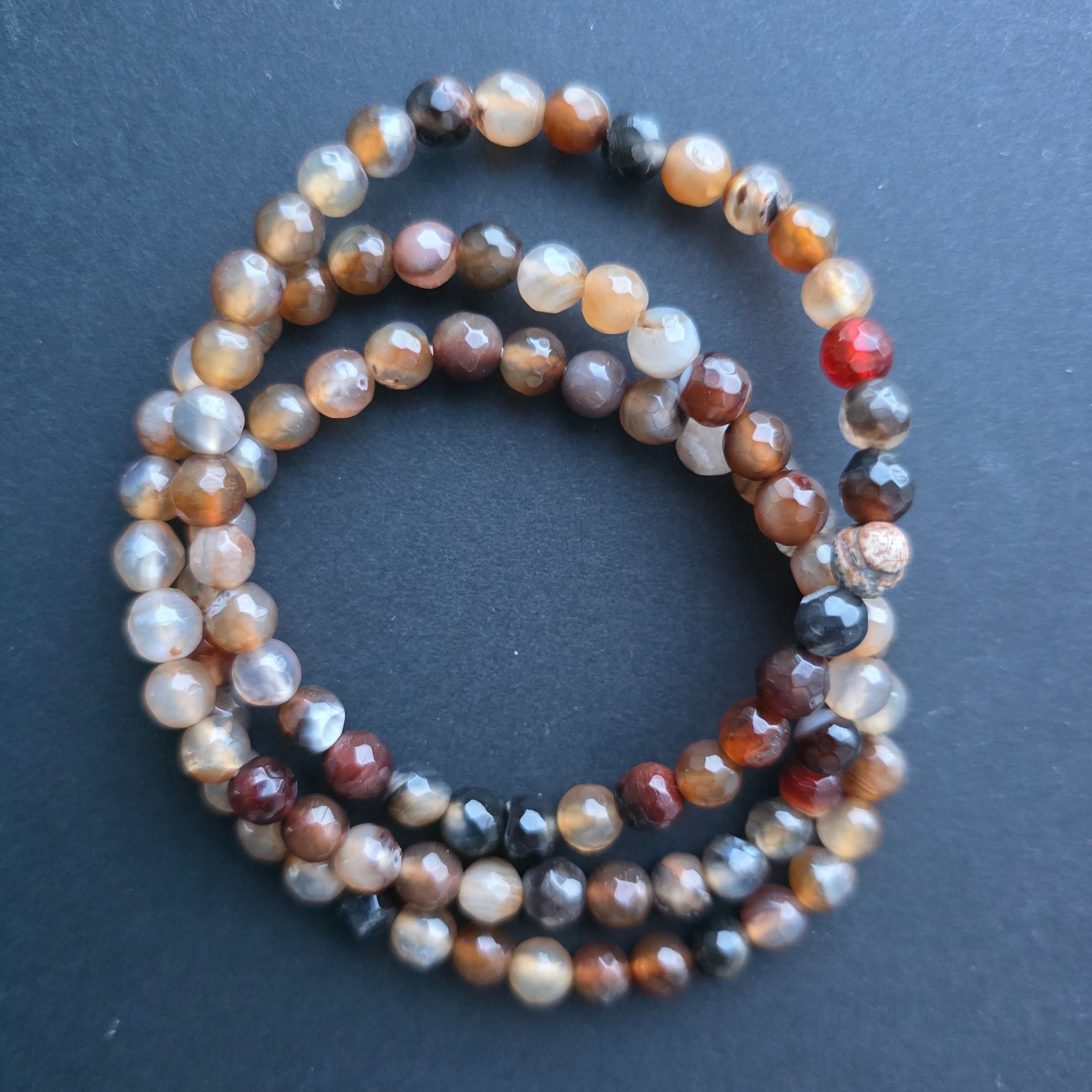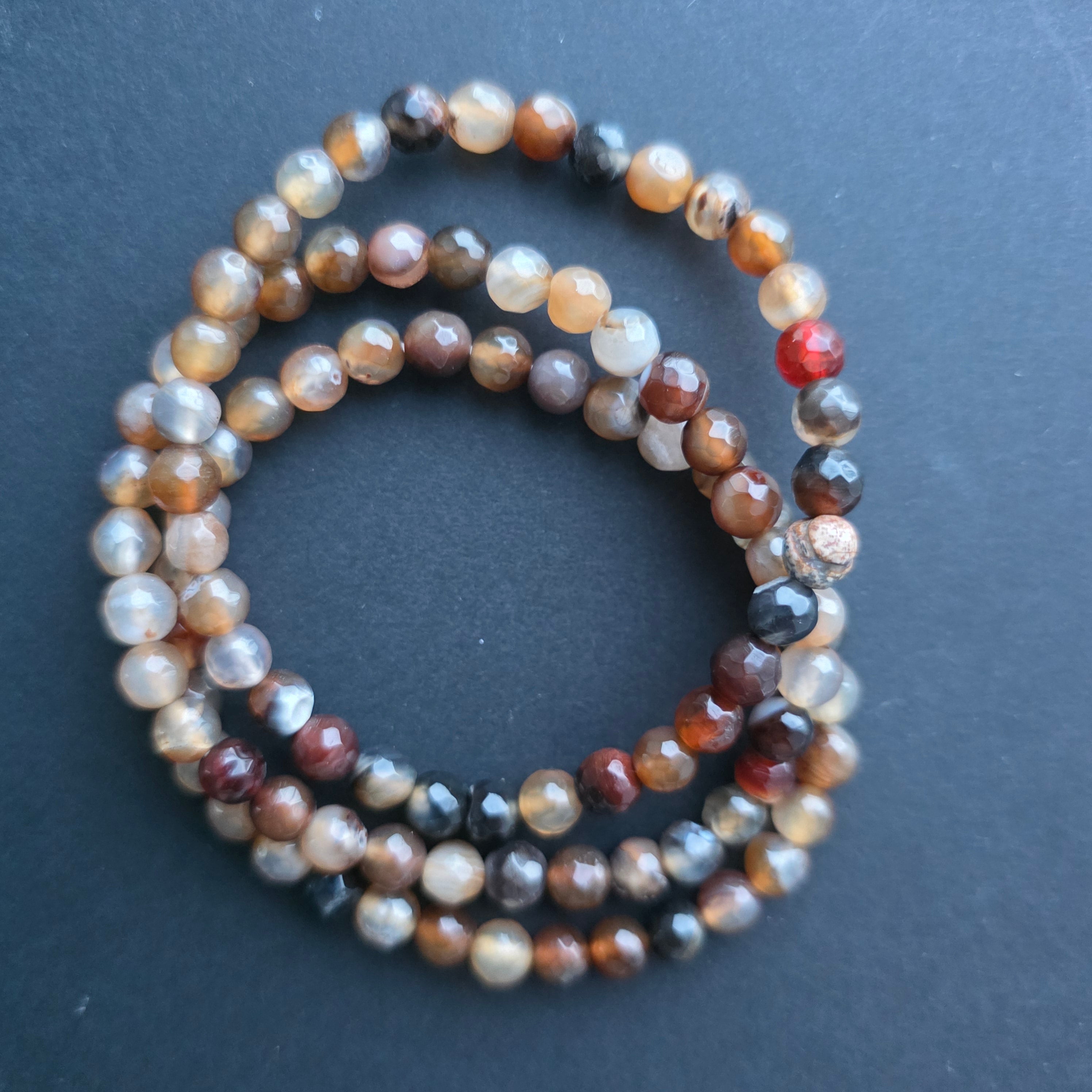 • Textura: superficie brillante, cuentas macizas, con dibujos y bandas naturales propias del ágata