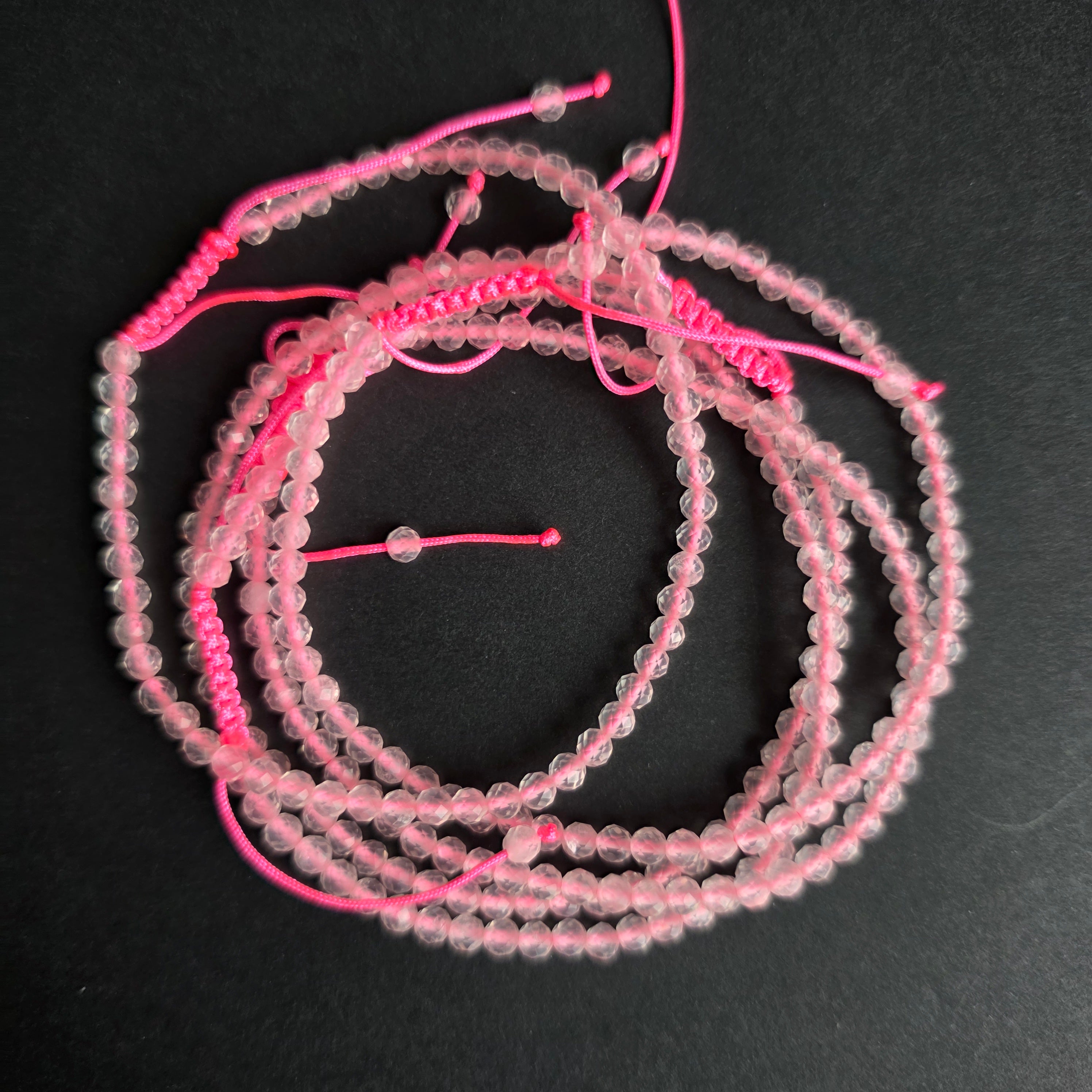 Pulsera facetada de cuarzo rosa 3-4 mm | modelo ajustable