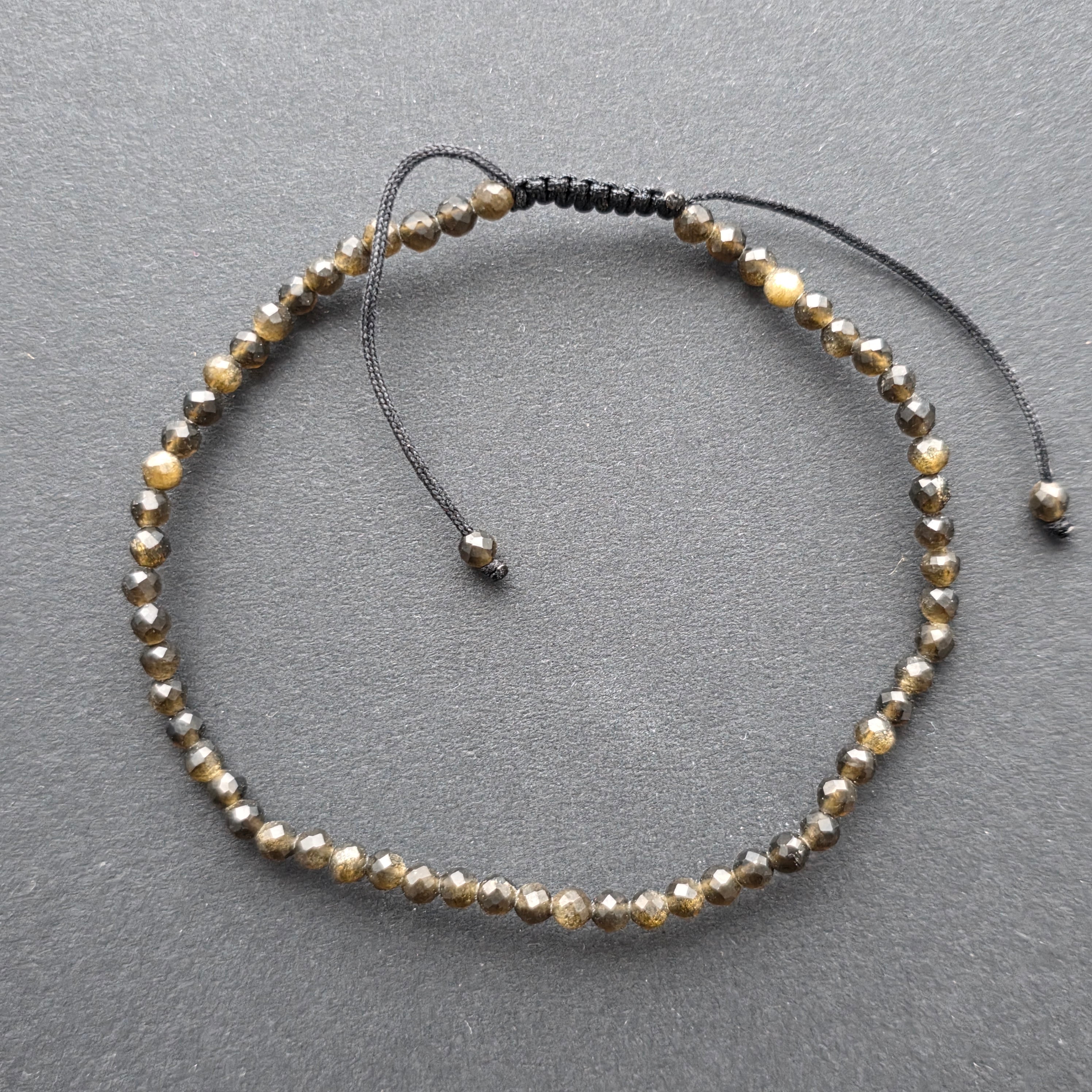 Pulsera facetada de obsidiana dorada de 3 mm con cordón ajustable