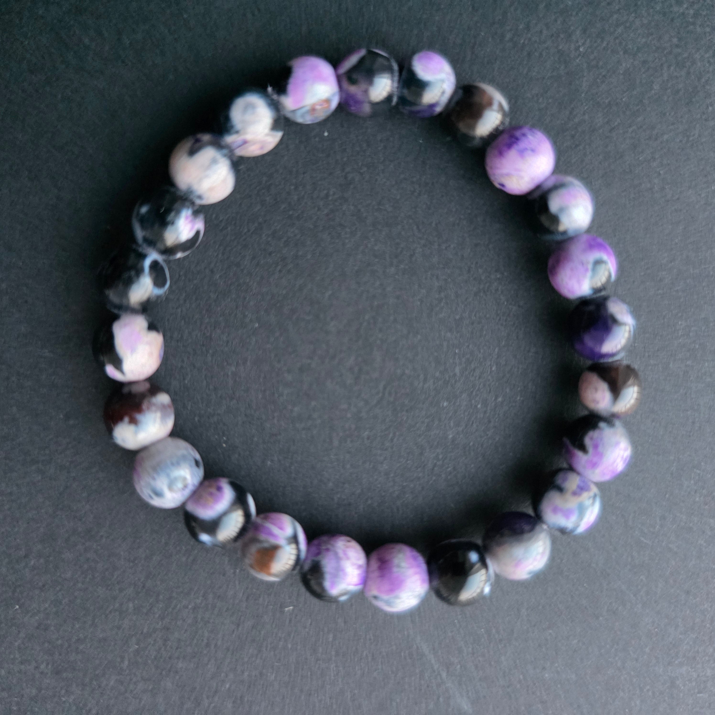 Pulsera para niños ágata morada-negra 6 mm