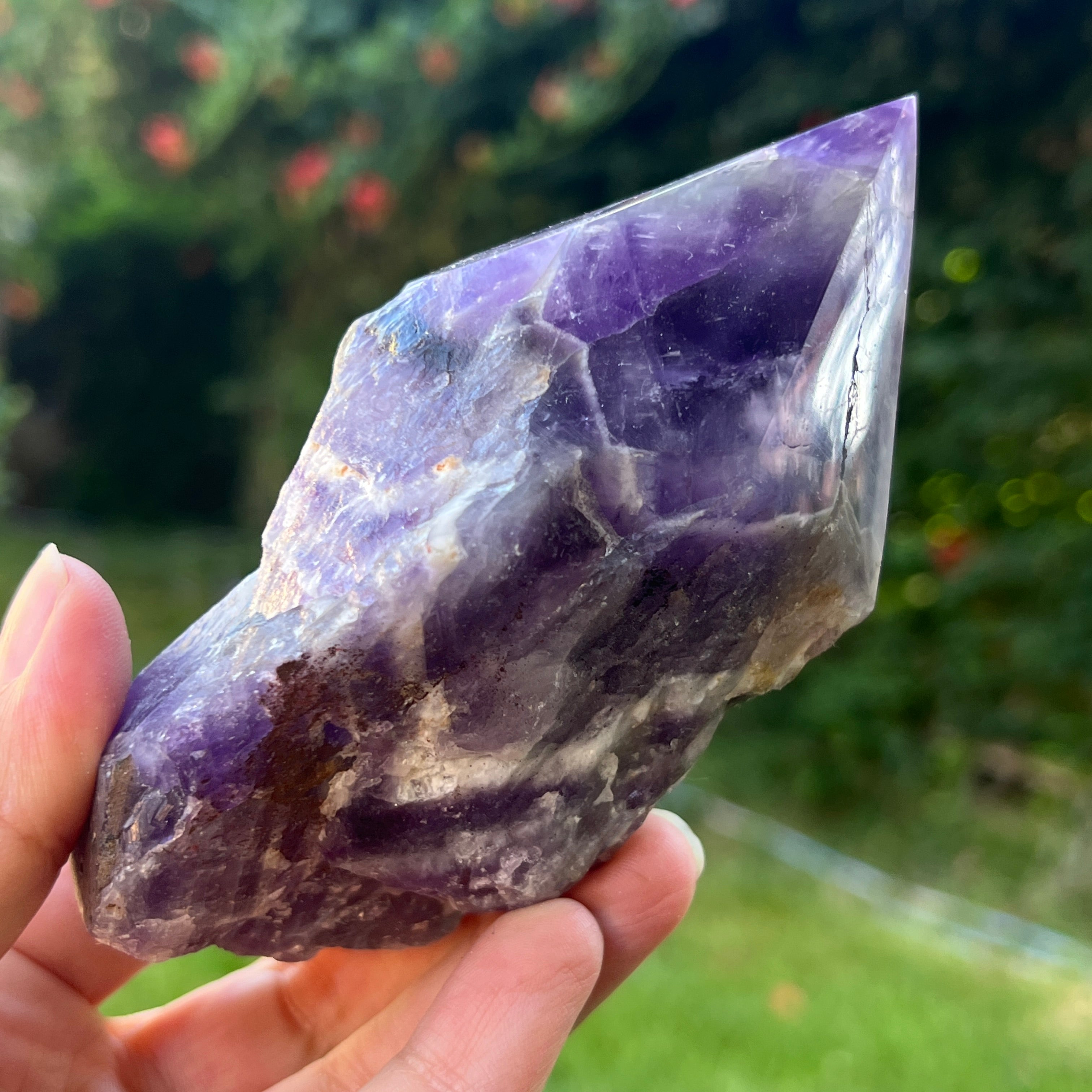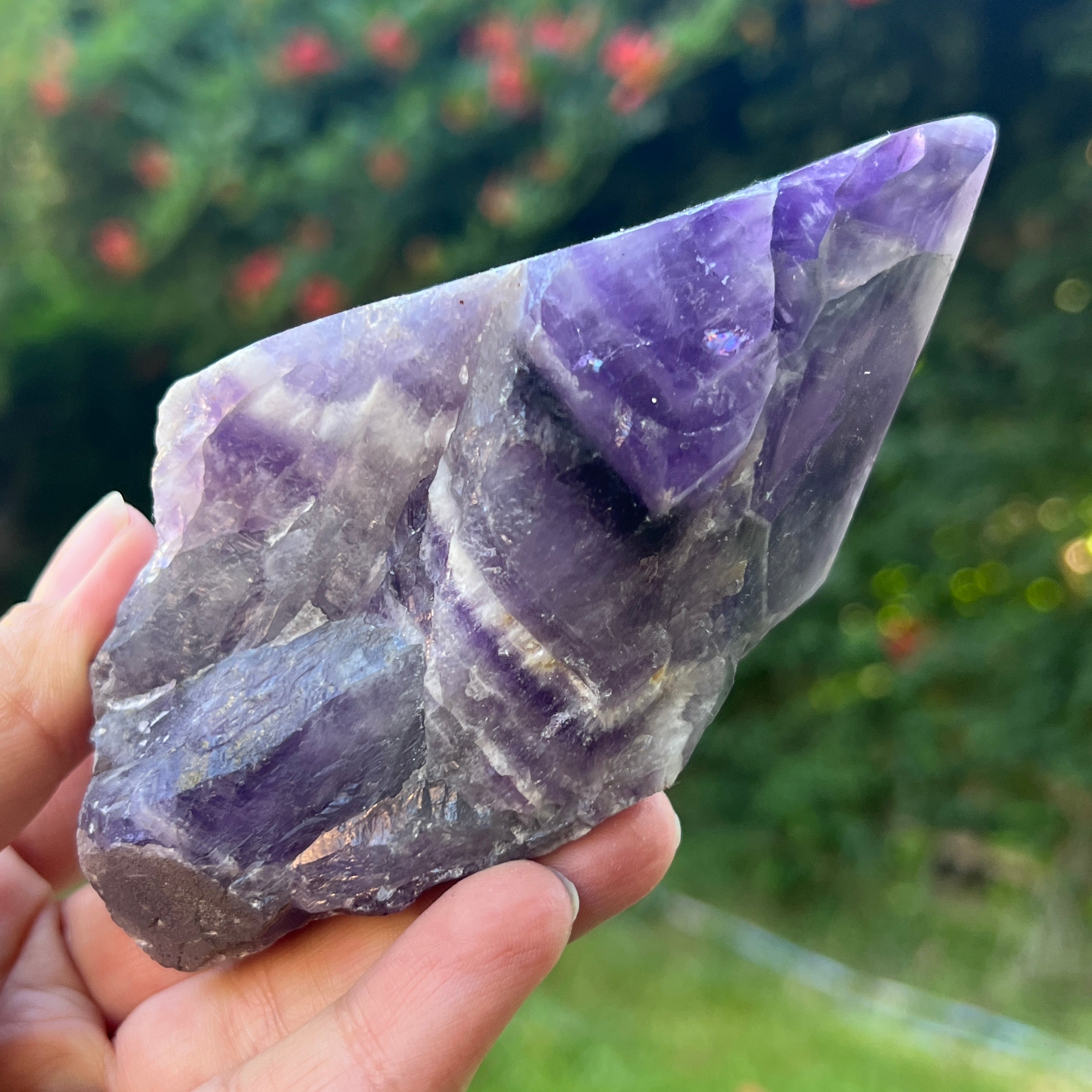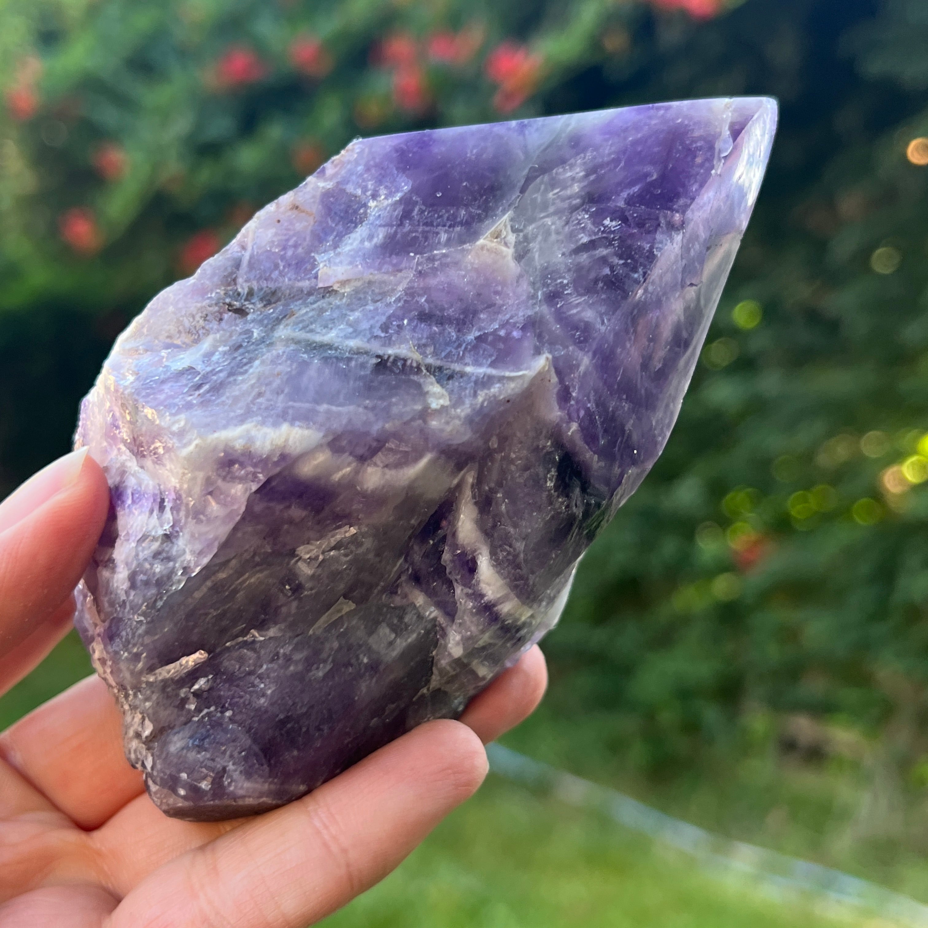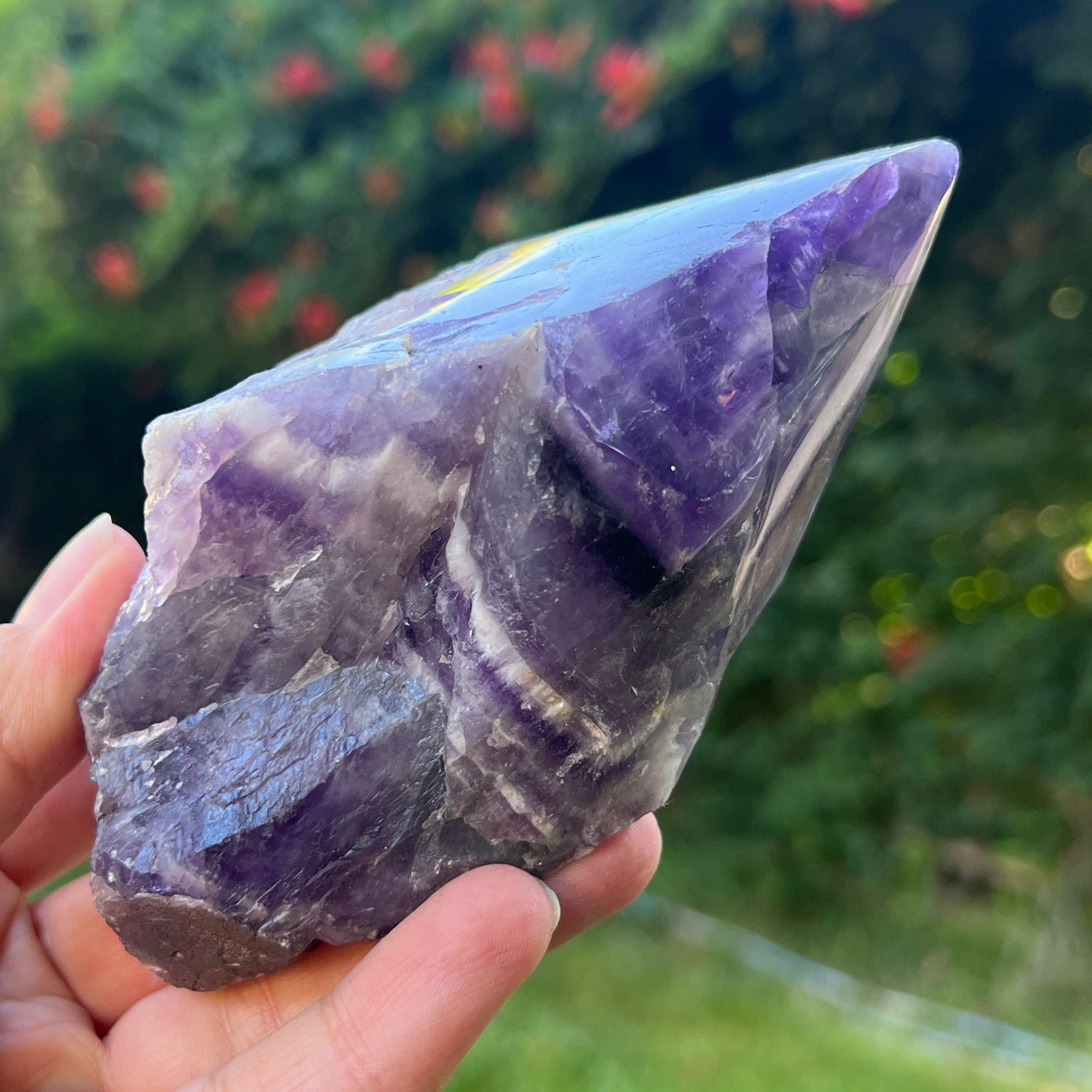 La amatista chevron puede usarse en meditación, como joya o para añadir un toque natural y elegante a la casa o la oficina.