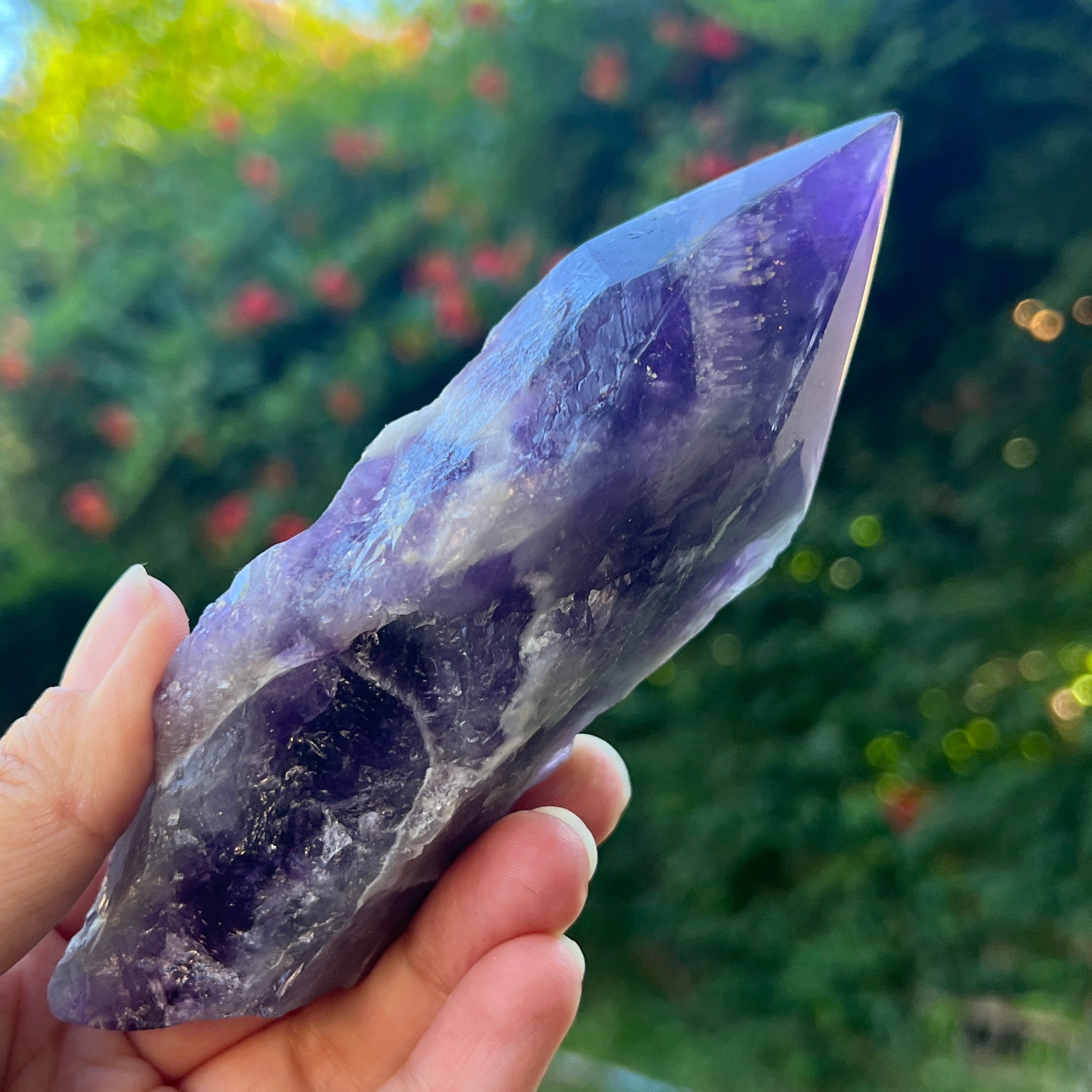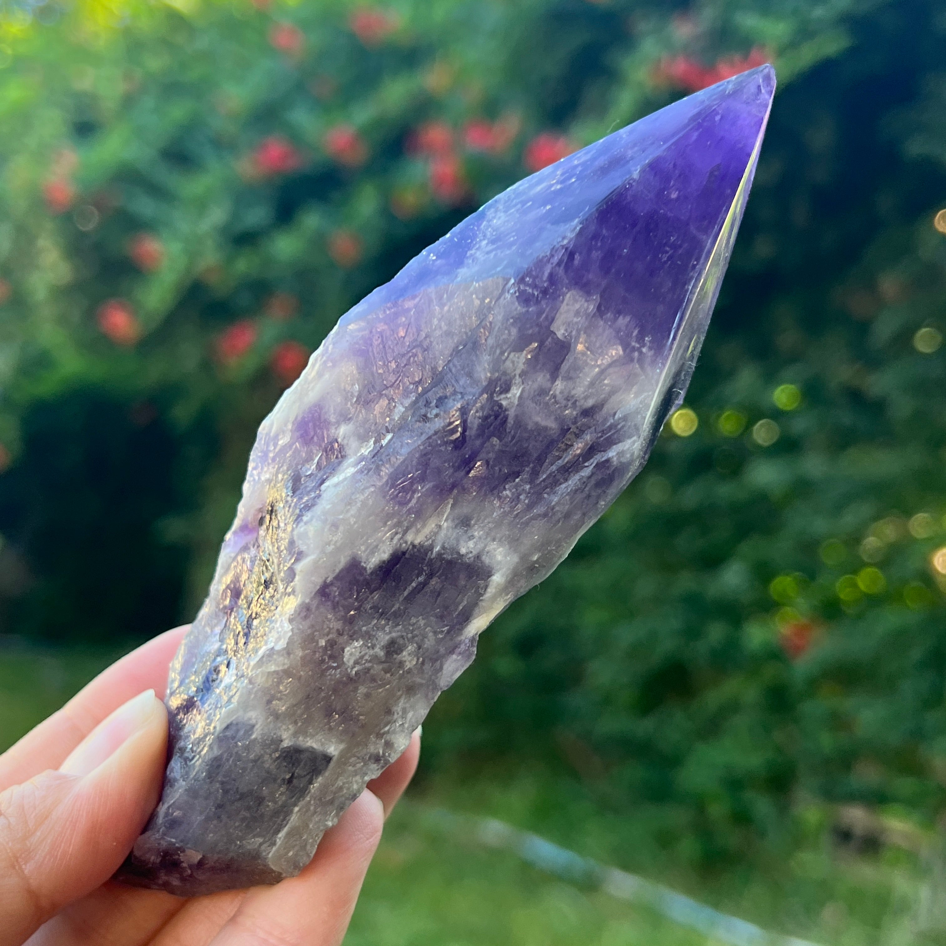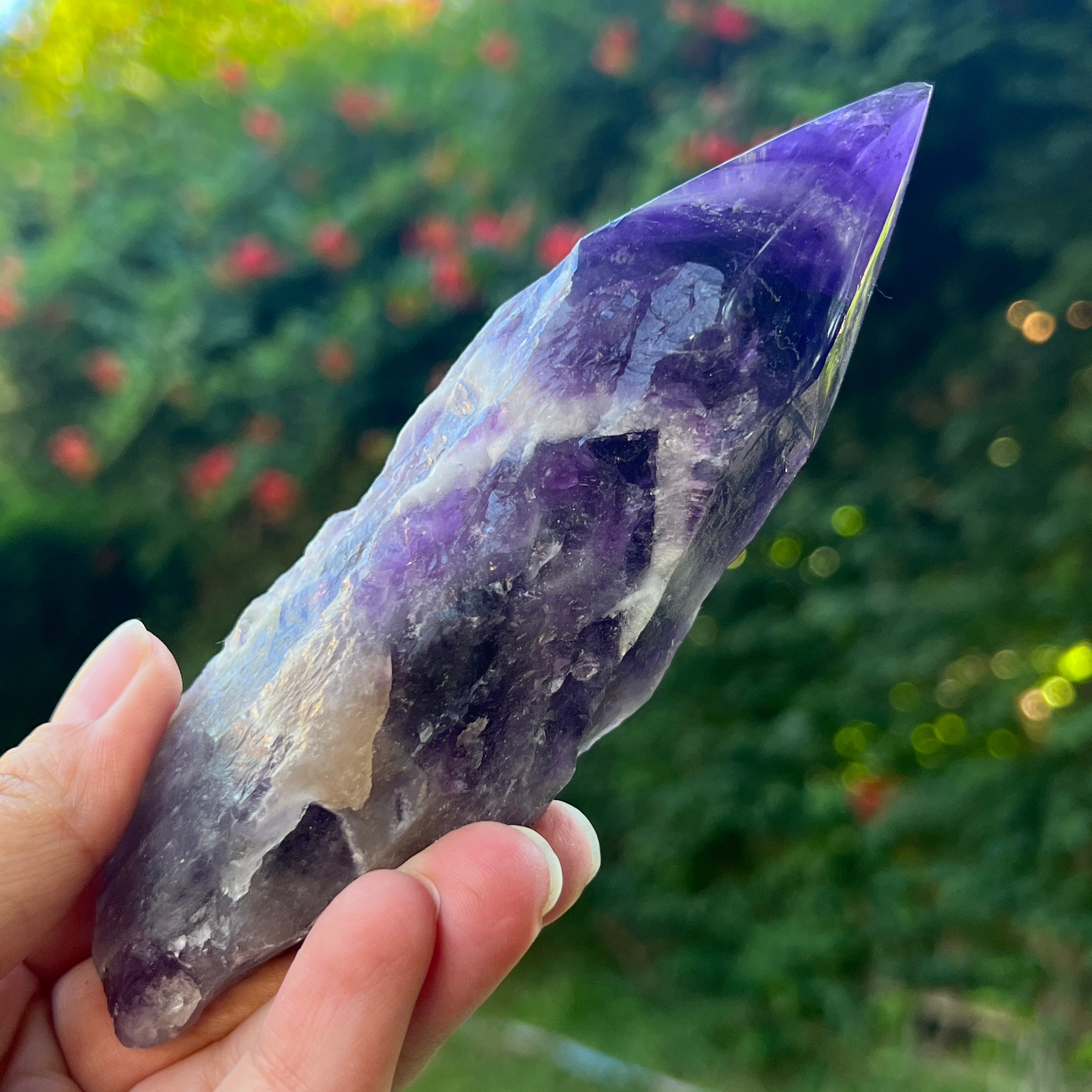 La amatista Chevron es conocida por sus asociaciones con los chakras de la corona y del tercer ojo, lo que aumenta la intuición y la capacidad de tomar decisiones.