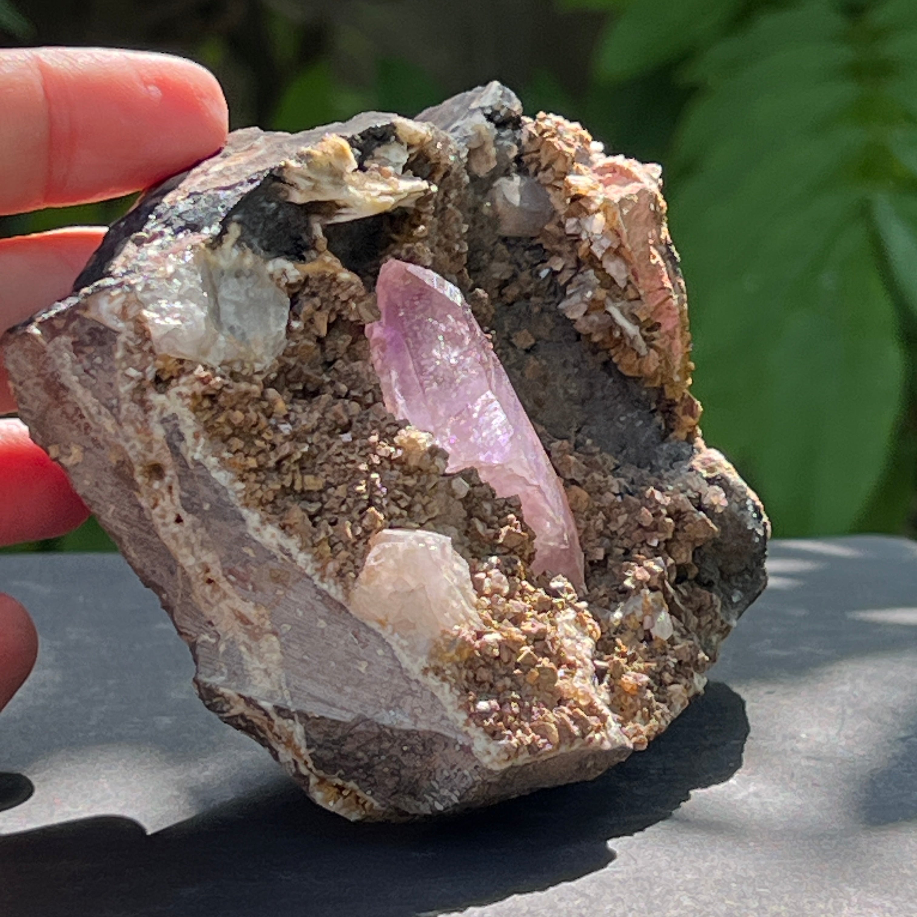 Punta de cuarzo Brandberg en matriz – cristal natural de Namibia | Modelo 4