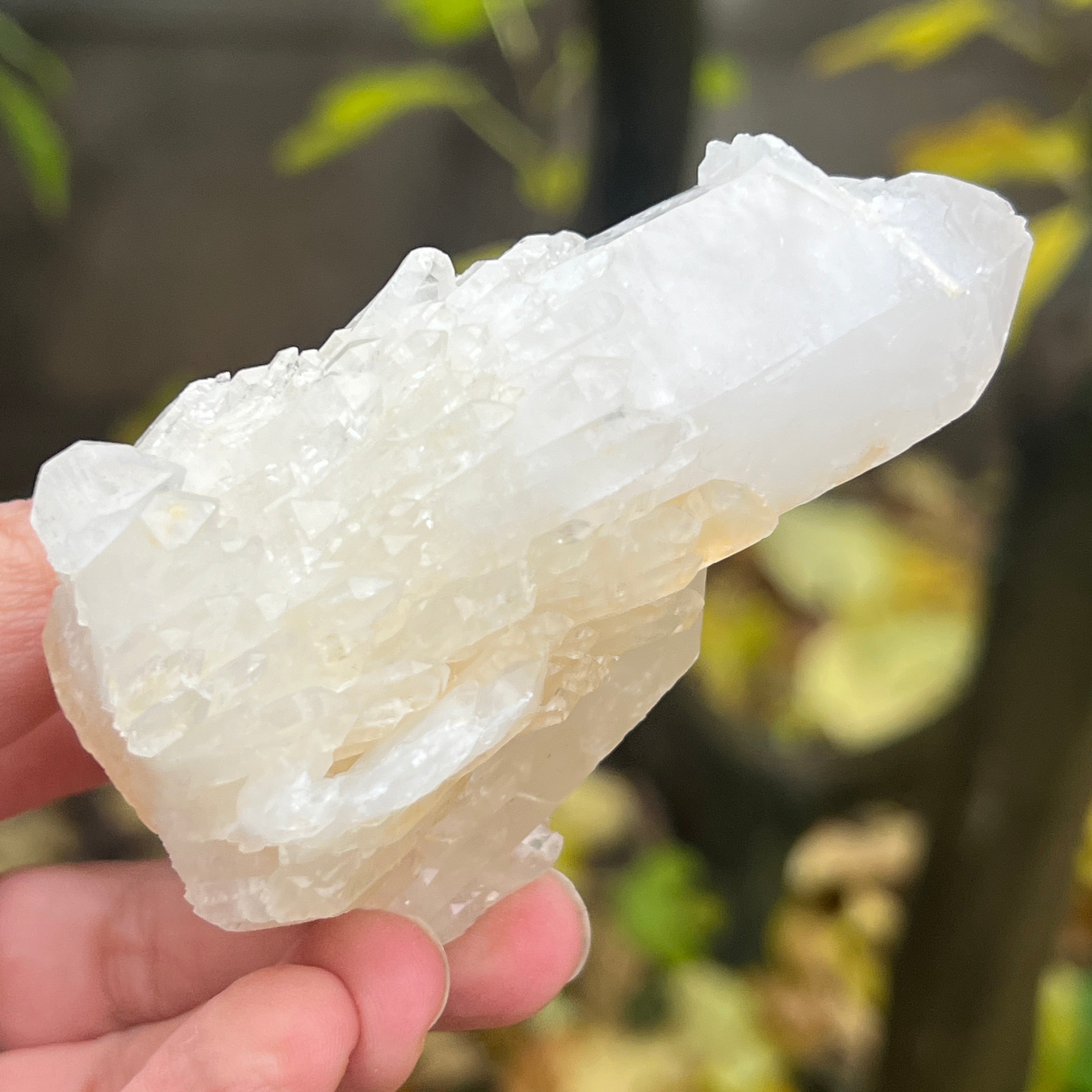 Una punta que parece esculpida por la propia luz. El cuarzo celeste, también conocido como cuarzo vela, combina la fuerza de un cristal de cuarzo con la suavidad y el brillo de una llama interior. Su forma única, similar a una piña cristalina, emana una energía de purificación profunda y de conexión con los planos superiores de la conciencia.