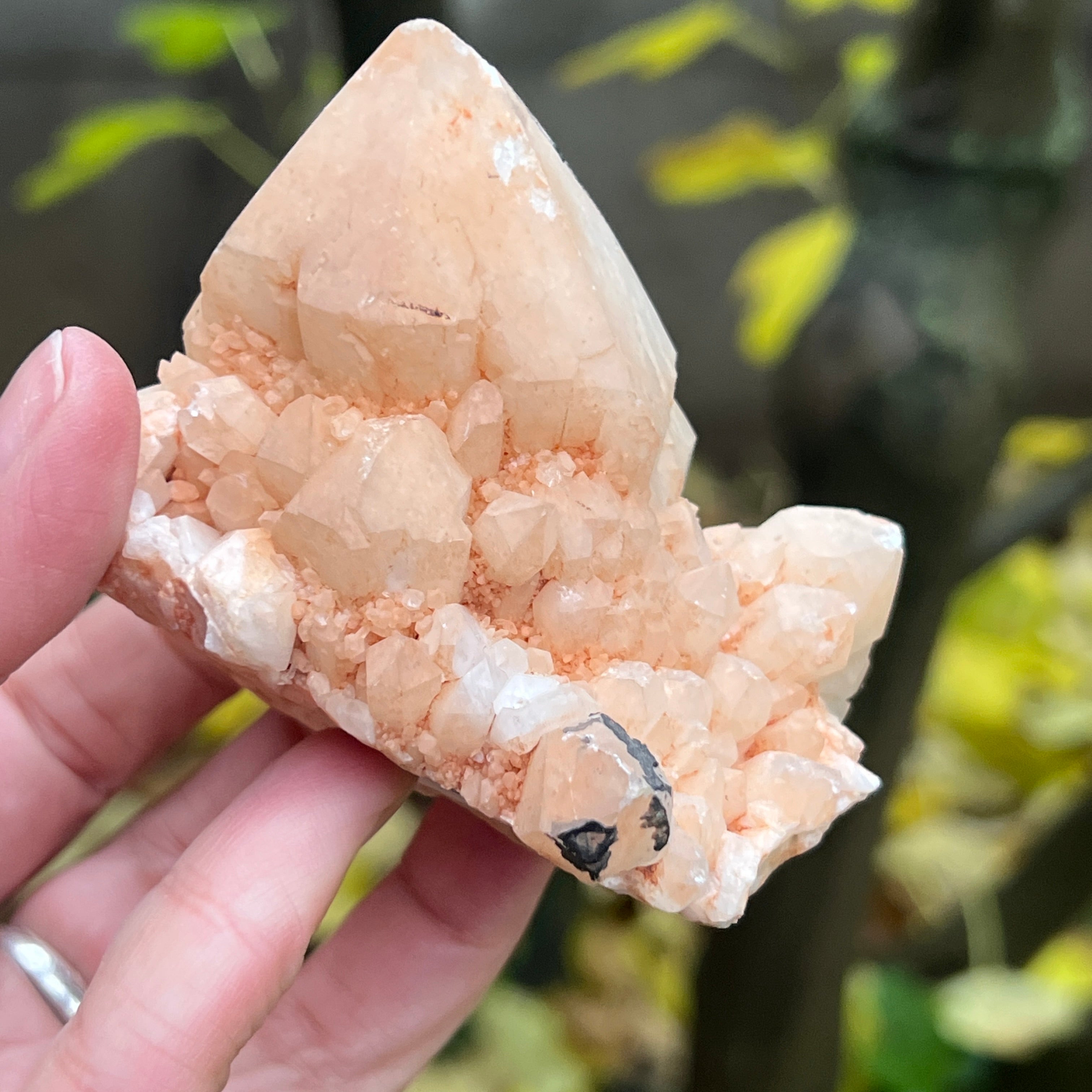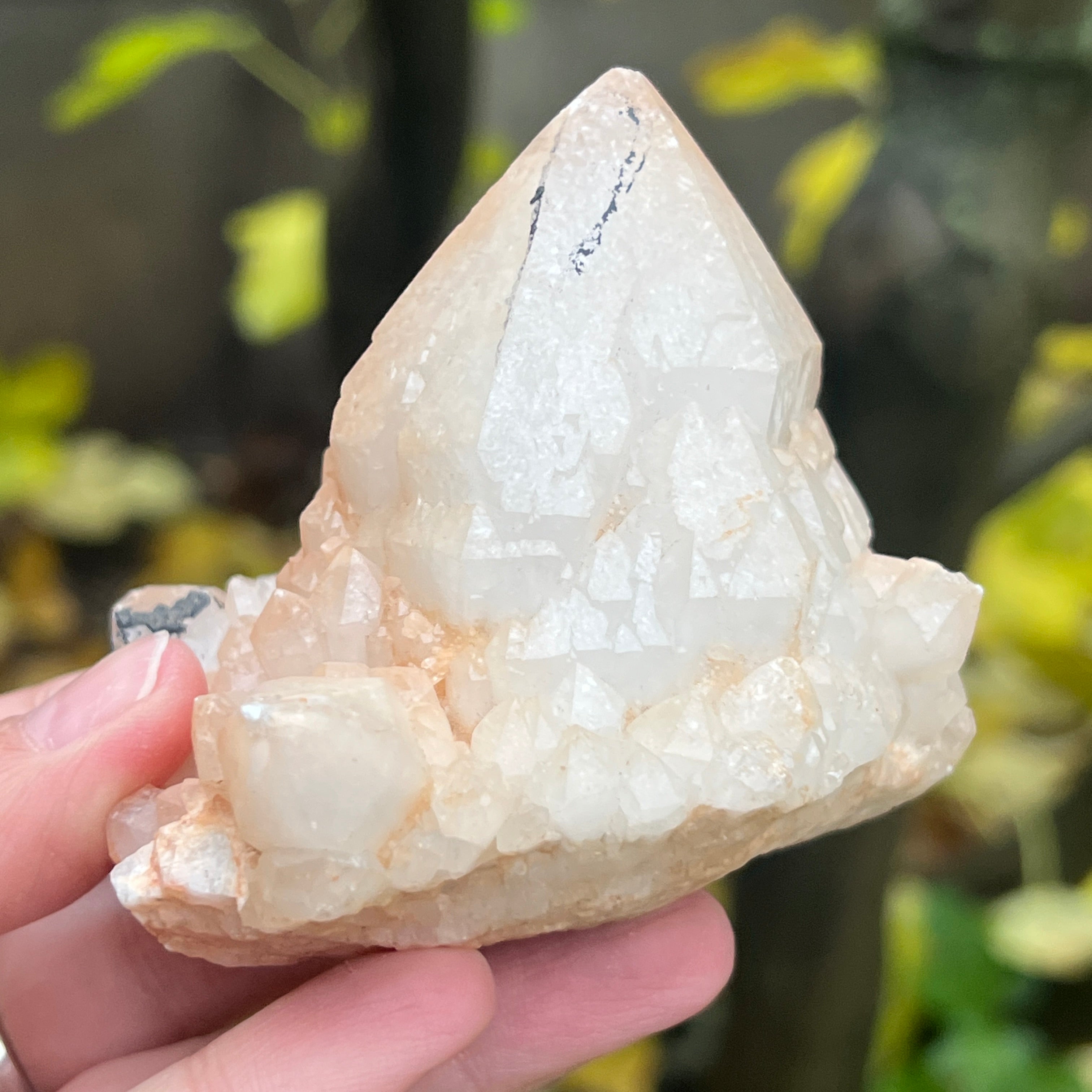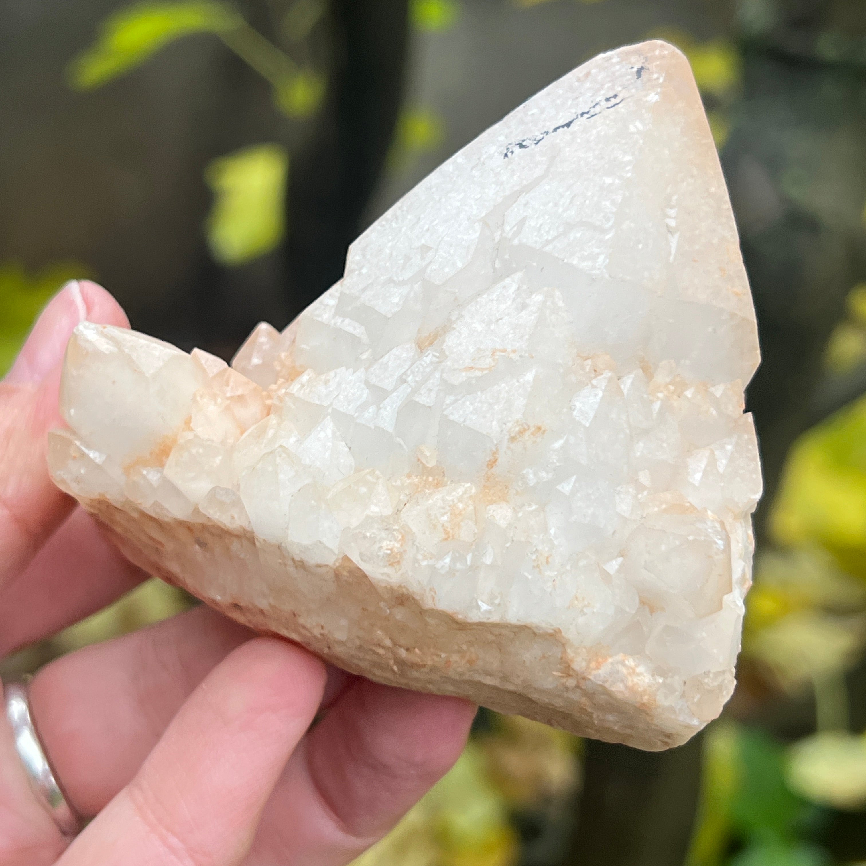Una punta que parece esculpida por la propia luz. El cuarzo celeste, también conocido como cuarzo vela, combina la fuerza de un cristal de cuarzo con la suavidad y el brillo de una llama interior. Su forma única, similar a una piña cristalina, emana una energía de purificación profunda y de conexión con los planos superiores de la conciencia.