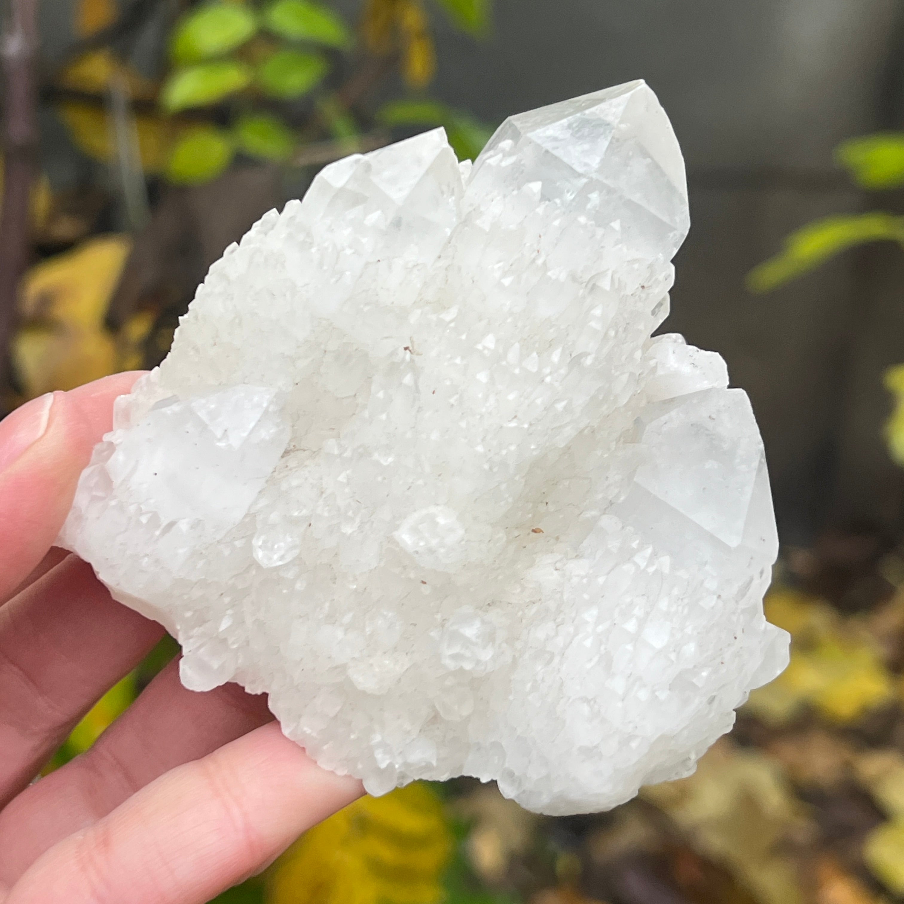 Una punta que parece esculpida por la propia luz. El cuarzo celeste, también conocido como cuarzo vela, combina la fuerza de un cristal de cuarzo con la suavidad y el resplandor de una llama interior. Su forma única, similar a una piña cristalina, emana una energía de purificación profunda y de conexión con los planos superiores de la conciencia.