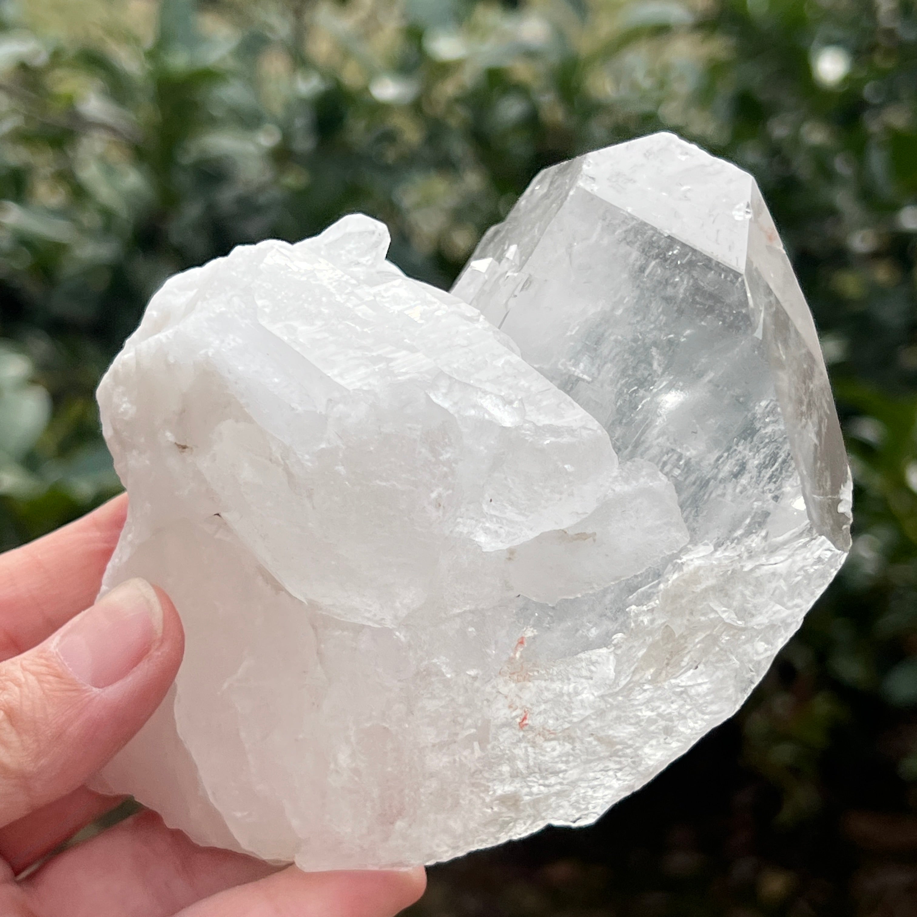 Punta de cuarzo natural incoloro, flor de mina L10