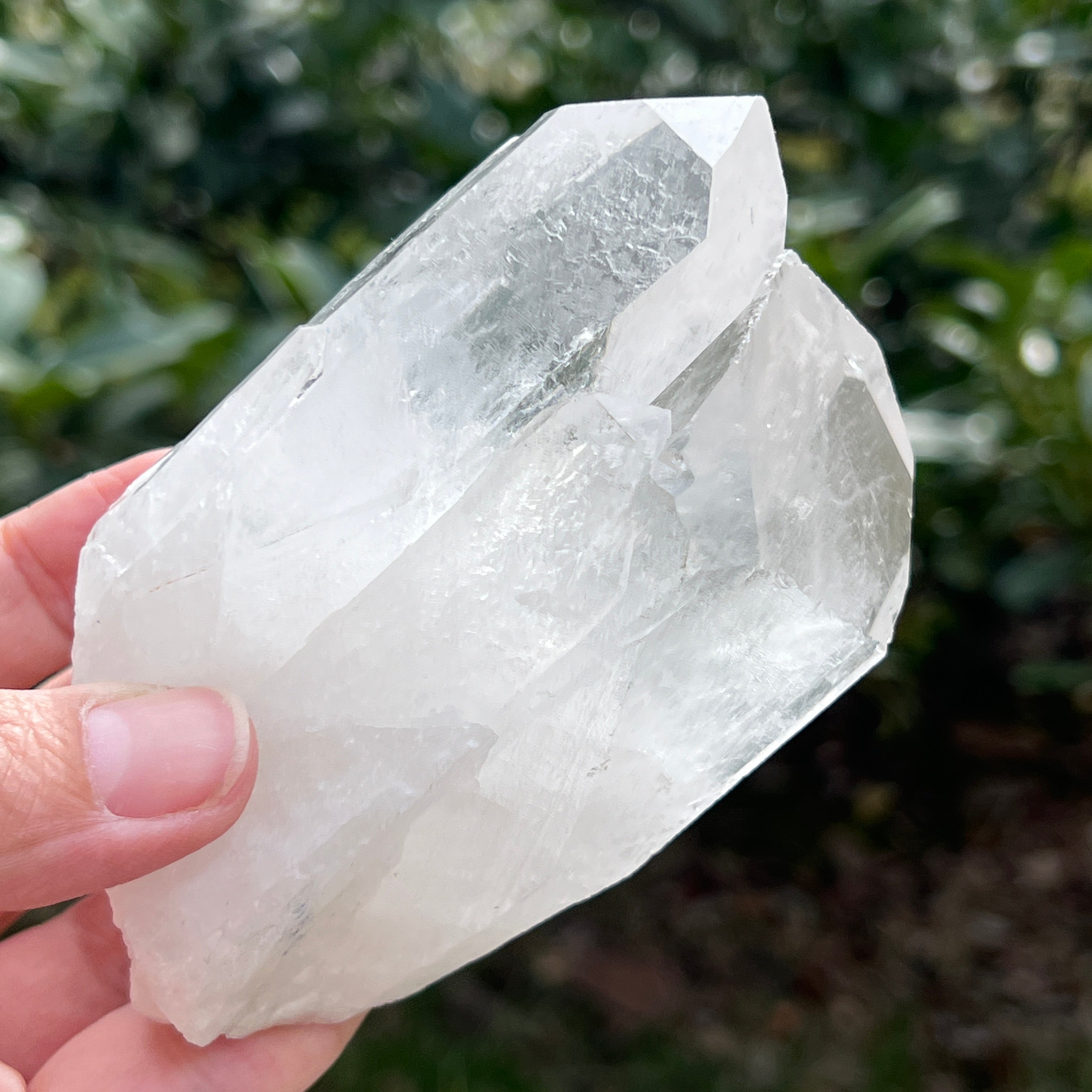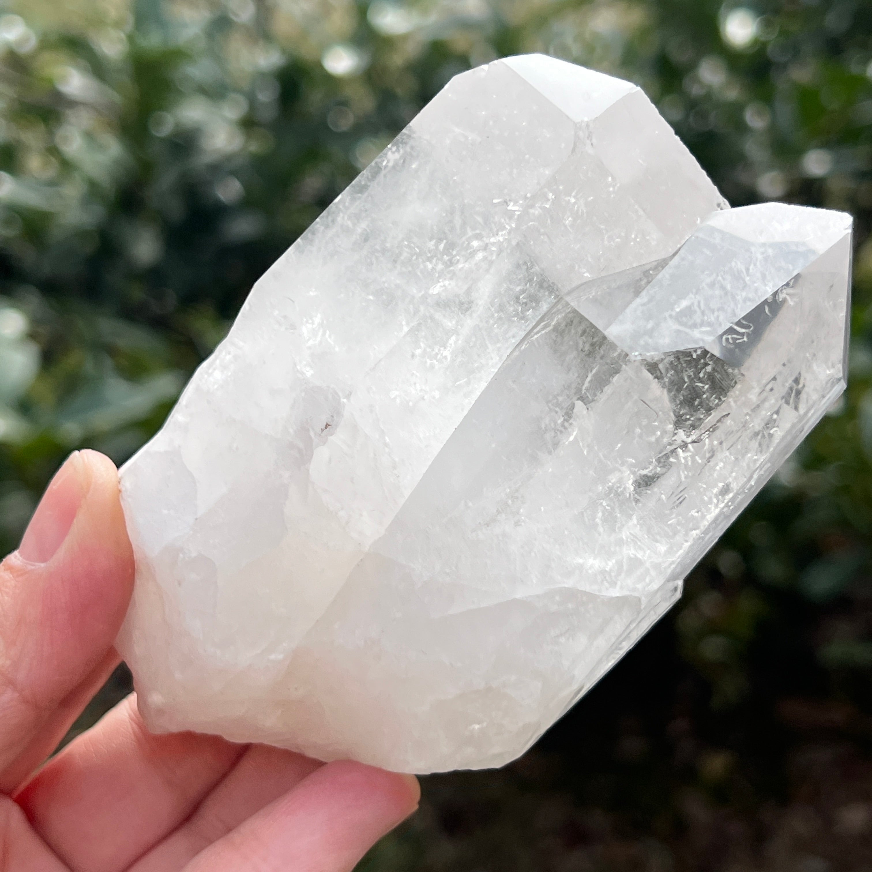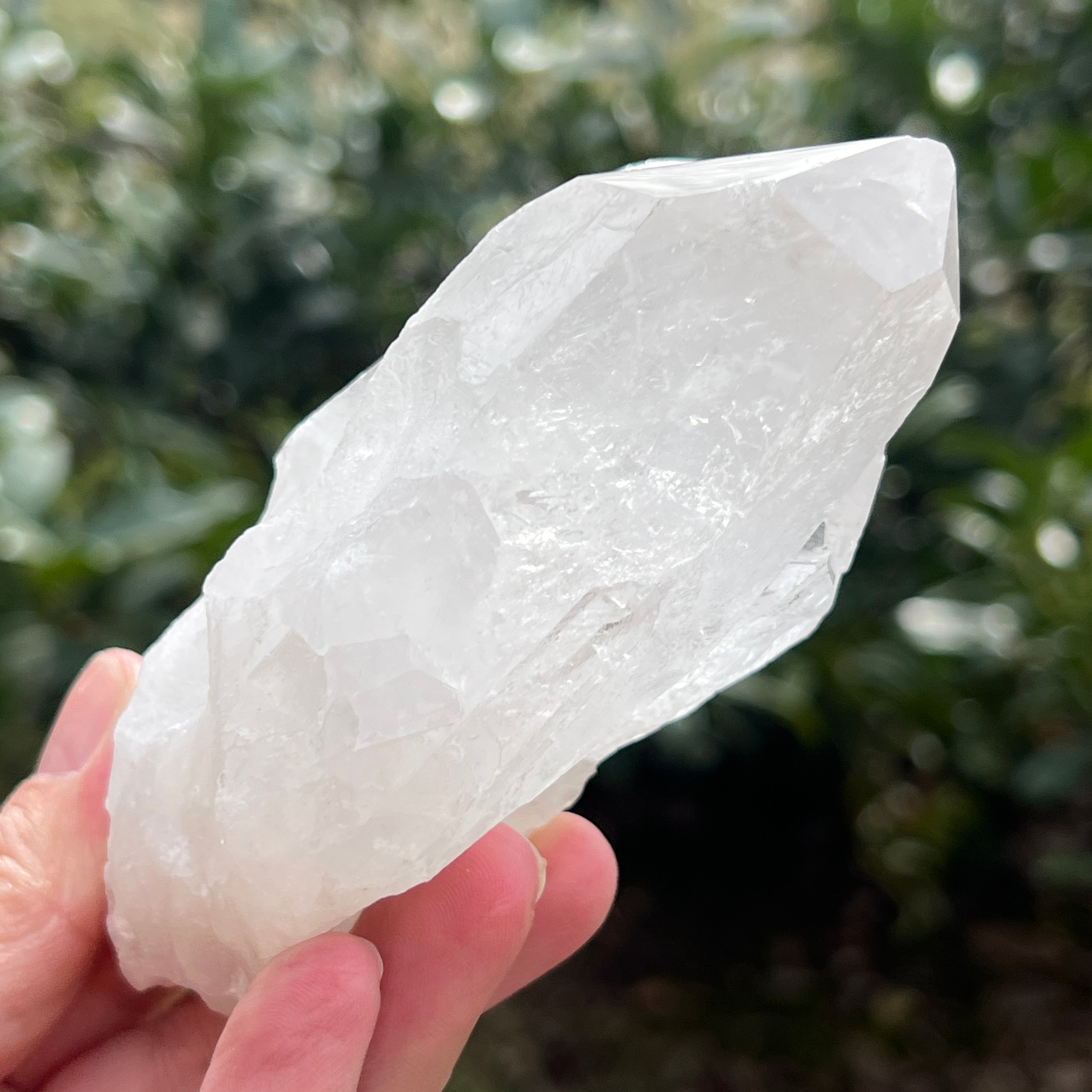 Punta de cuarzo natural incoloro, flor de mina L16