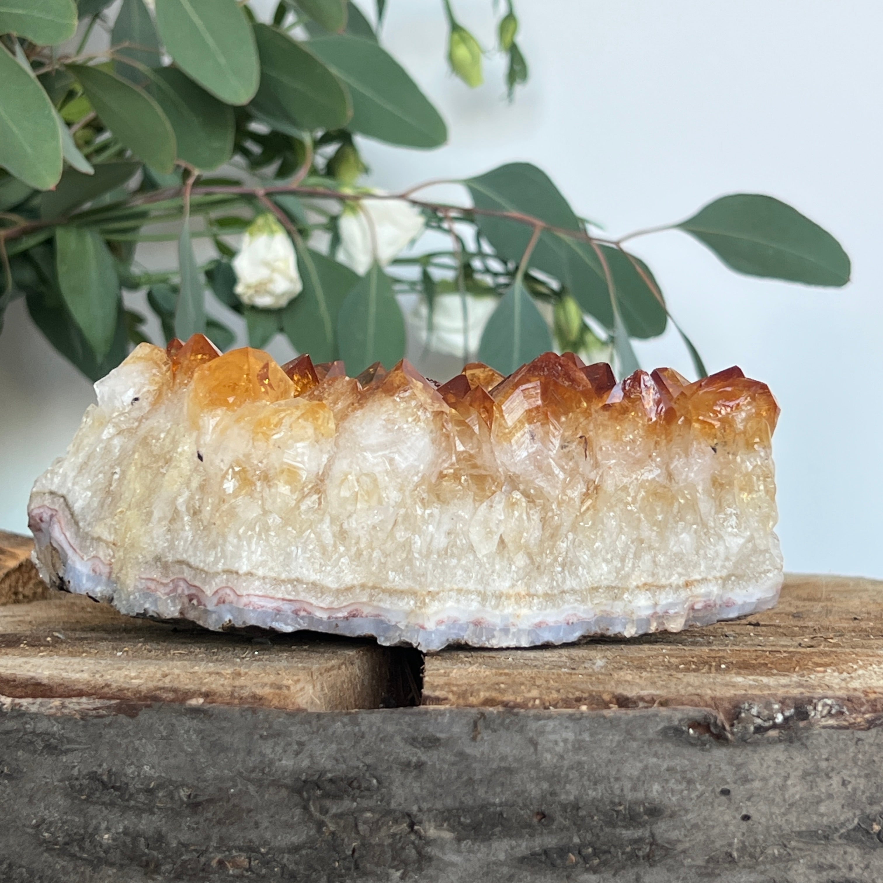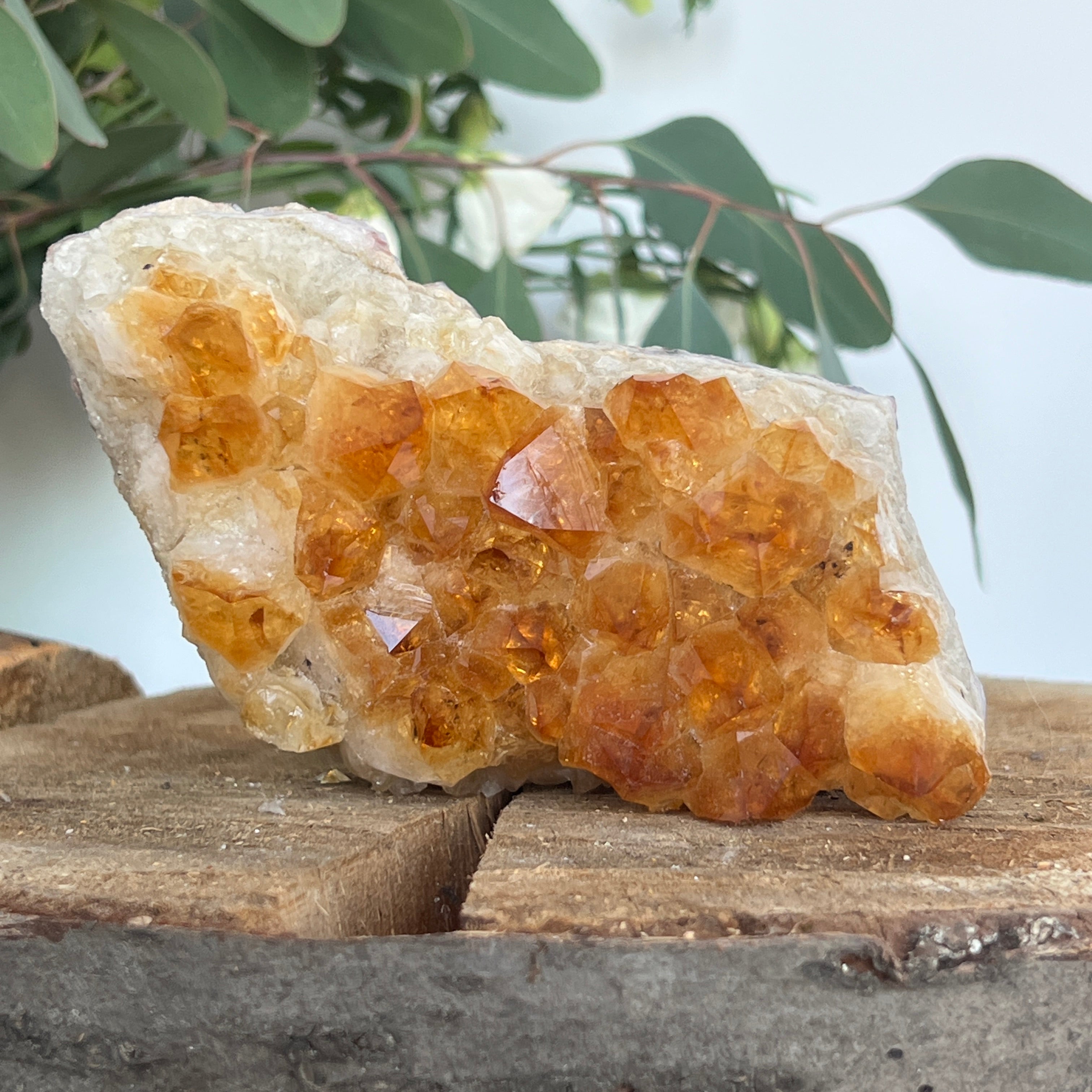 En cristaloterapia,el citrino se considera la piedra de la abundancia y del optimismo. Incluso en forma tratada térmicamente, su vibración luminosa se percibe como un apoyo para la claridad mental, la alegría y la manifestación de las intenciones. Un racimo de este tamaño e intensidad se convierte en un verdadero punto de luz en un espacio, atrayendo armonía y prosperidad.