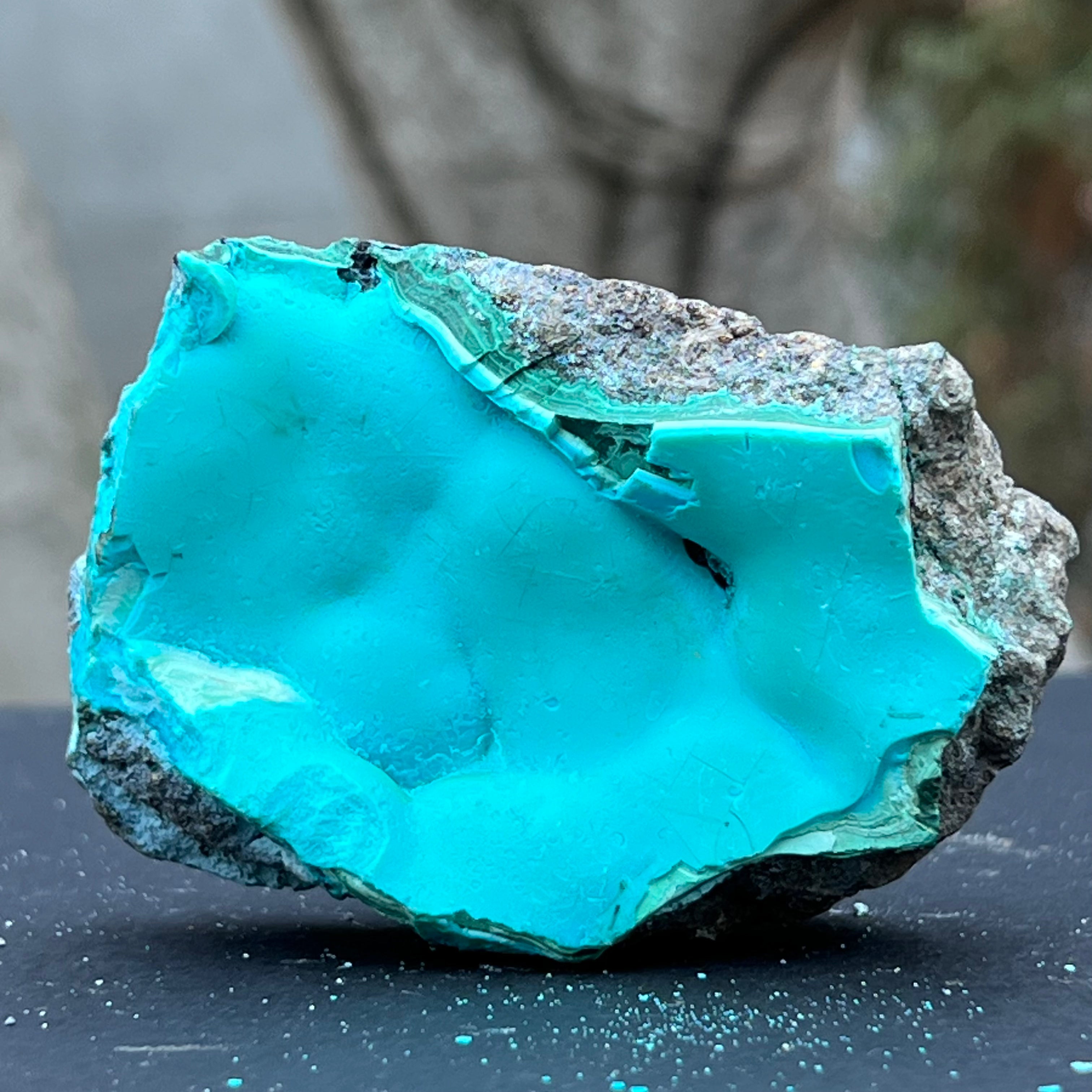 La crisocola es una piedra semipreciosa de color verde-azulado que contiene cobre.