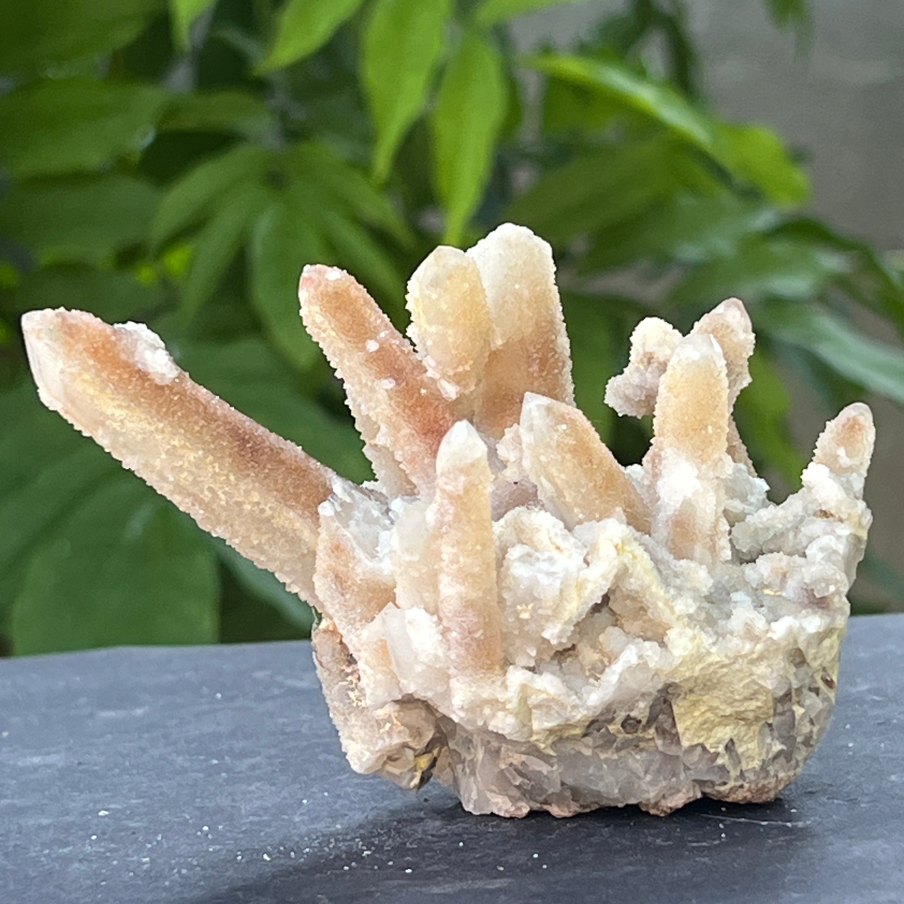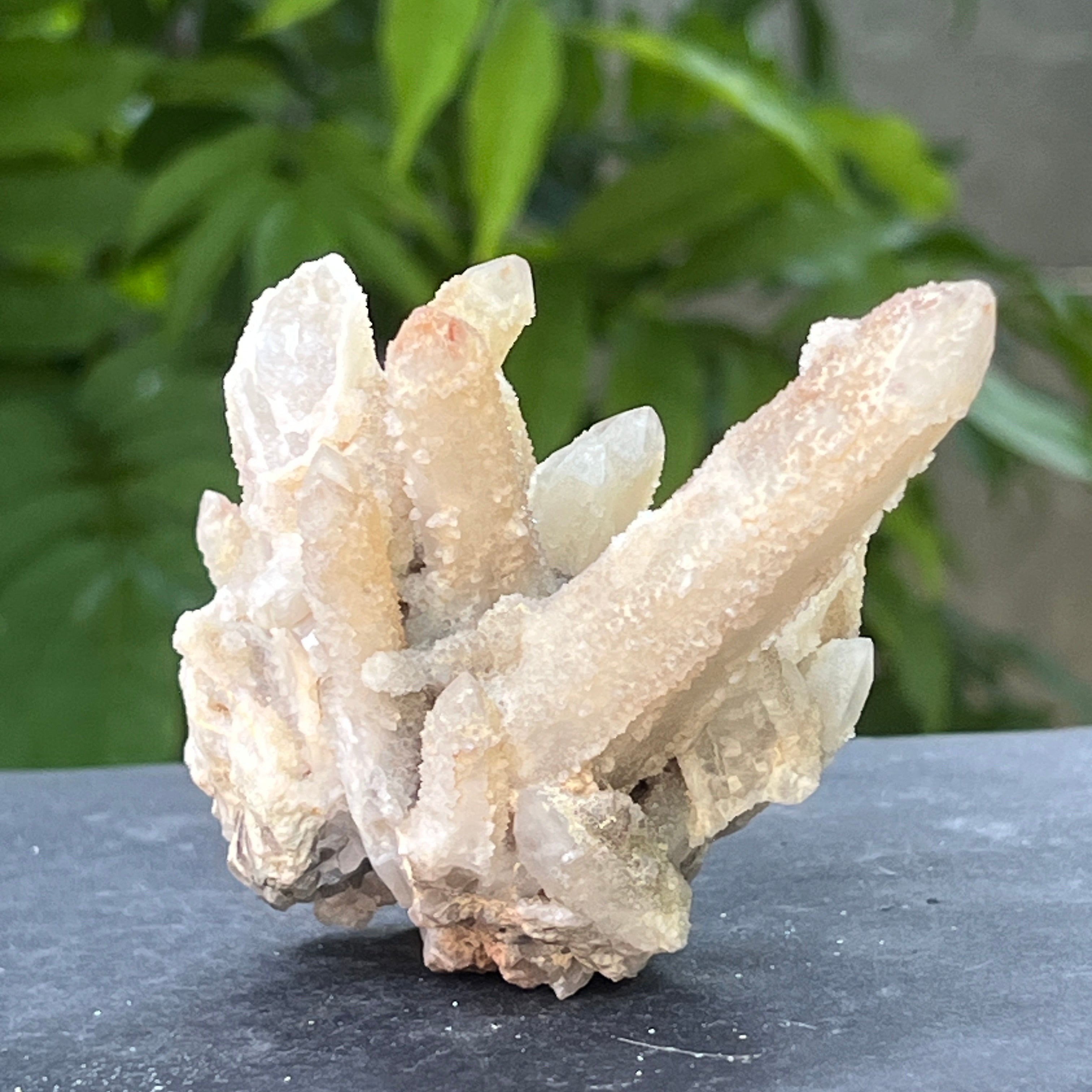 Formado en cavidades profundas de la corteza terrestre, en zonas donde las condiciones de temperatura, humedad y mineralización se alinearon perfectamente, la cristalización adoptó una forma vertical, columnar, semejante a algunas estalactitas minerales. De las paredes desnudas de una cueva, las moléculas de silicio se fueron acumulando gota a gota, formando agregados radiales y compactos de cristales finos, como agujas de luz detenidas en un movimiento ascendente.