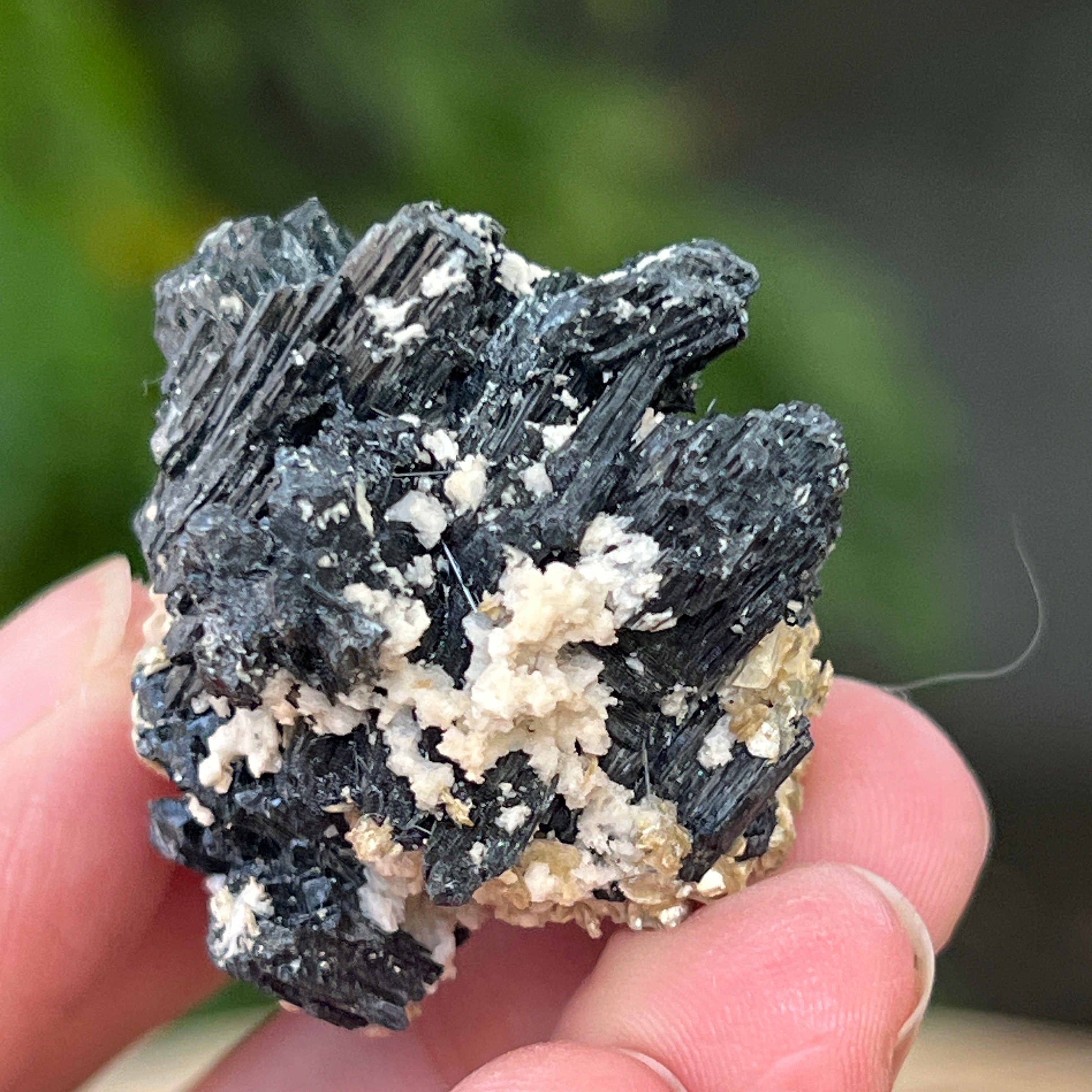 Racimo de turmalina negra con vermiculita de Erongo m16, tamaño: 3 * 2,8 * 2,8 cm