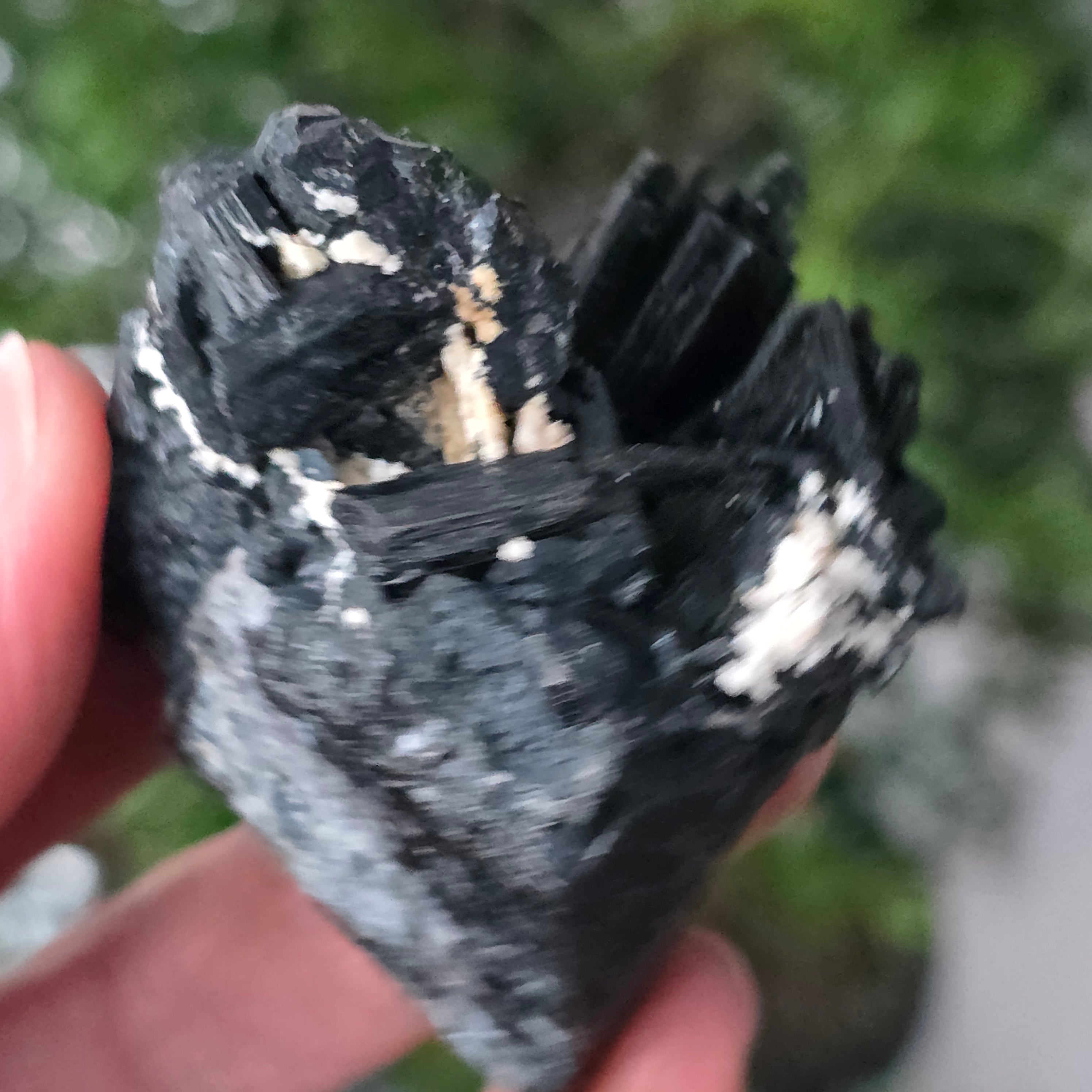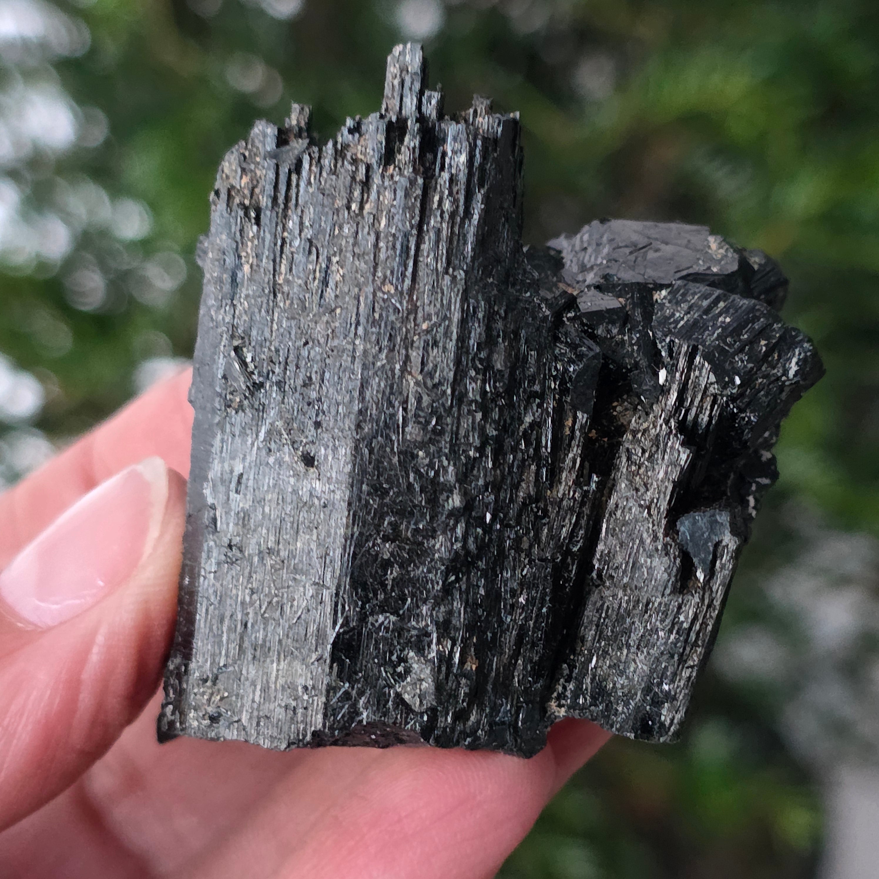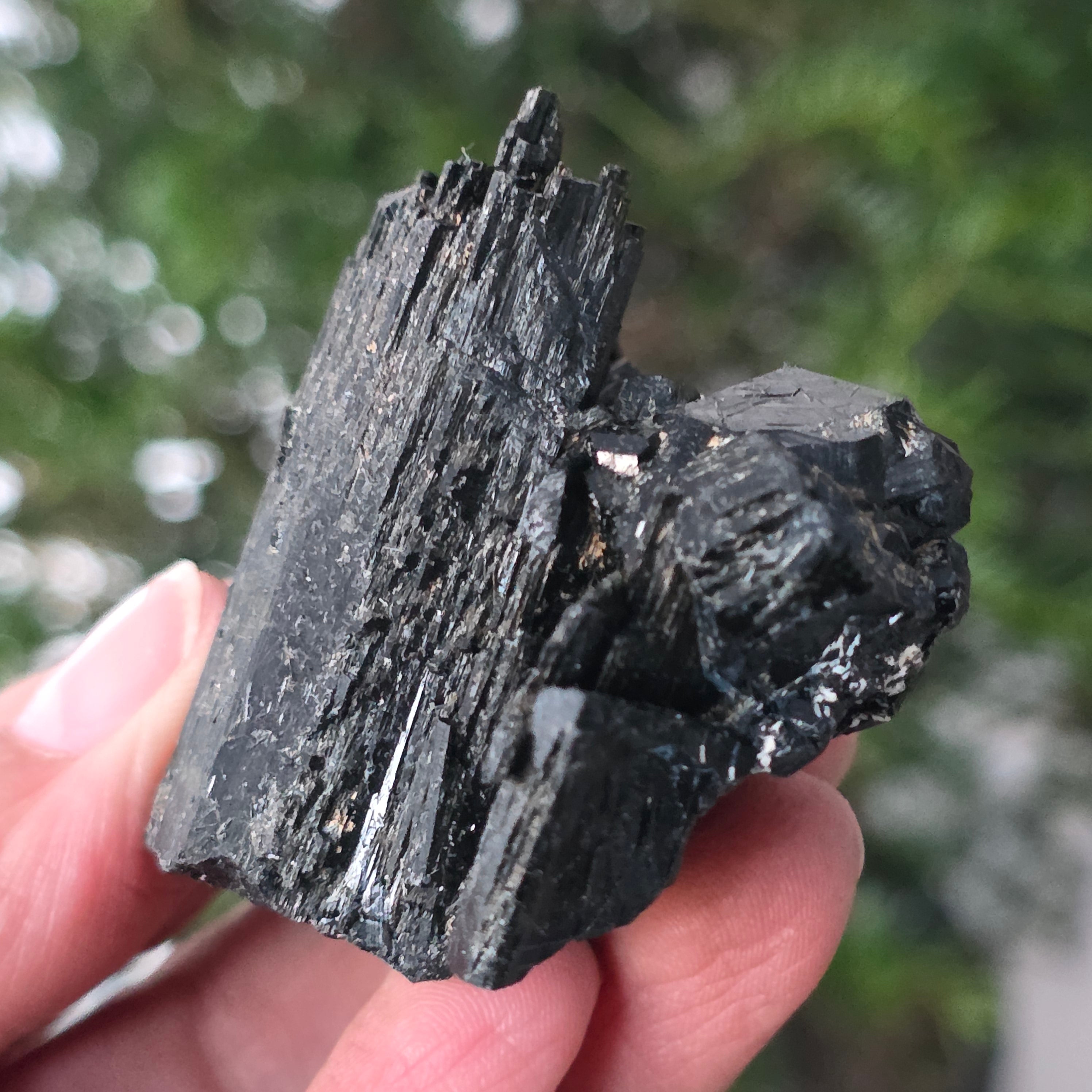 La turmalina negra, también conocida como schorl, está compuesta por una mezcla compleja de borosilicatos y se encuentra en diversas formas cristalinas. Es un mineral muy duro y tiene una gran resistencia a arañazos y desgaste.
