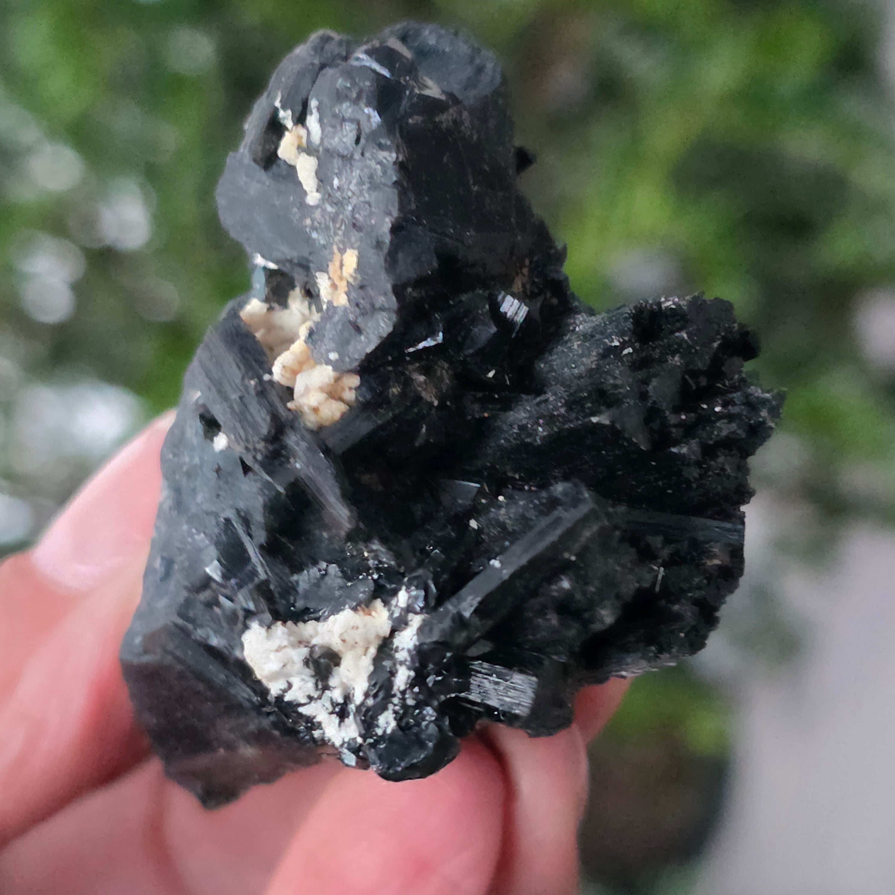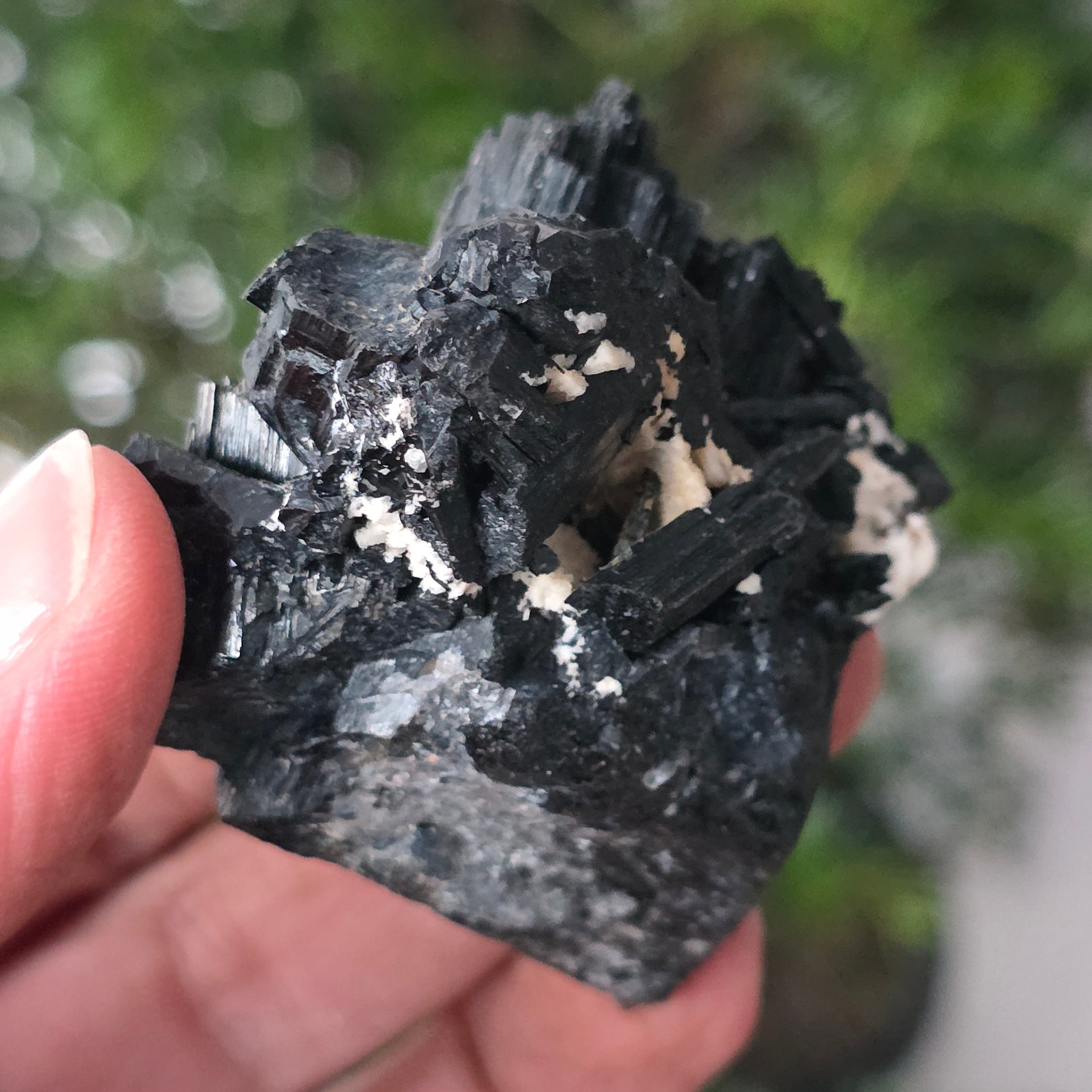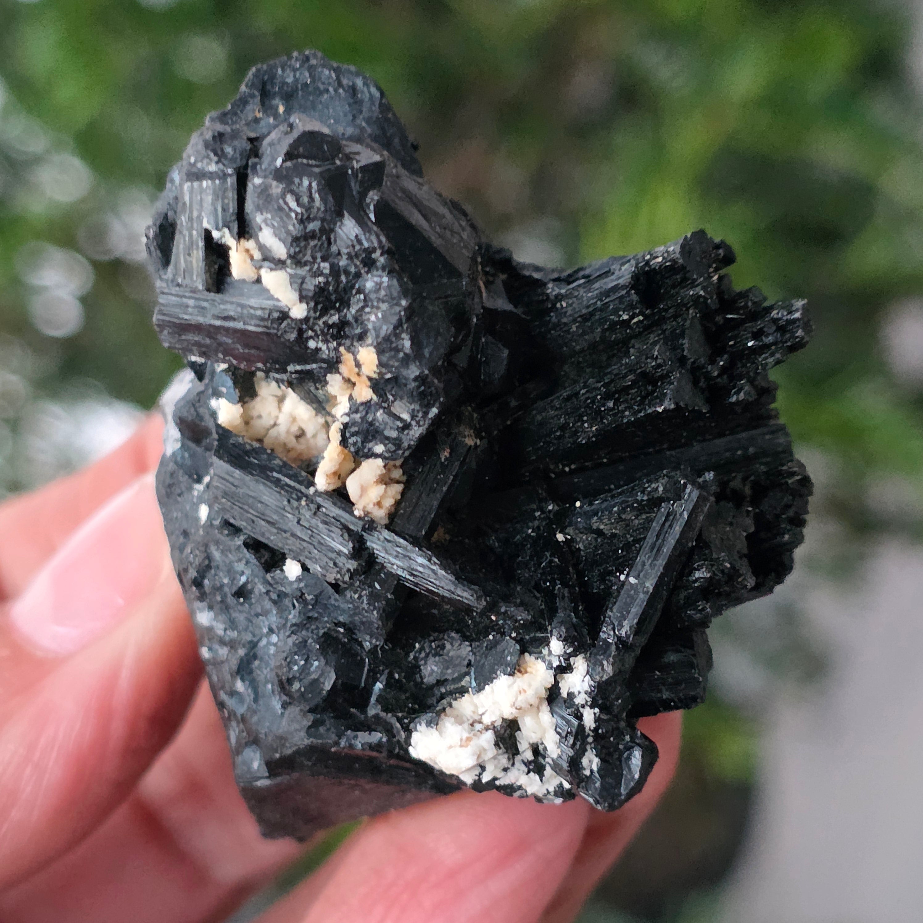 La turmalina negra, también conocida como schorl, está compuesta por una mezcla compleja de borosilicatos y se encuentra en diversas formas cristalinas. Es un mineral muy duro y tiene una gran resistencia a arañazos y desgaste.