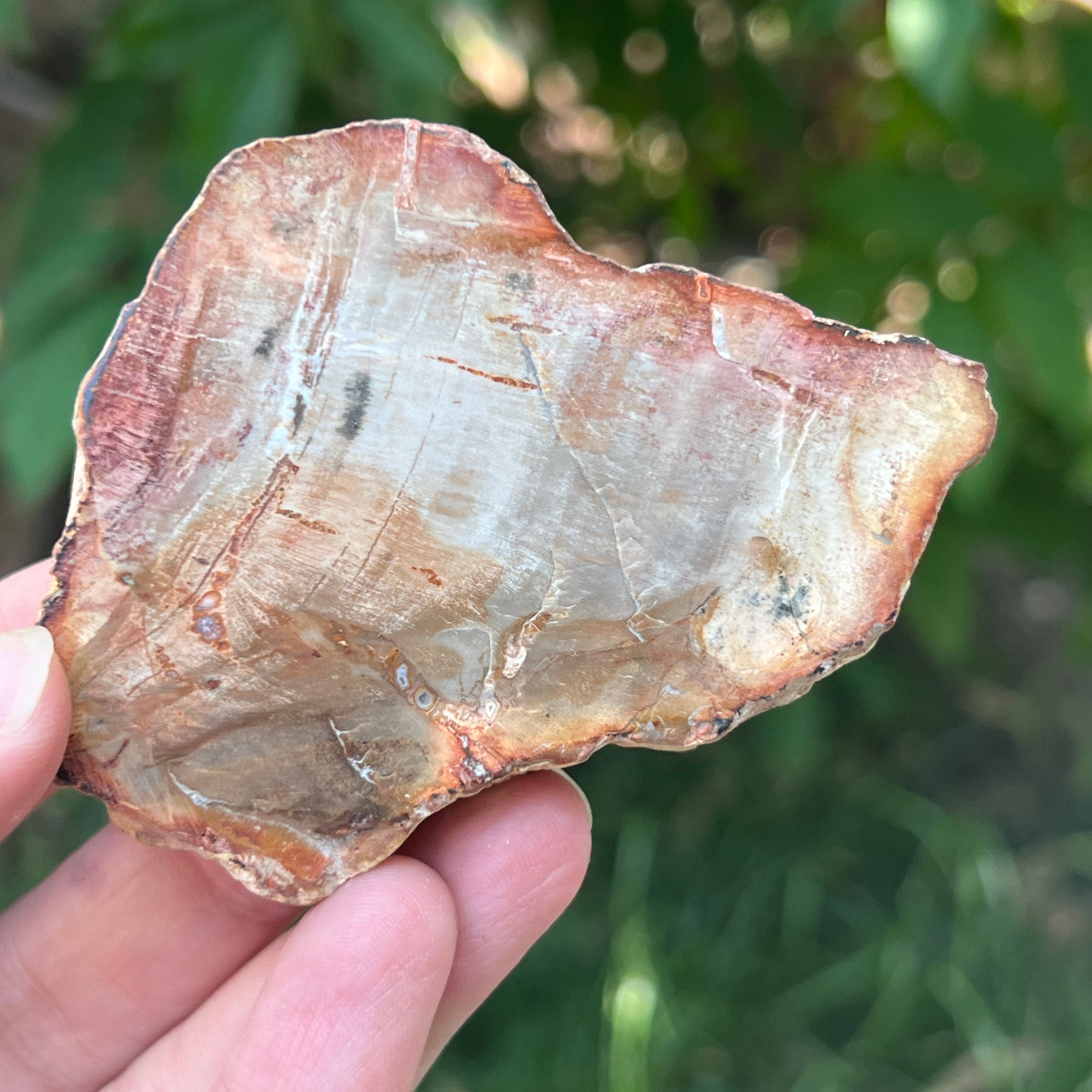Con el tiempo, los colores de la madera petrificada se desarrollan debido a impurezas minerales: el hierro añade tonos rojizos o anaranjados, el manganeso aporta tonos negros y morados, y el cobre puede introducir acentos verdosos o azulados. Aunque a primera vista parezca madera, esta piedra está completamente mineralizada, teniendo un Dureza de Mohs de aproximadamente 6,5 – 7, similar al cuarzo.