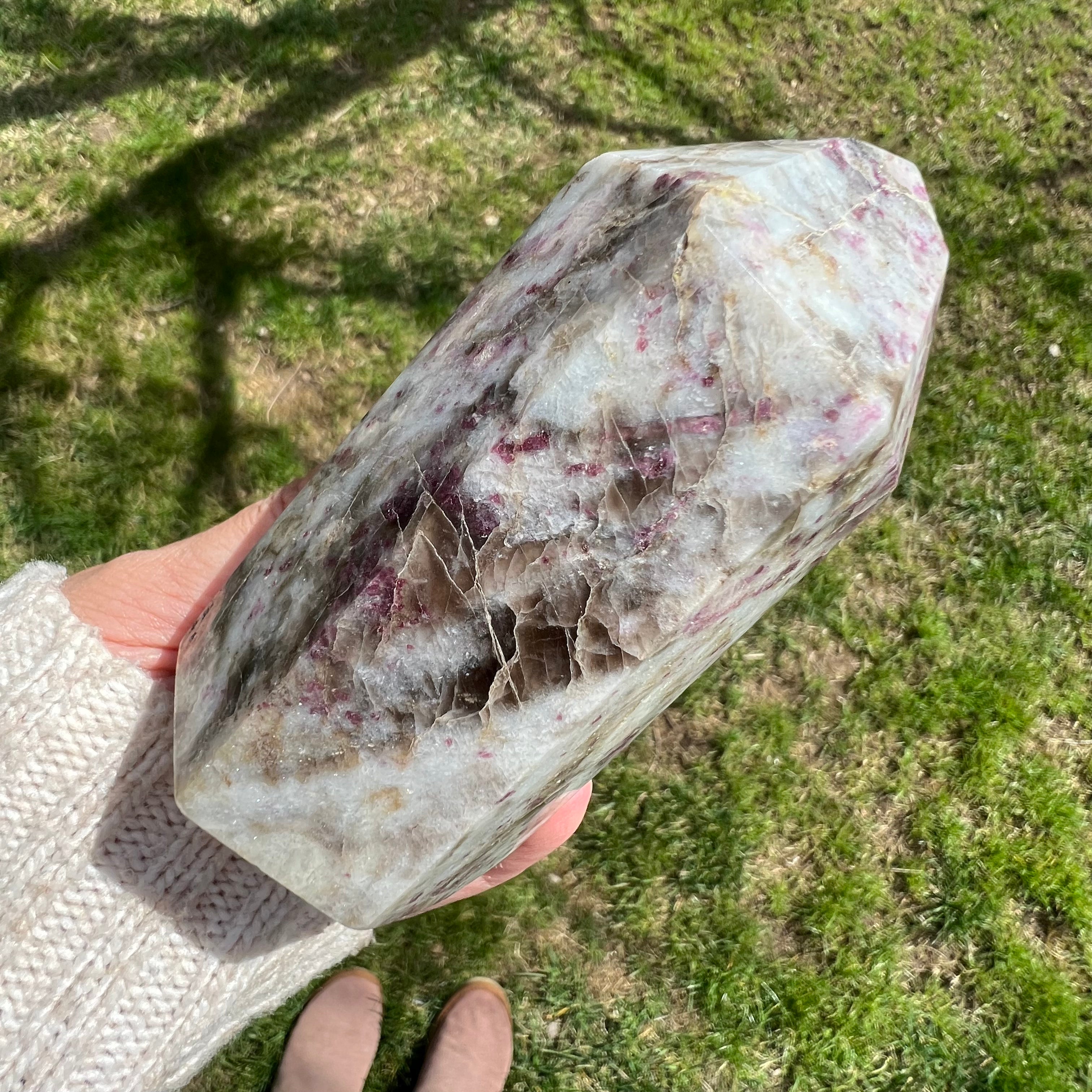 Torre rubelita/turmalina rosa m1, tamaño: 10,5 * 5,5 cm