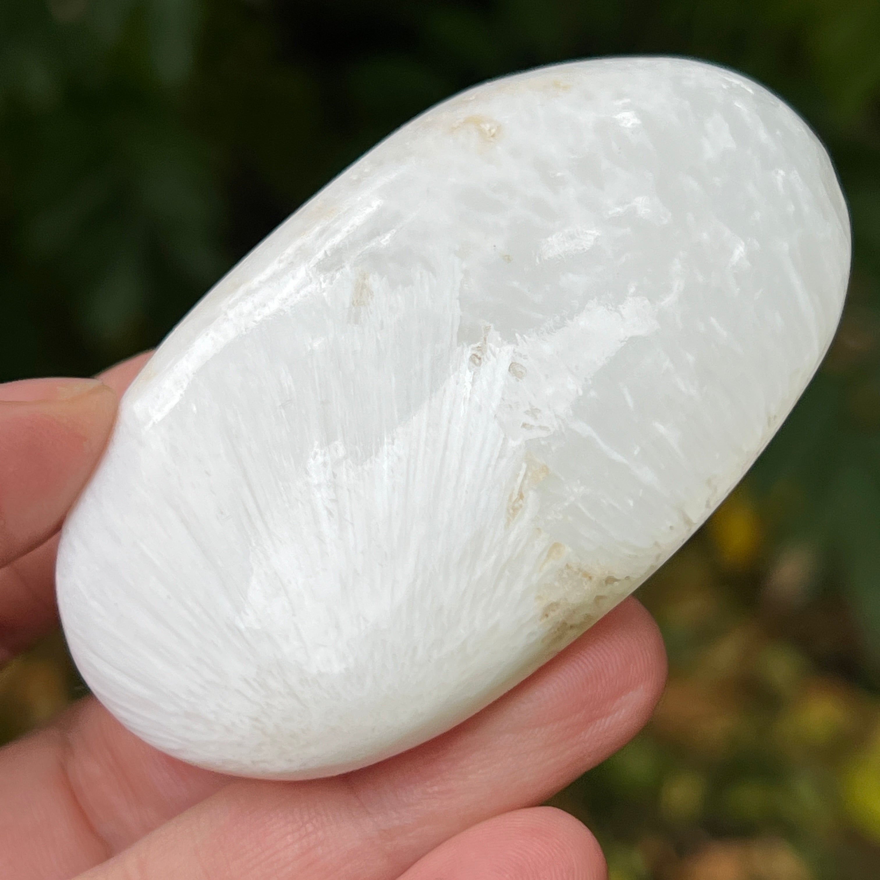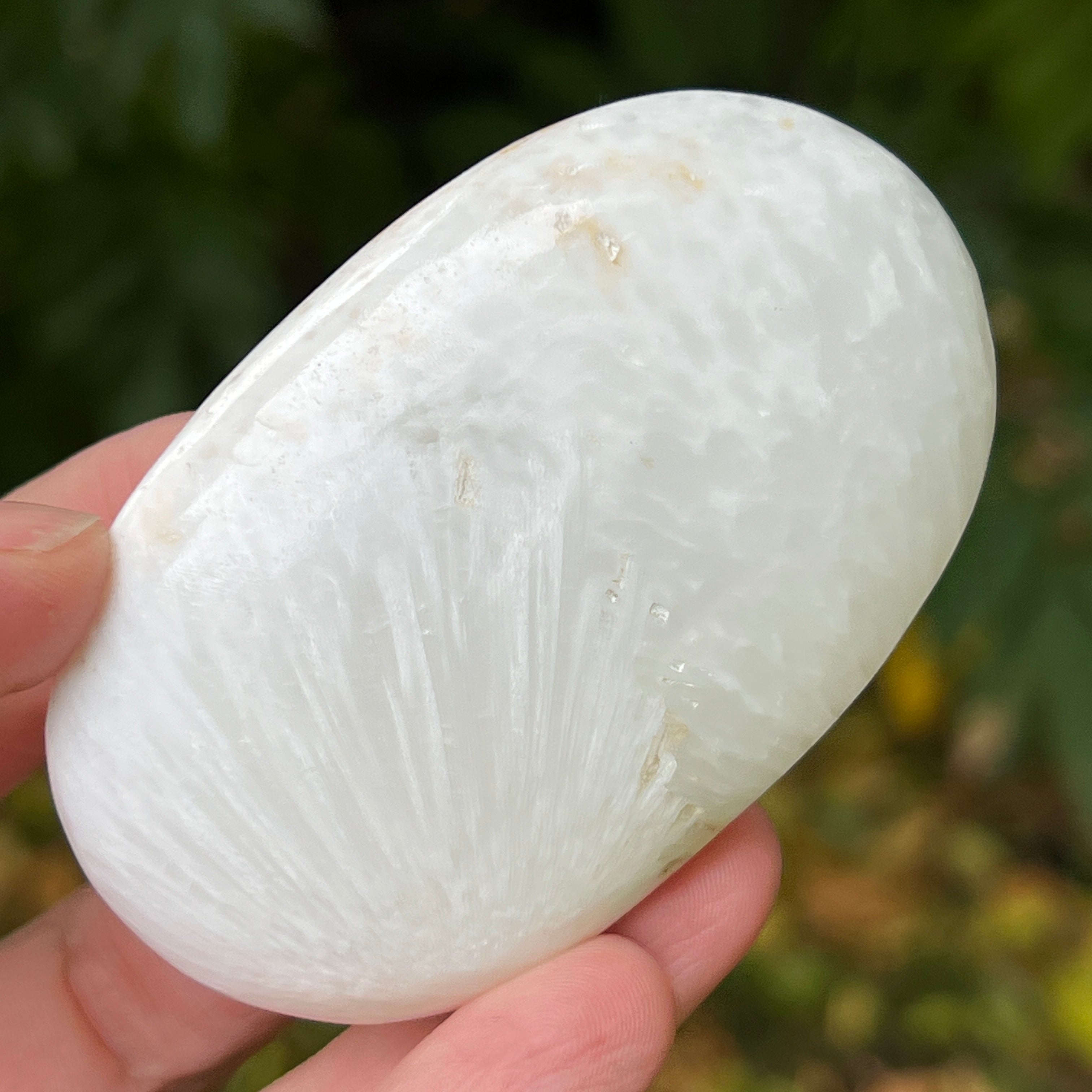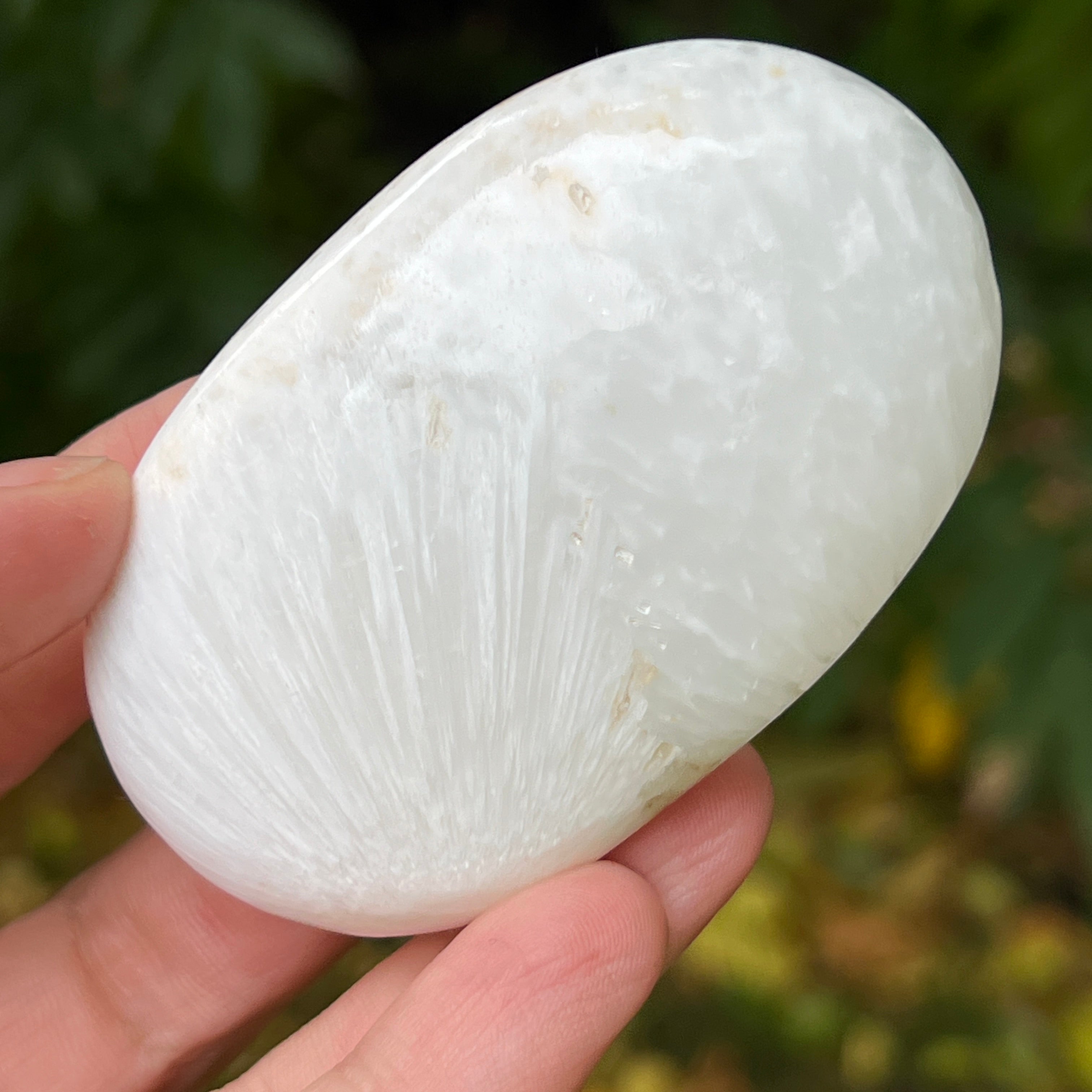La scolecita es una piedra delicada y luminosa, perteneciente a la familia de los zeolitos, reconocida por su estructura fina, fibroso-radial y su brillo sedoso. Por lo general es blanca o crema, a veces con sutiles tonos de rosa o beige, esta piedra emana una pureza casi etérea, recordando la calma interior y el silencio del que nace la paz.