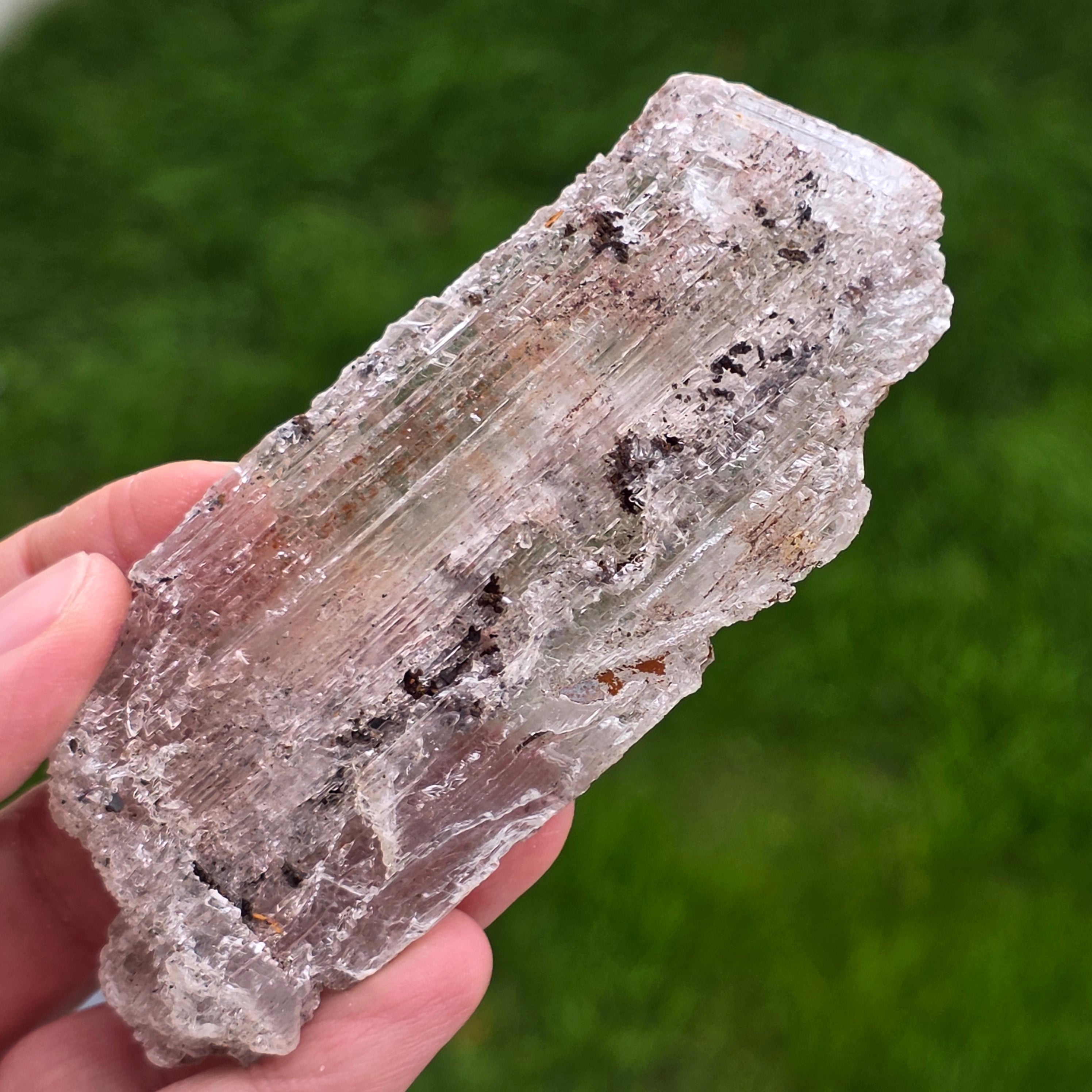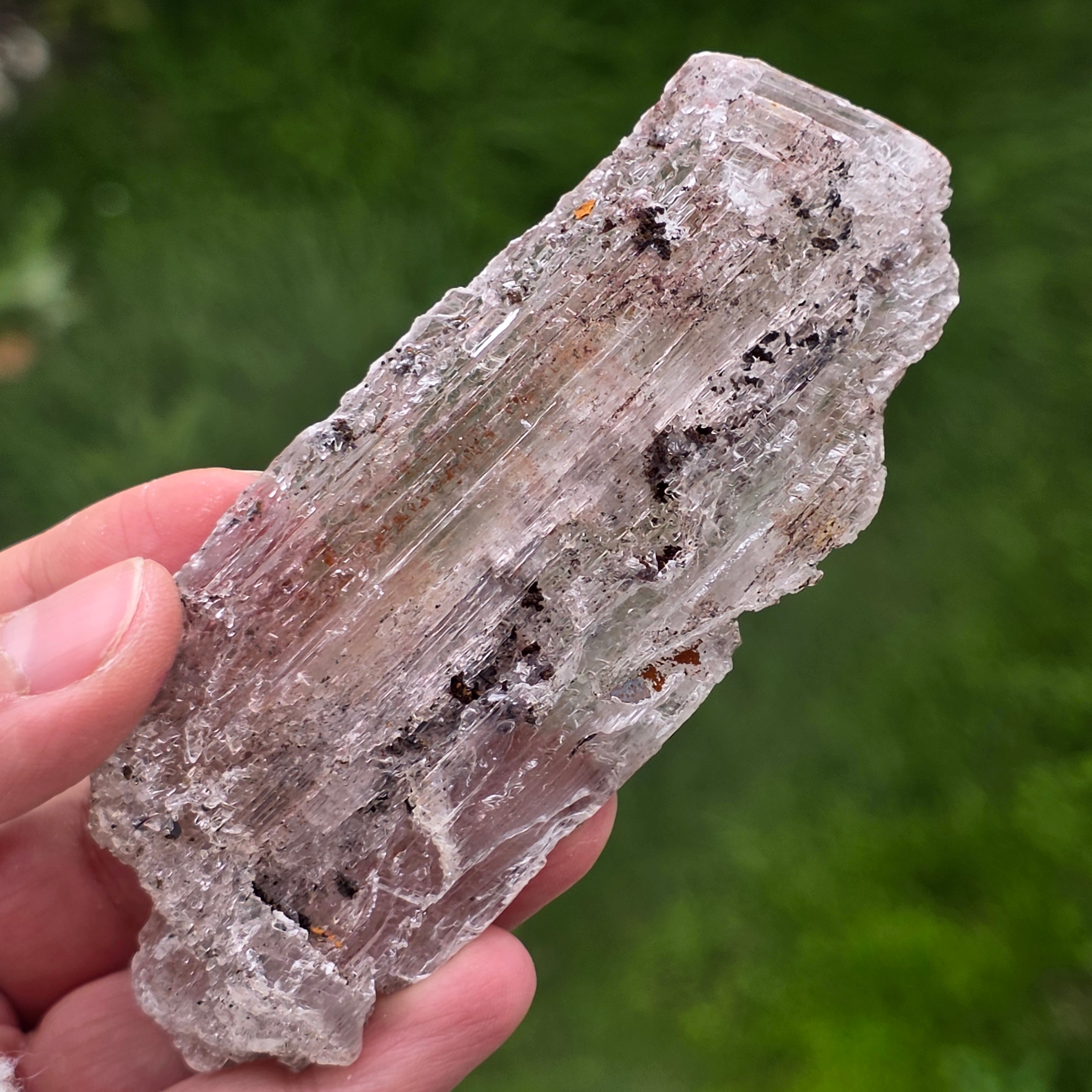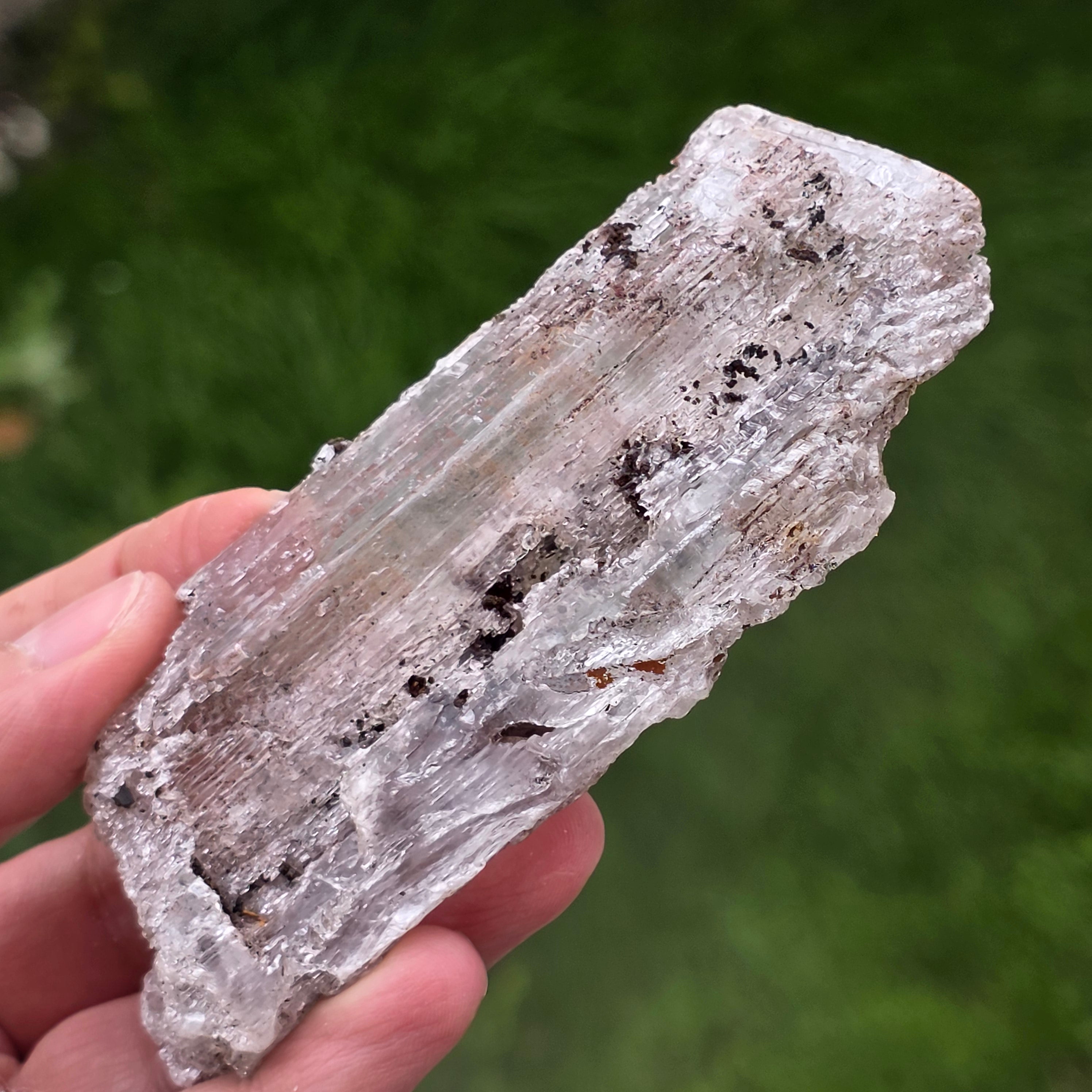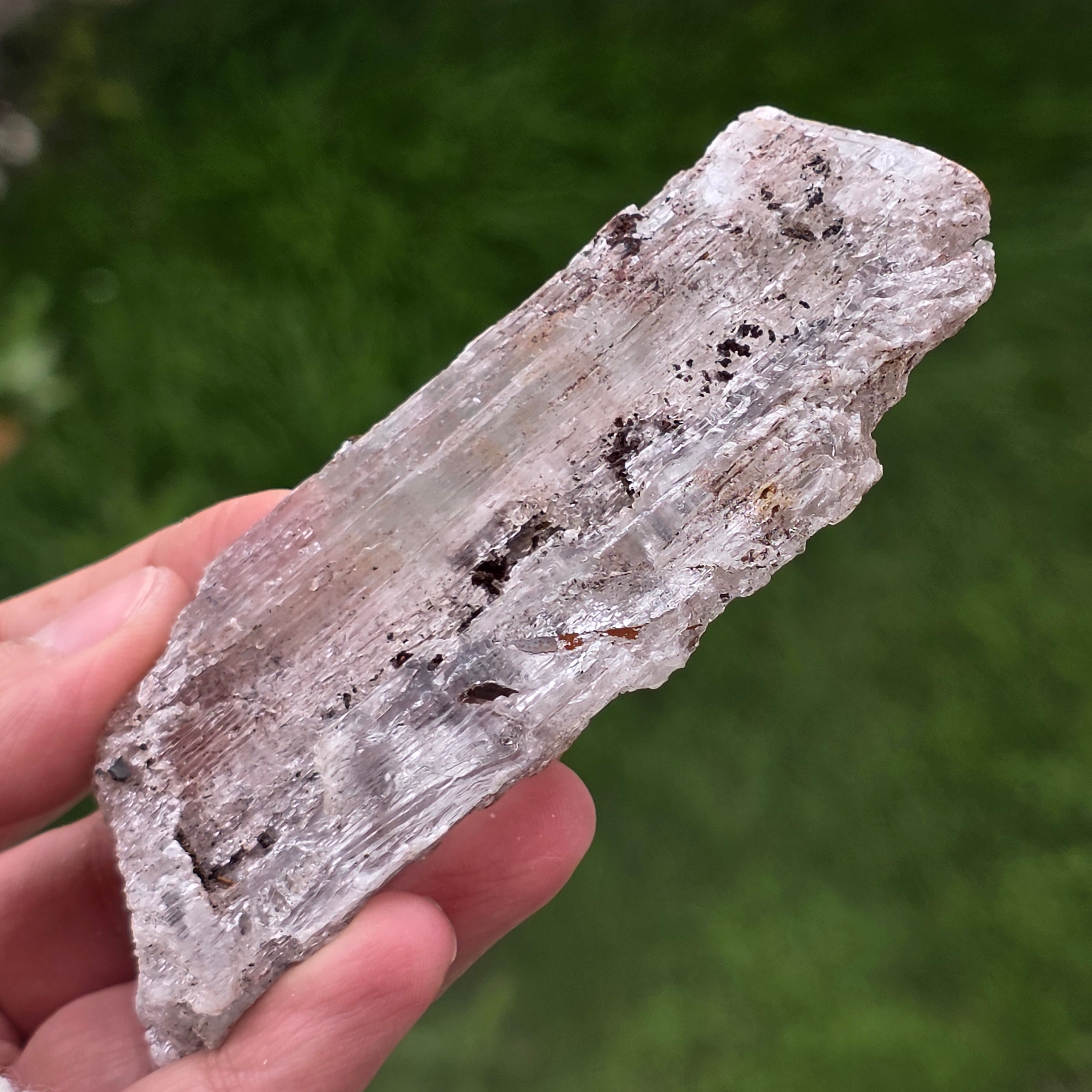 Este especimen de selenita con hematita de México es una pieza mineralógica auténtica, apreciada por el contraste natural entre la transparencia lechosa de la selenita y los tonos metálicos, marrón-rojizos de la hematita. La combinación de estos dos minerales crea un aspecto visual impactante.