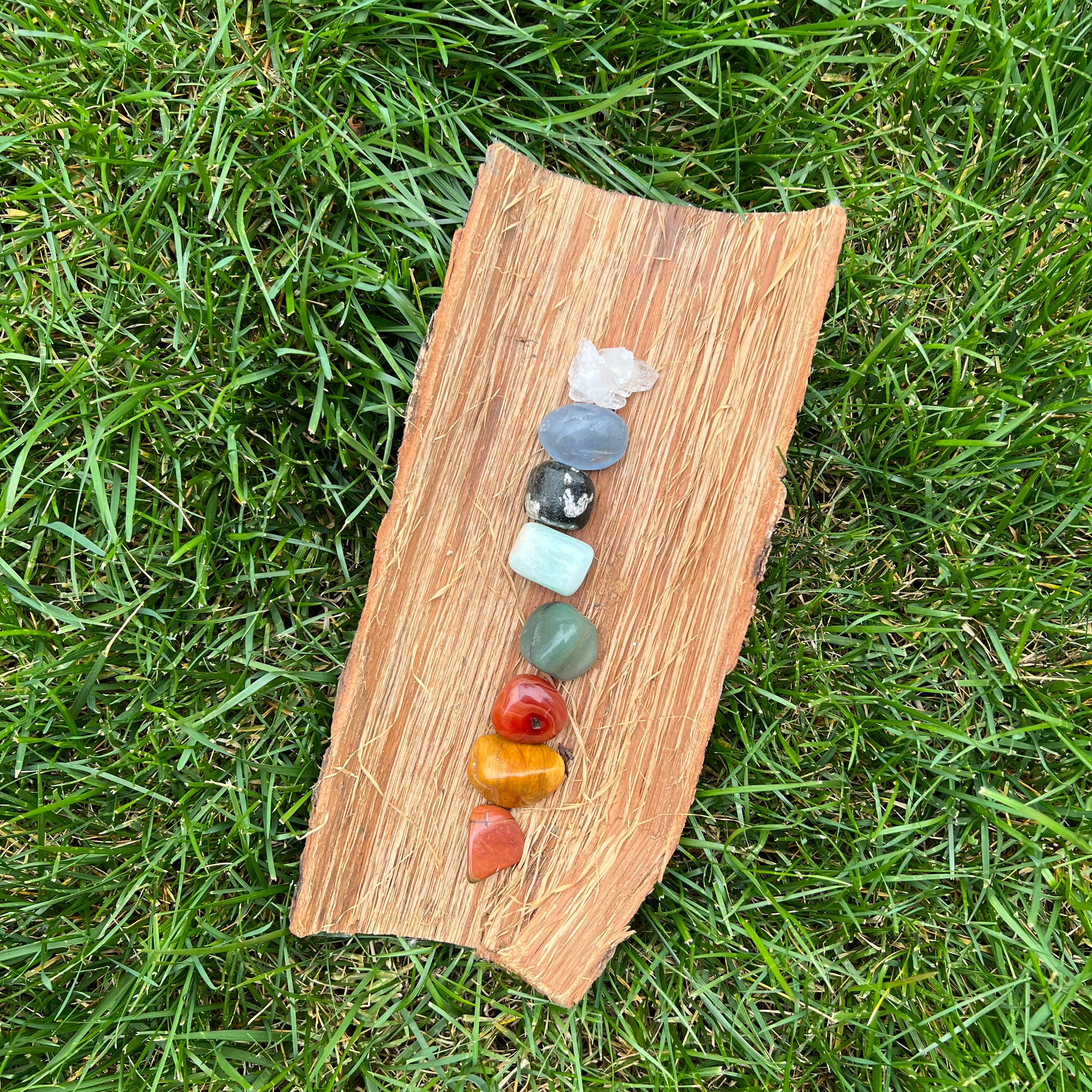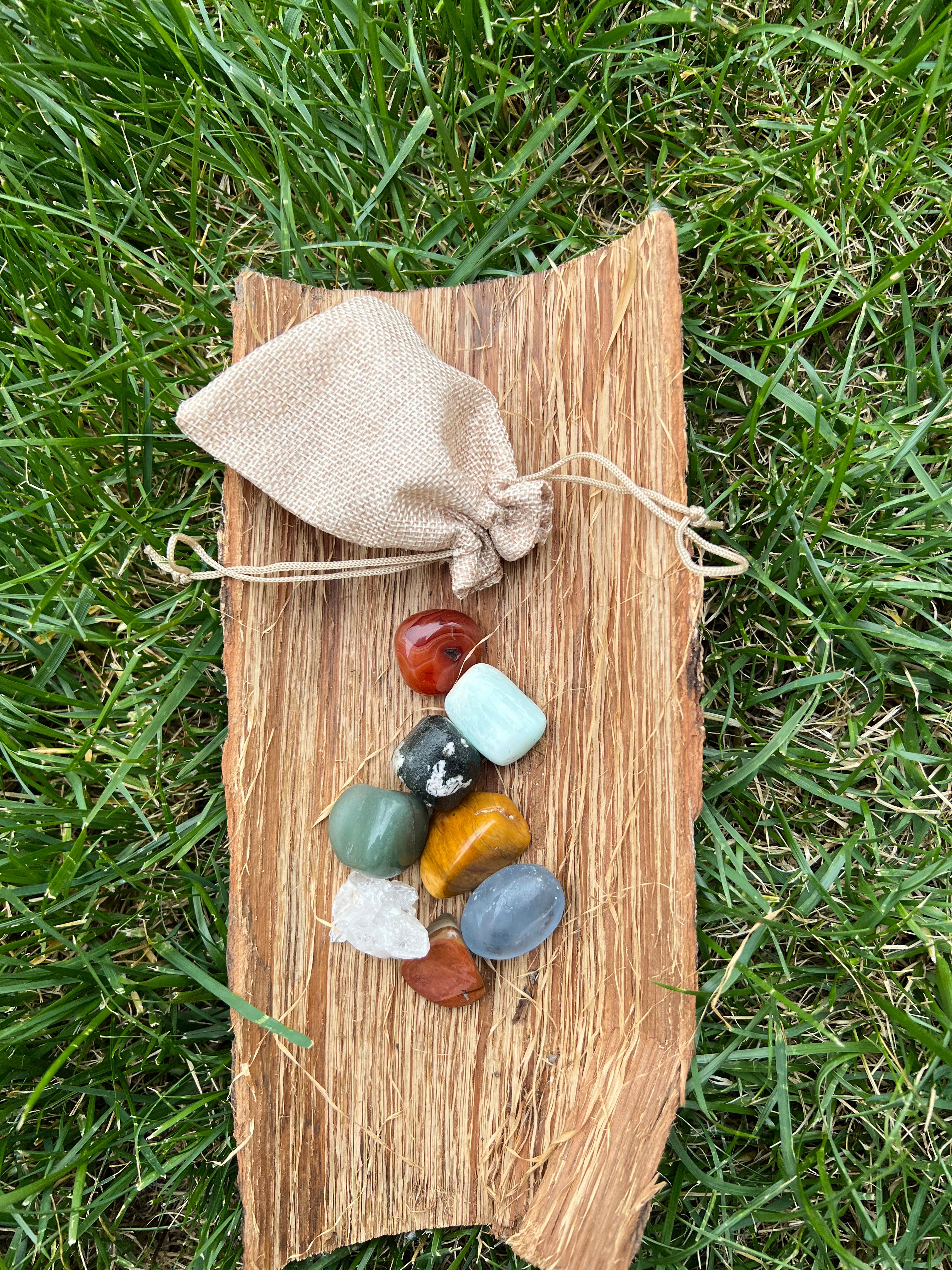 Set de cristales 7 chakras IAM, 9 piedras semipreciosas 3-4 cm