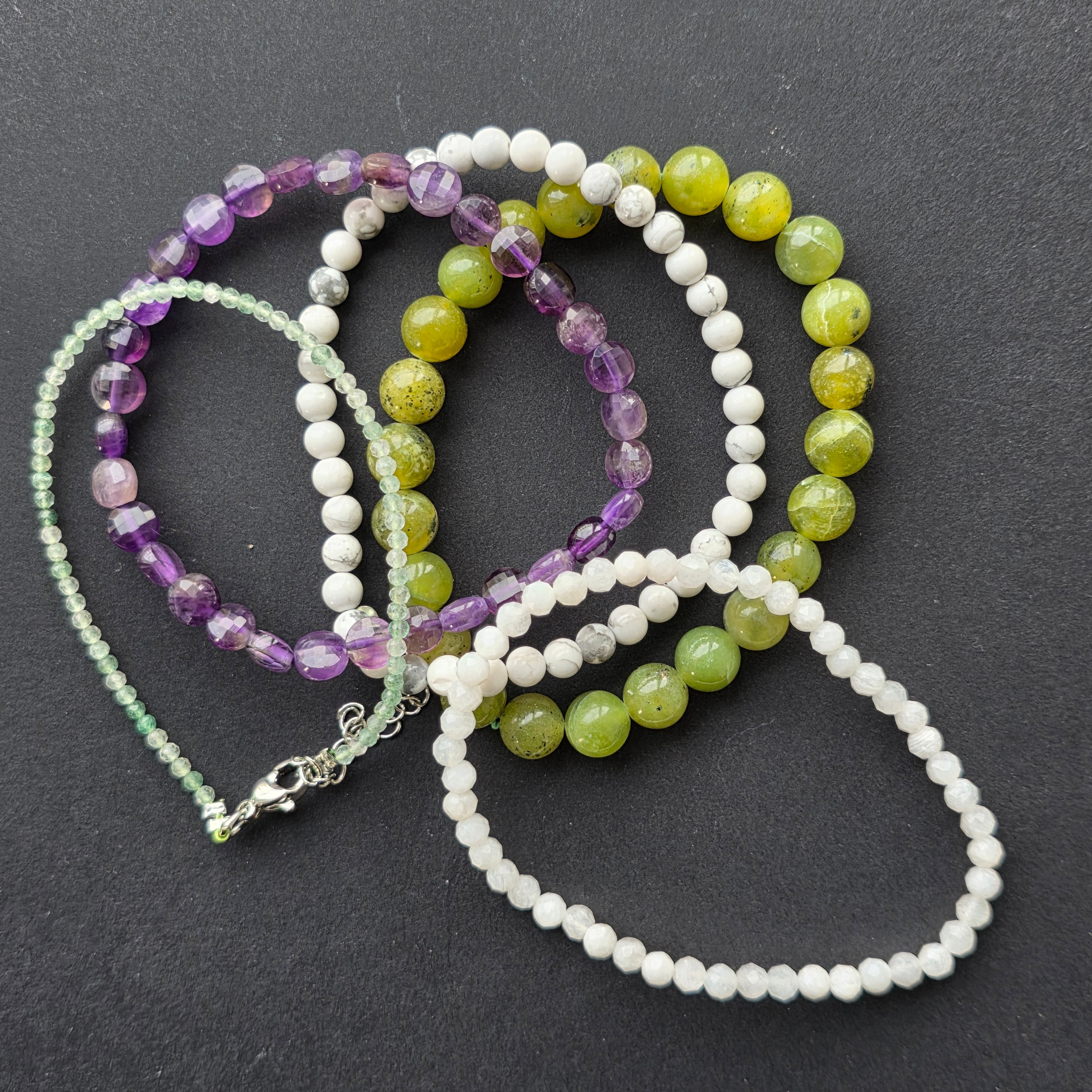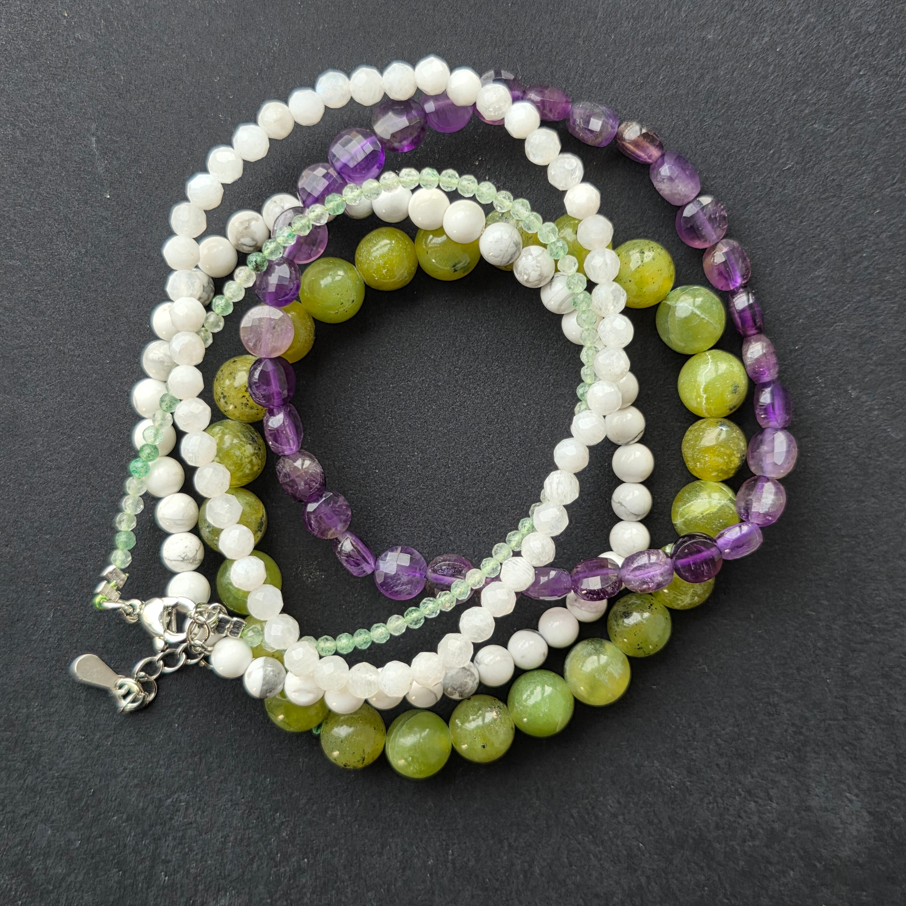 La amatista en discos facetados de 6 mm ofrece claridad mental y paz profunda, ayudándola a organizar sus emociones y a reencontrar su centro en momentos de agitación.