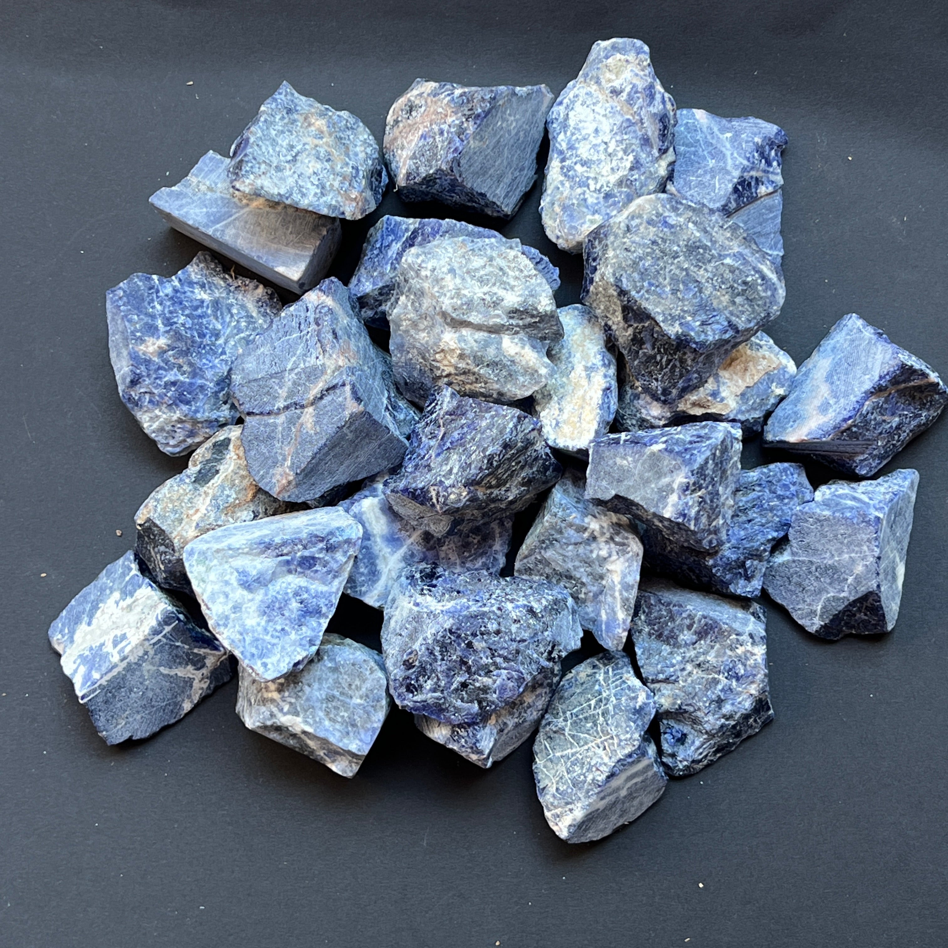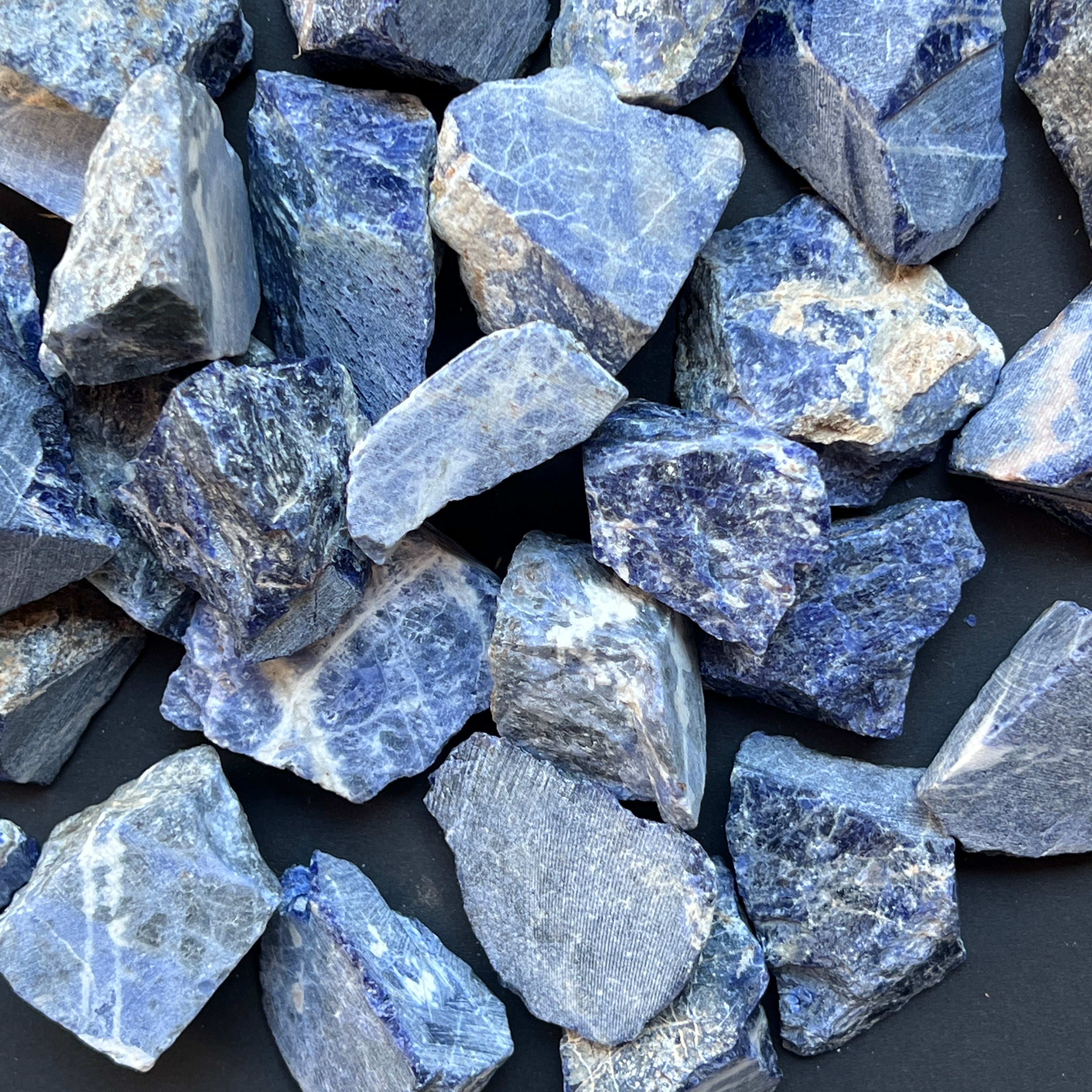 Sodalita piedra en bruto, dimensiones entre 2,5 y 4 cm. El precio varía según el tamaño de la piedra, por favor seleccione la dimensión deseada. El precio se refiere a una pieza.