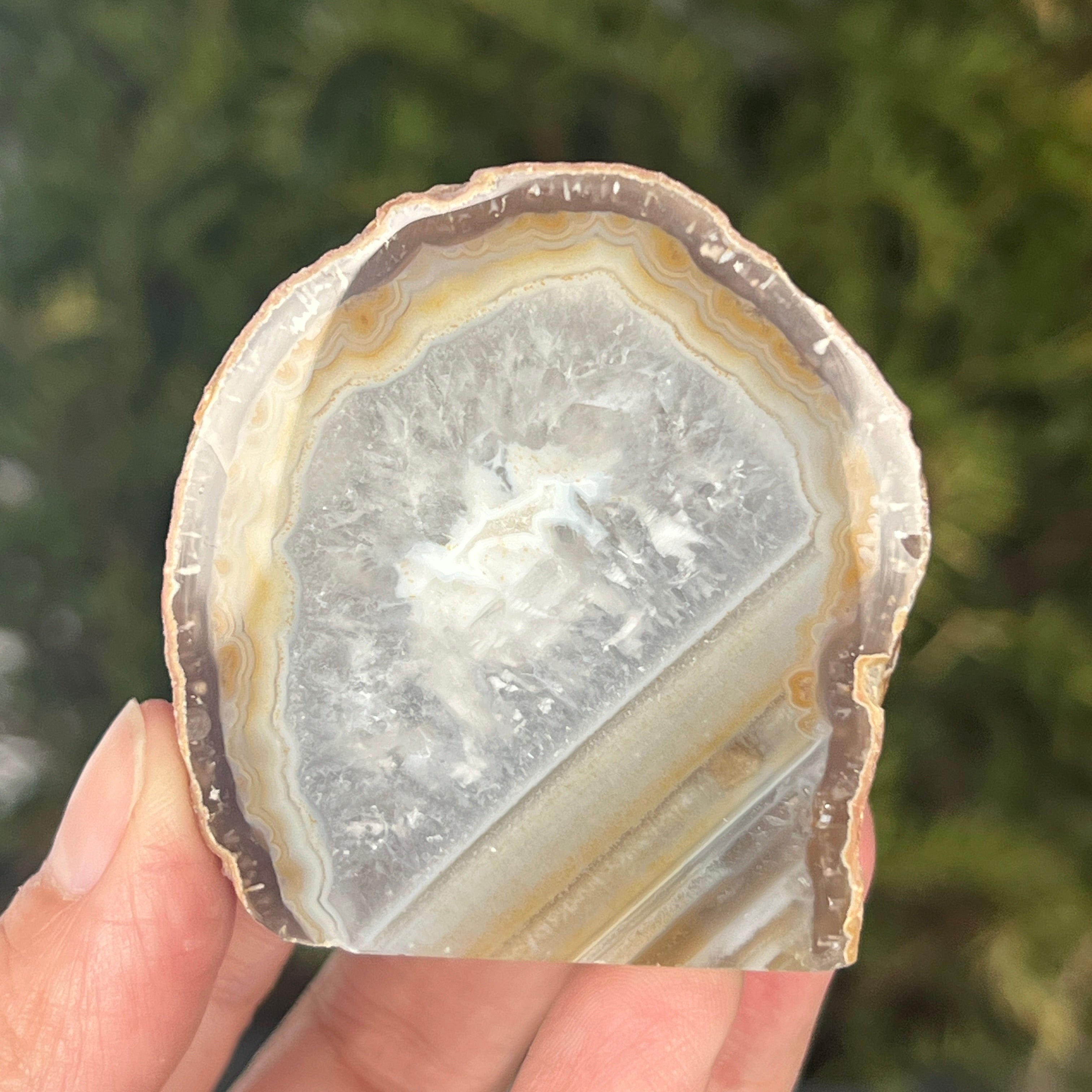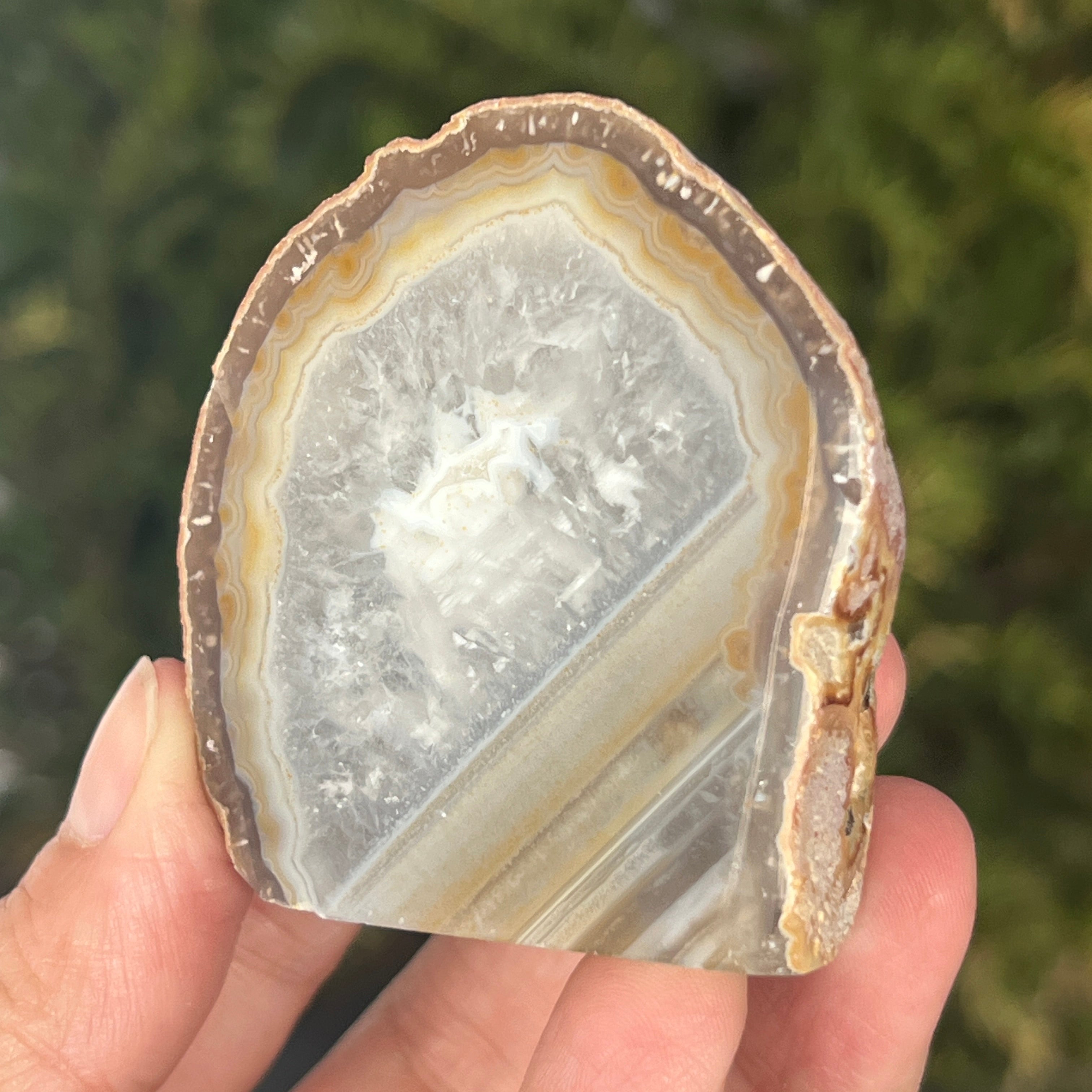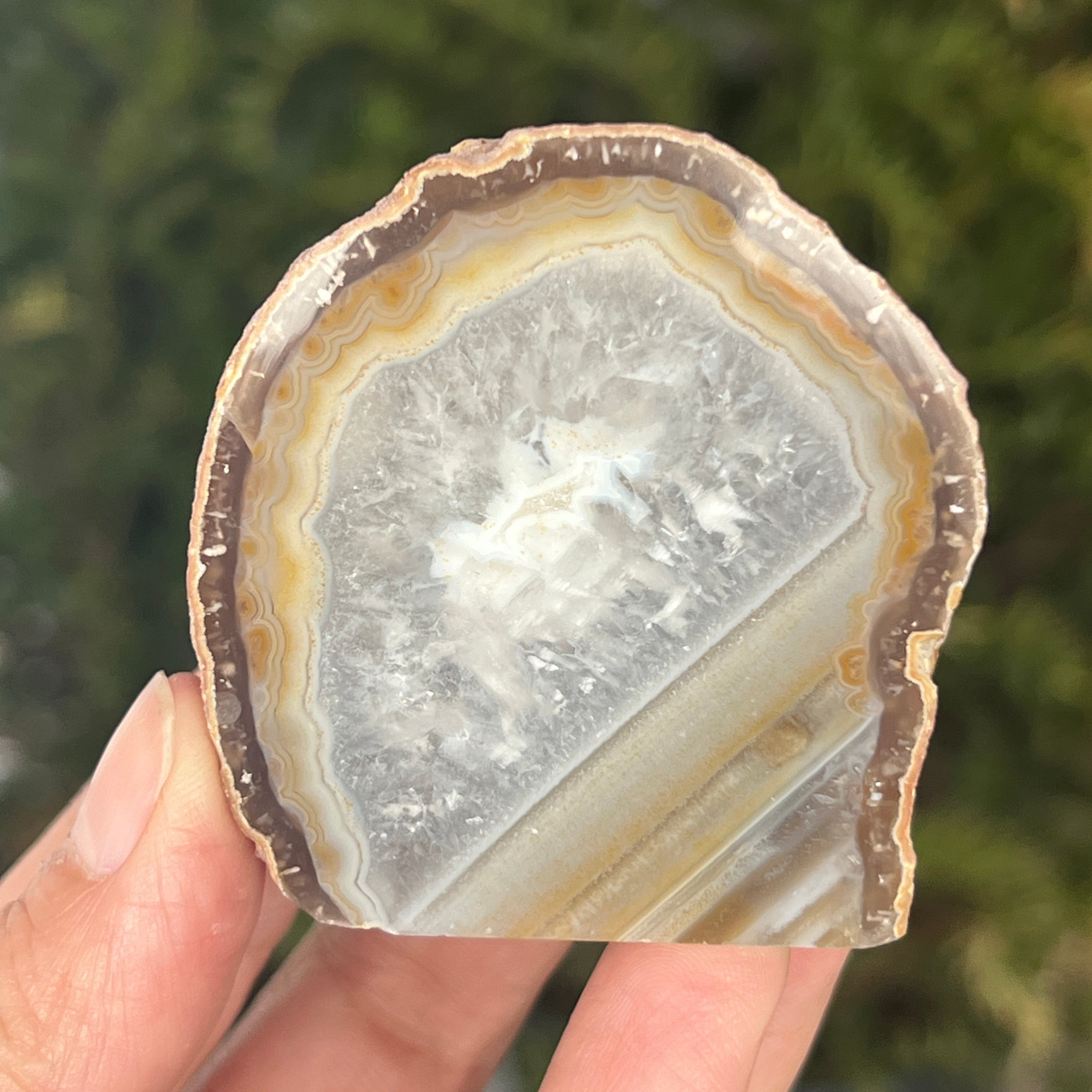 La ágata gris natural es una variedad de calcedonia, una forma microcristalina de cuarzo caracterizada por bandas finas formadas de manera natural en cavidades volcánicas. Sus tonos neutros resaltan la estructura mineral auténtica y la elegancia discreta de la piedra. Es apreciada tanto por su apariencia natural como por la simbología asociada con la estabilidad y el equilibrio.