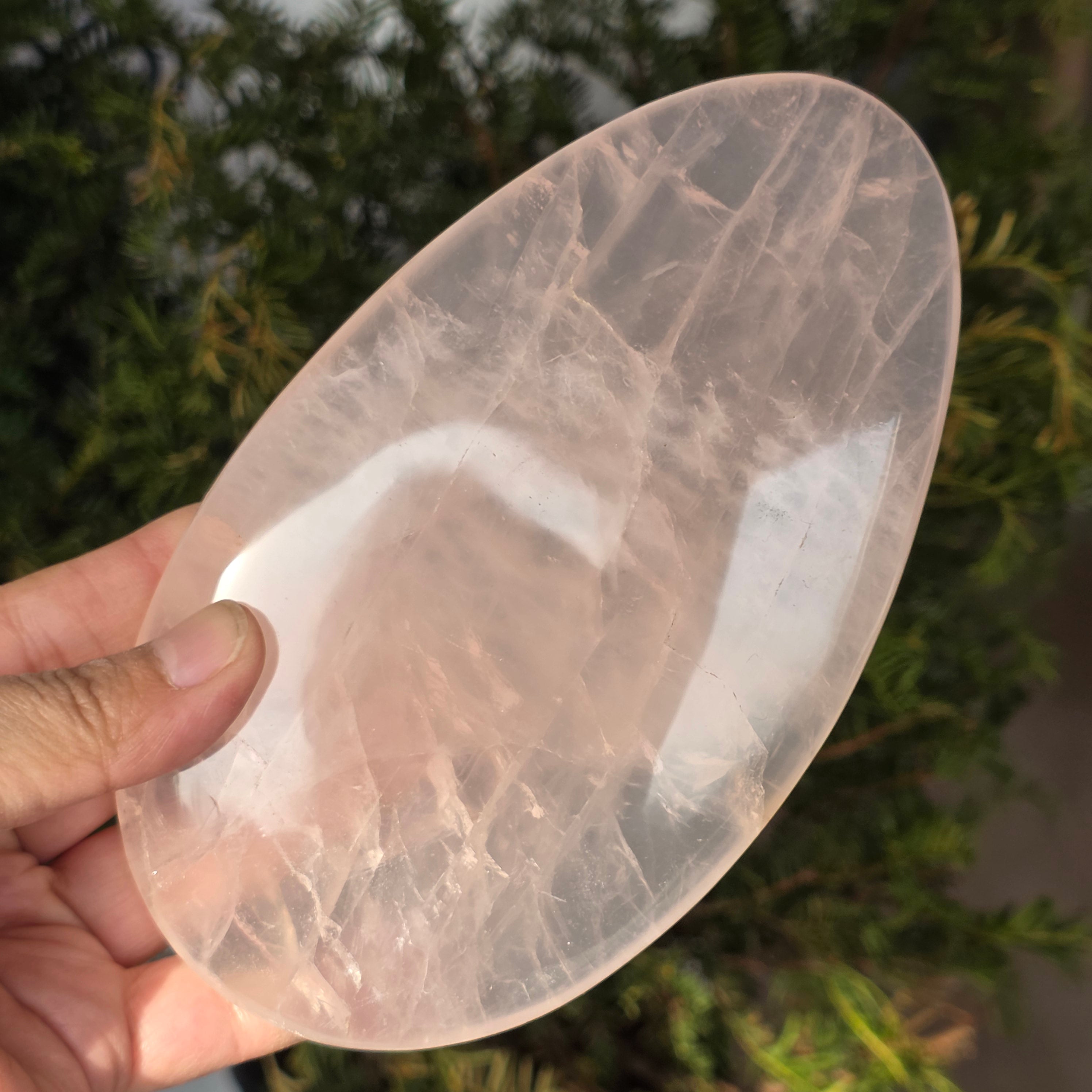 Existen objetos que superan la belleza visual y crean un estado. Esta placa de cuarzo rosa natural aporta una energía delicada, con matices cálidos y translúcidos, que ofrece tranquilidad y refinamiento en cualquier espacio.