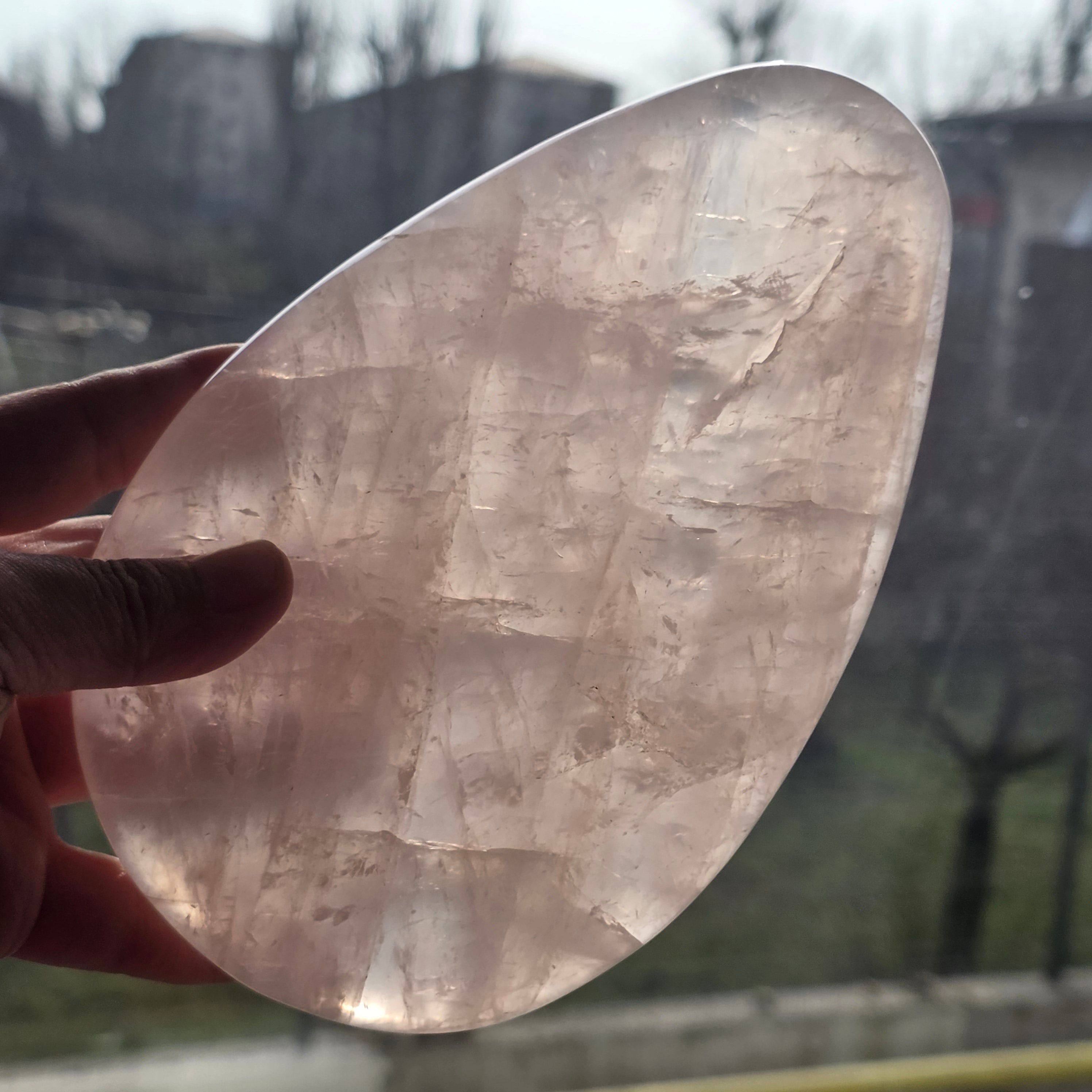 Existen objetos que superan la belleza visual y crean un estado. Esta placa de cuarzo rosa natural aporta una energía delicada, con matices cálidos y translúcidos, que ofrece tranquilidad y refinamiento en cualquier espacio.