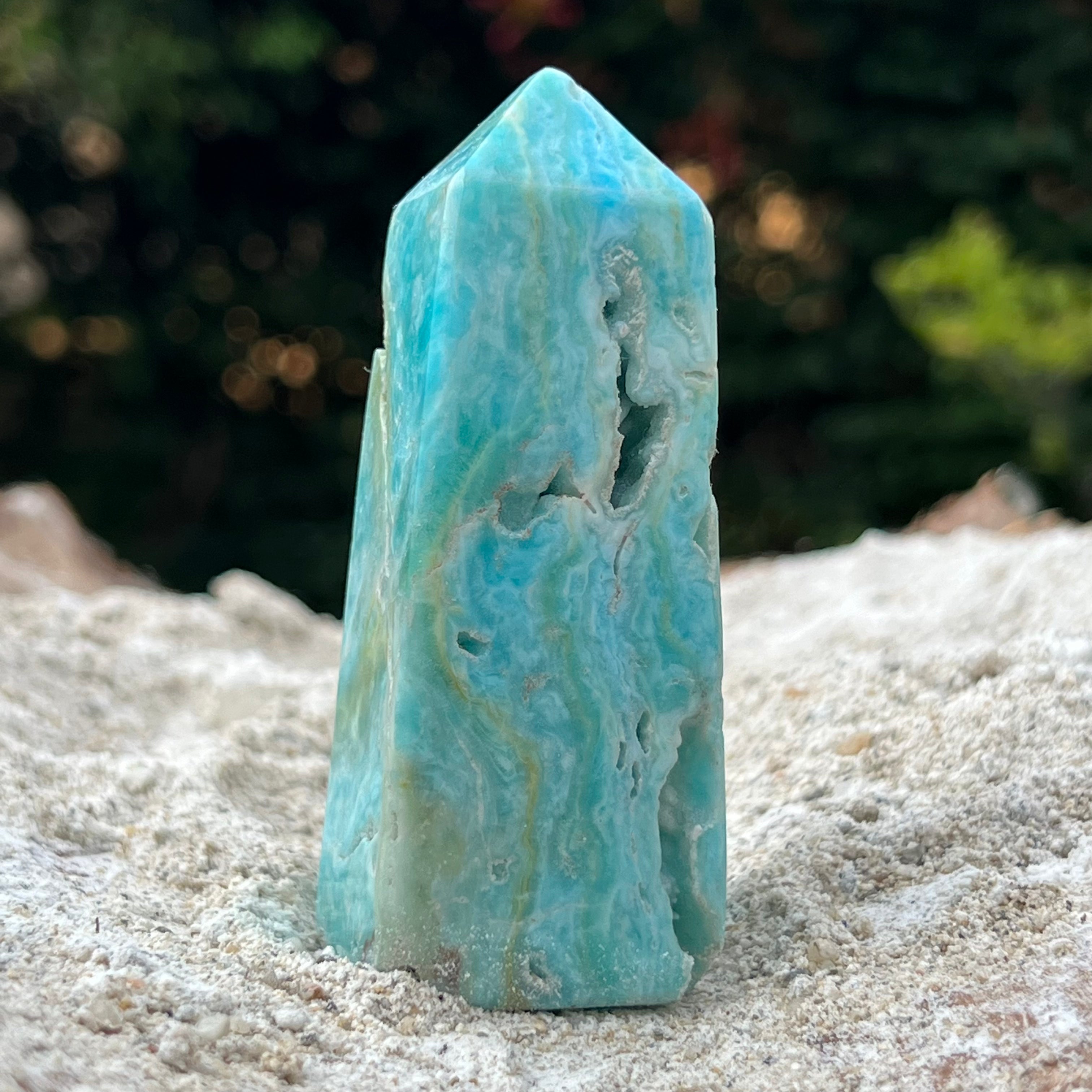 Torre de aragonito/obelisco azul m6, tamaño 9 cm