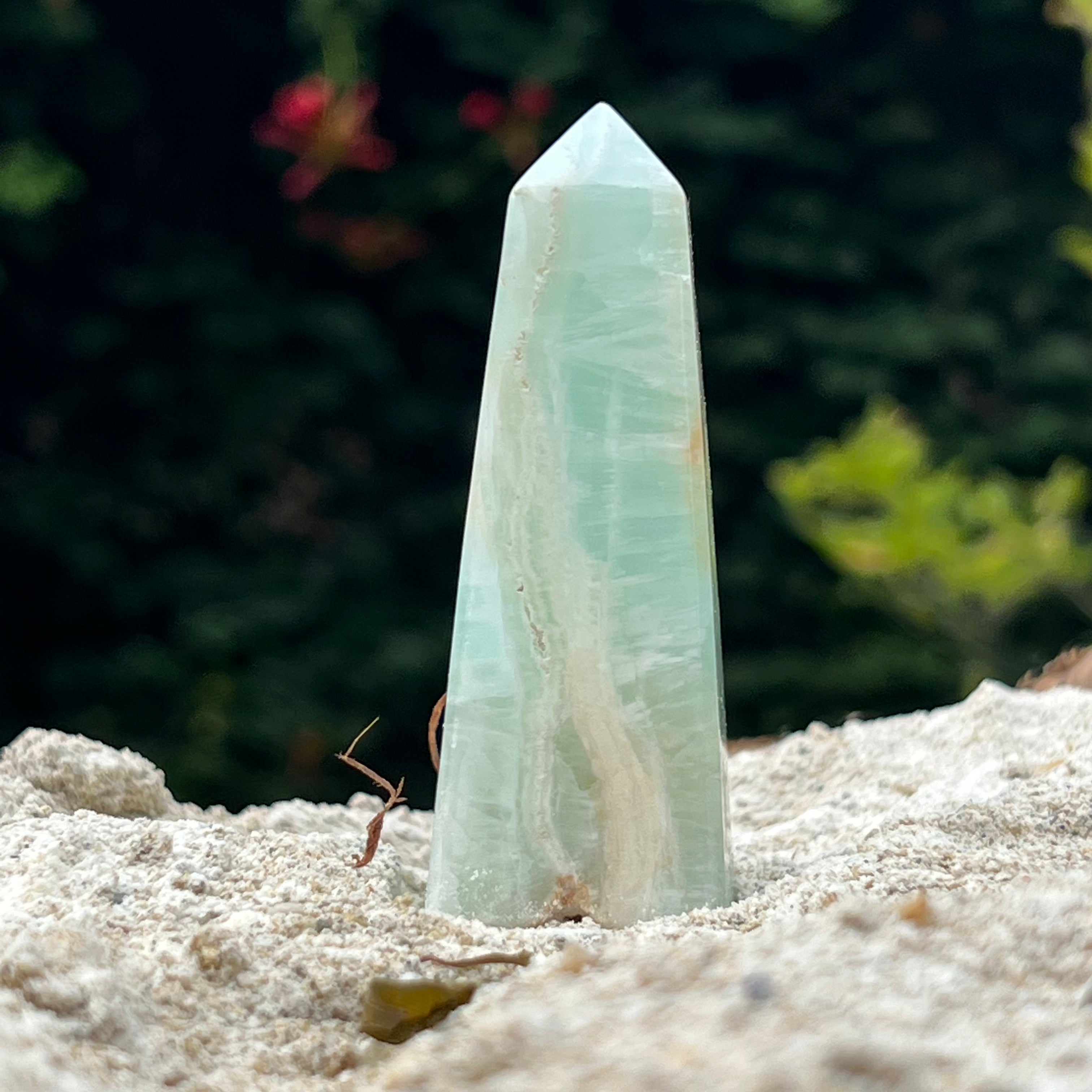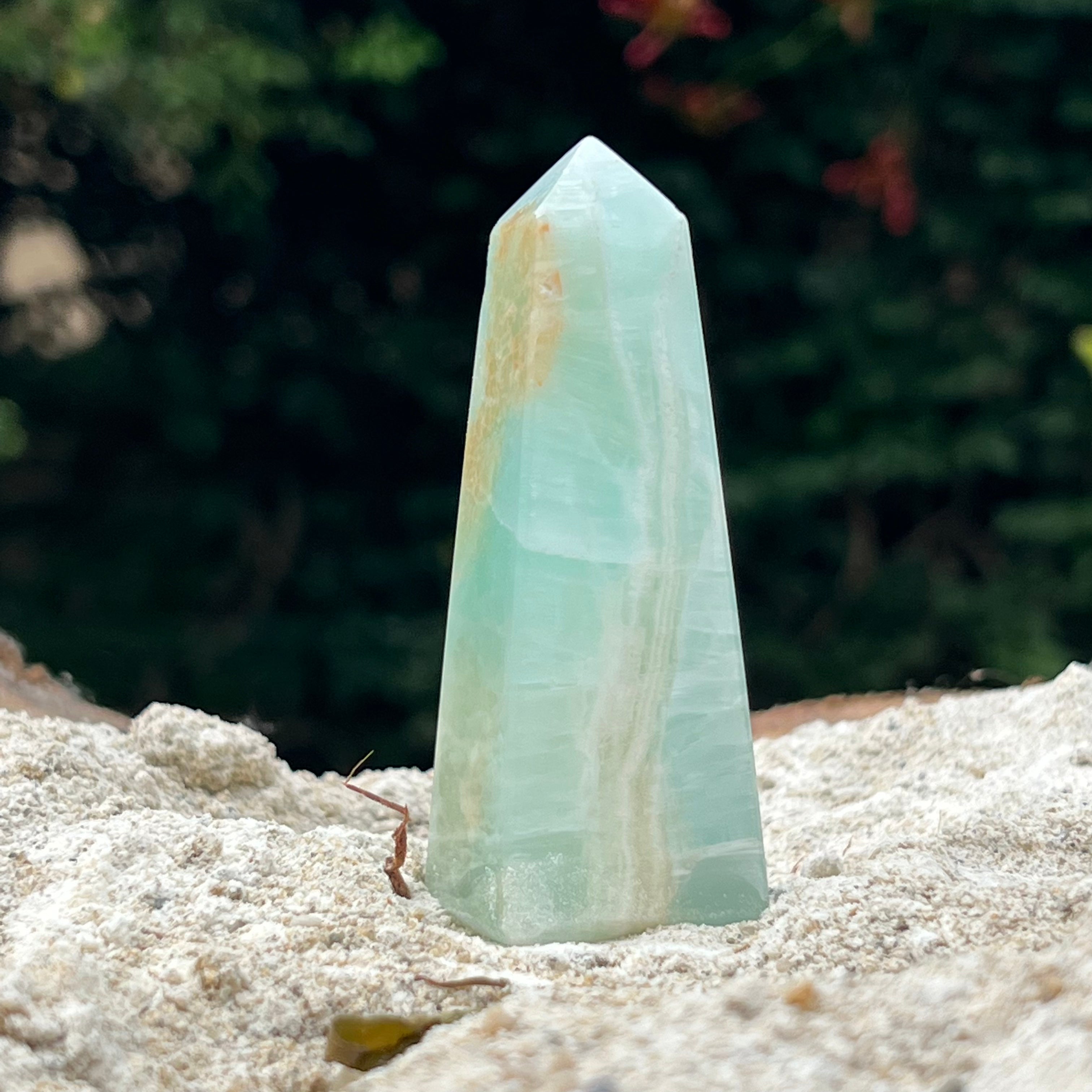 Torre/obelisco de calcita azul m4, tamaño 8 cm