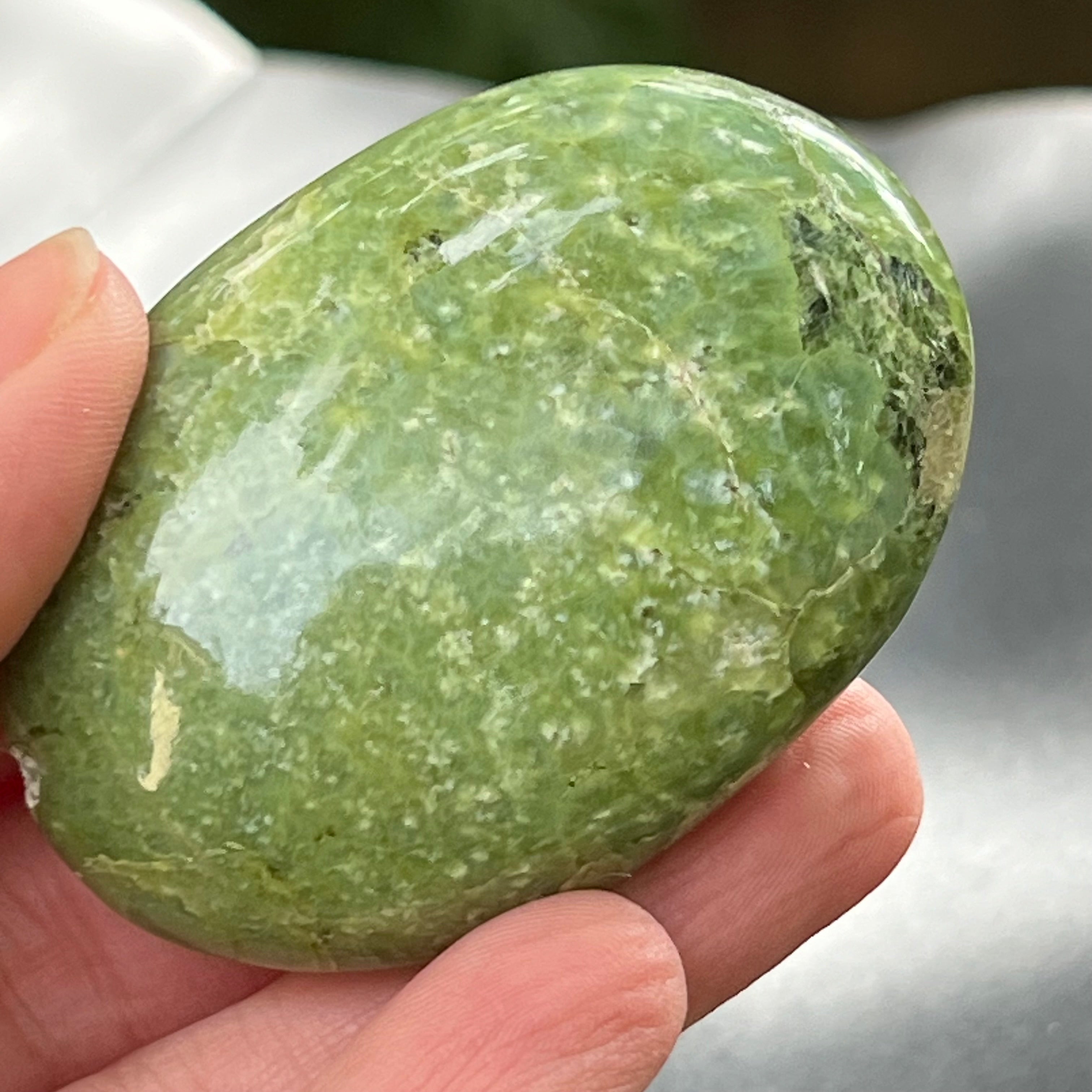 La tremolita emana una energía similar a la que proporciona la serpentina, ayuda a alinear toda la columna de chakras y estimula la fuerza vital.