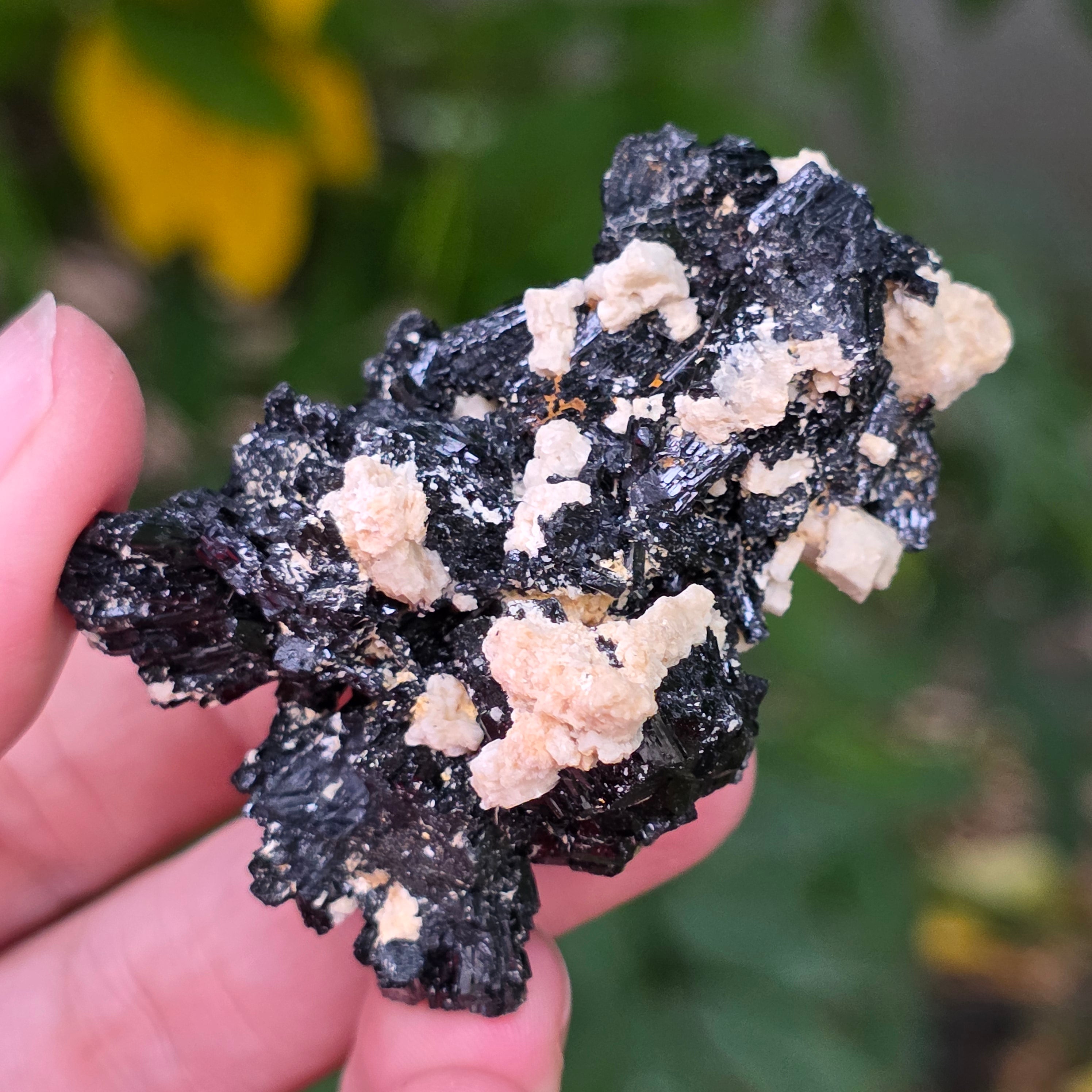 La turmalina negra, también conocida como schorl, está compuesta por una mezcla compleja de borosilicatos y se encuentra en diversas formas cristalinas. Es un mineral muy duro y tiene una gran resistencia a arañazos y desgaste.