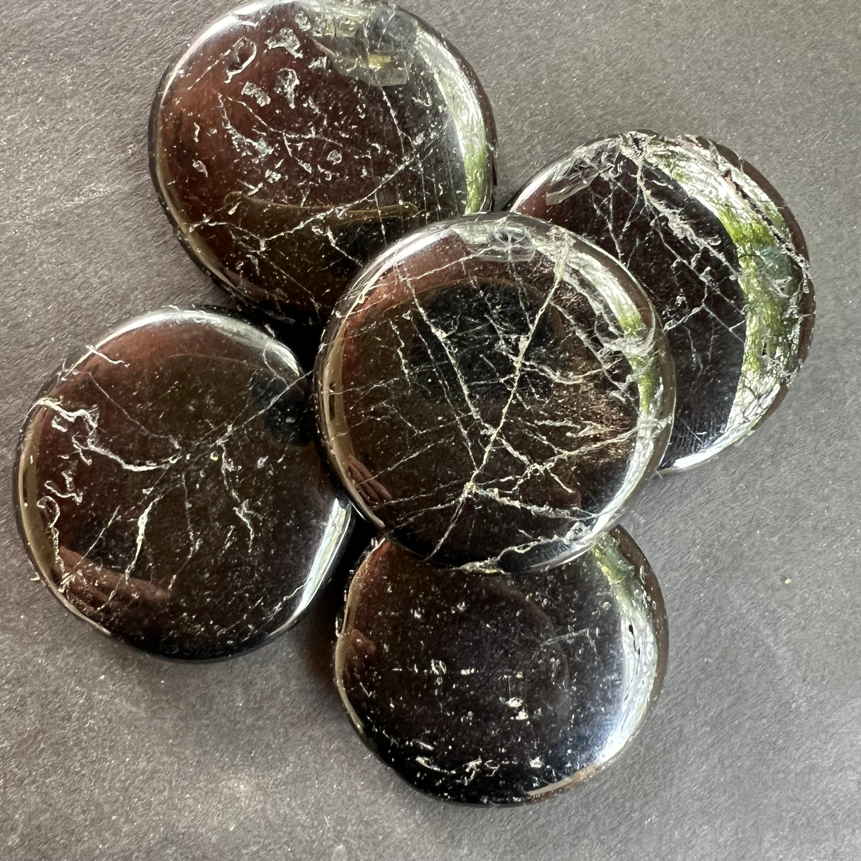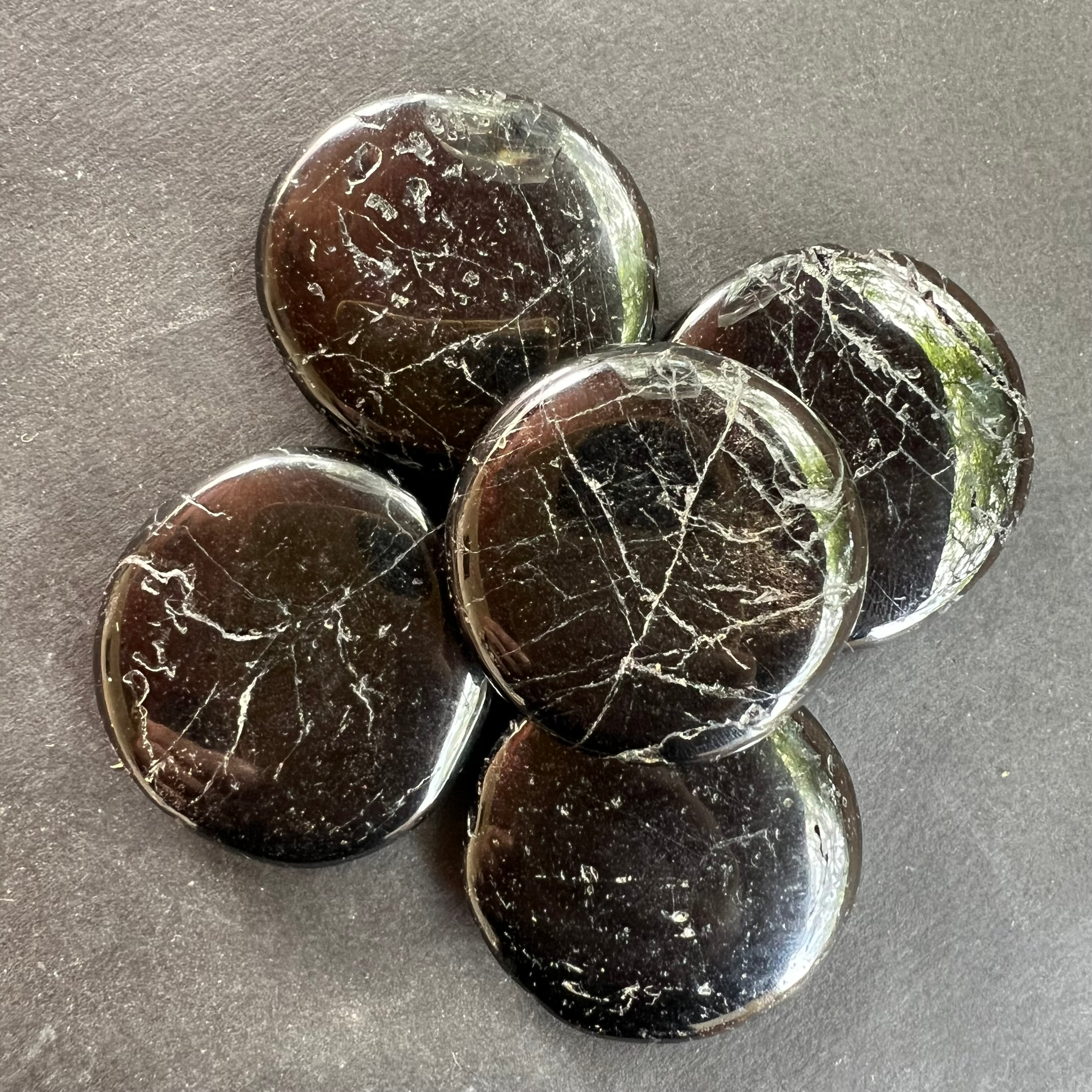 Turmalina negra palmstone, con dimensiones comprendidas entre 3 y 5 cm. El precio varía según el tamaño de la piedra, por favor seleccione el tamaño deseado.