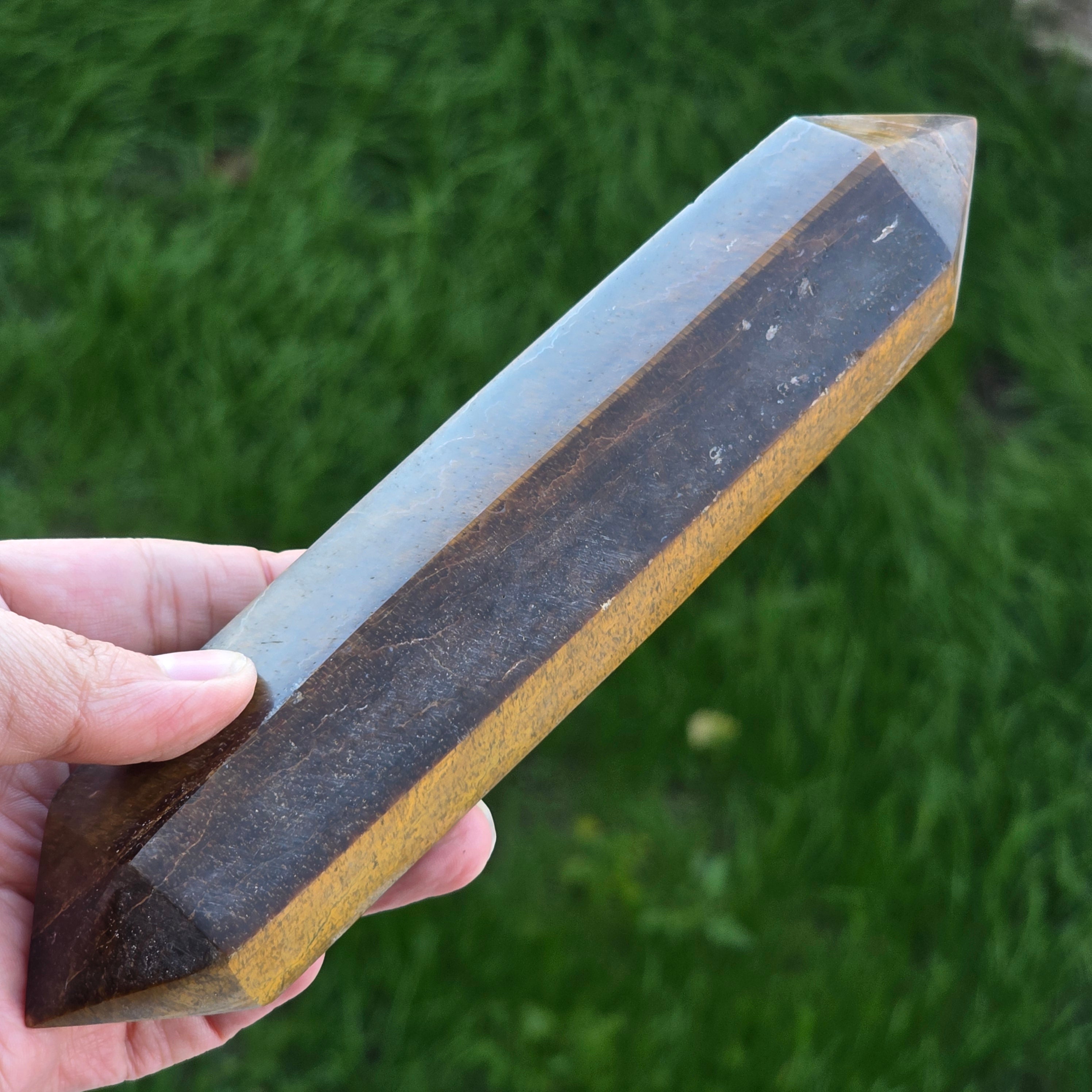 Esta varita de masaje de ojo de tigre es una pieza única, esculpida y pulida para canalizar la energía concentrada de la Tierra a través de una forma ergonómica, ideal para rituales de sanación, masaje energético o relajación profunda.