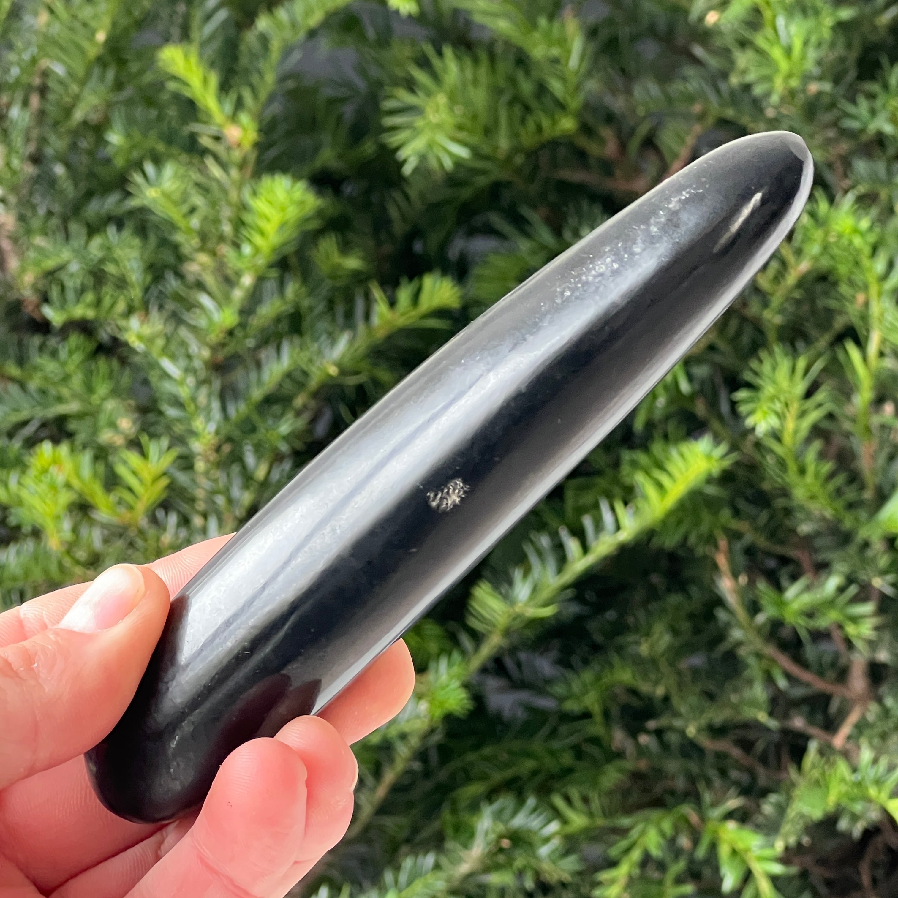Esta varita de masaje está hecha de basalto de alta calidad, una roca volcánica venerada por sus propiedades de retención del calor y su textura suave. La energía natural del basalto mejora en general la experiencia del masaje.