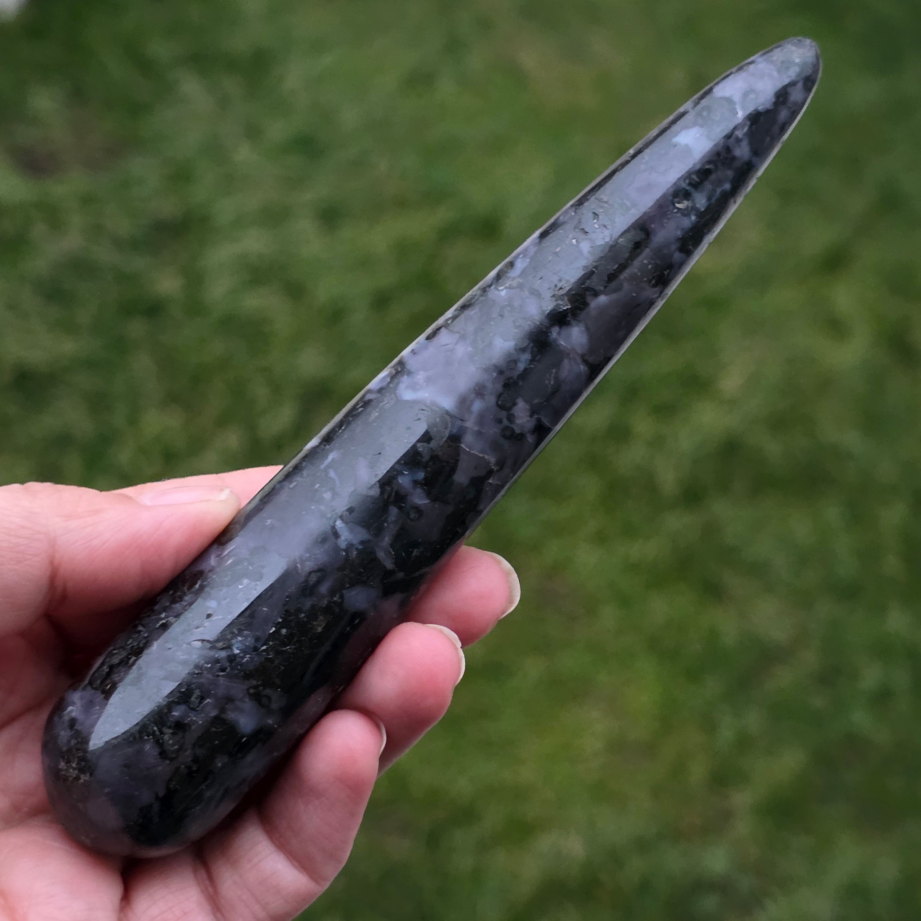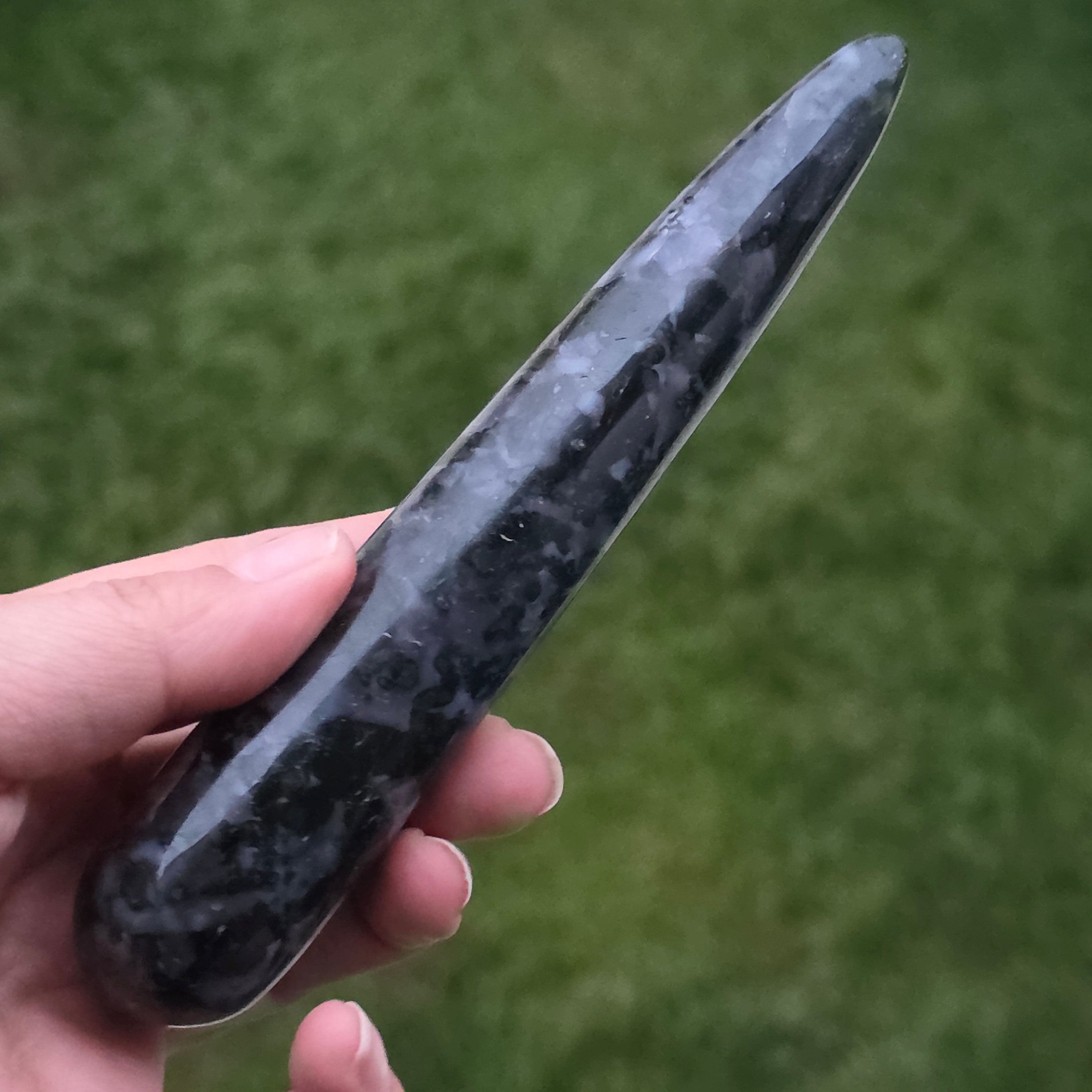 El merlín es una piedra semipreciosa rara y fascinante, reconocida por su combinación de colores contrastantes, blanco y negro, que le da un aspecto único. Se considera una variedad de ópalo dendrítico o una combinación de cuarzo y otros minerales, y su estructura compleja lo hace apreciado tanto por su belleza como por las supuestas propiedades energéticas. El merlín es conocido en el mundo de la cristaloterapia por sus energías místicas y su asociación con la intuición, la clarividencia y el conocimiento espiritual.