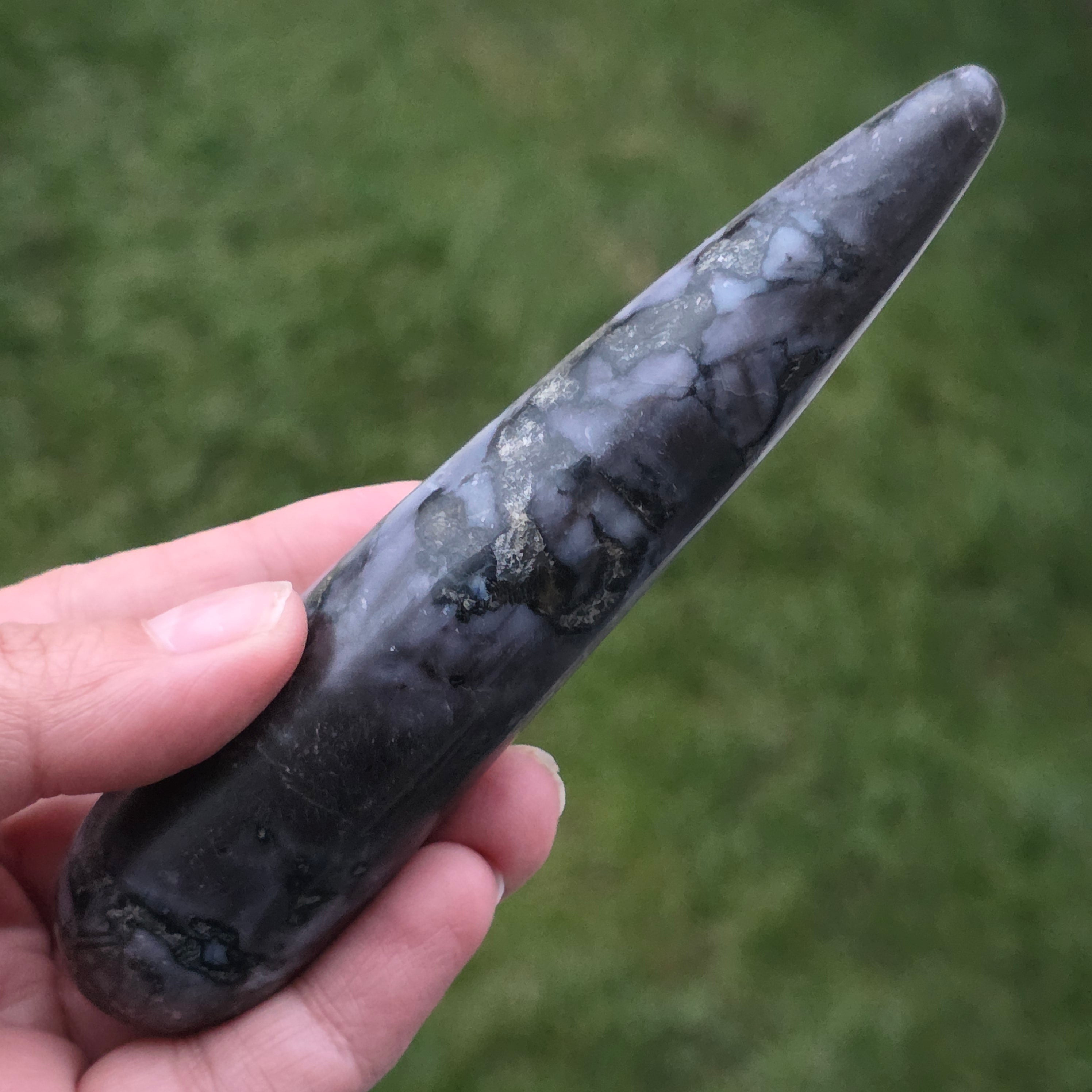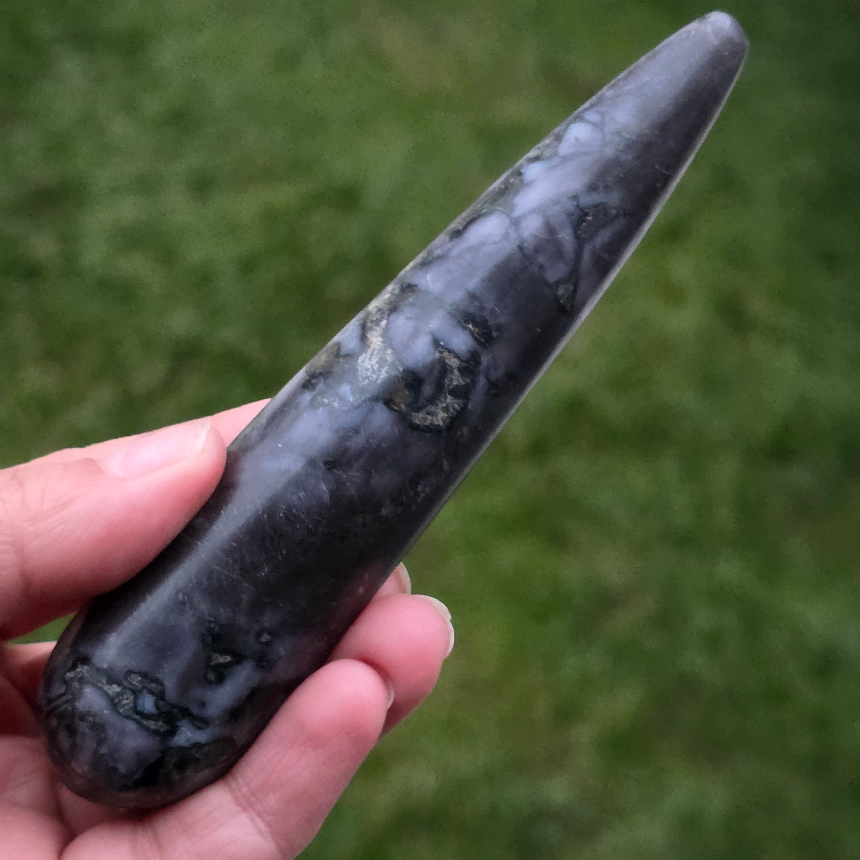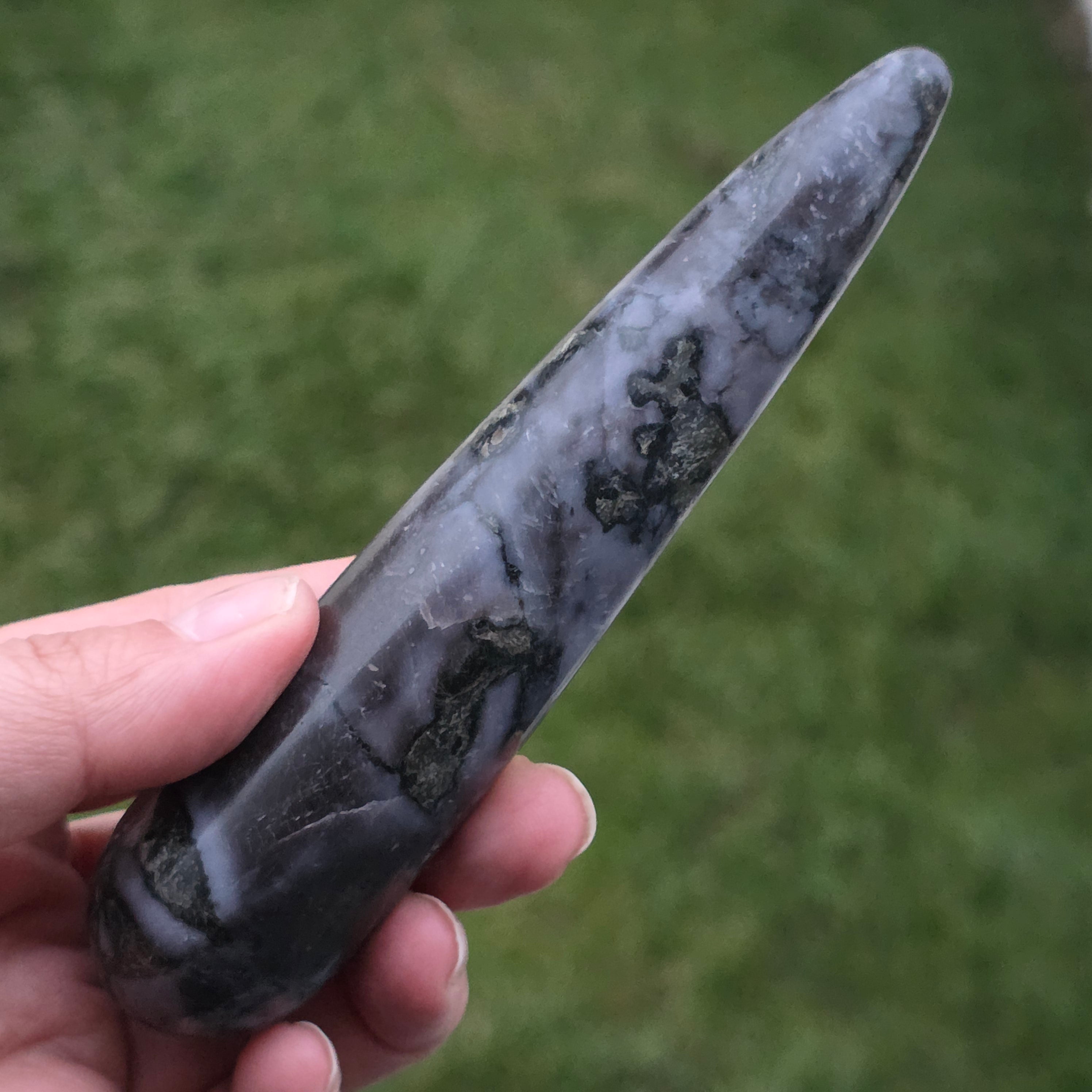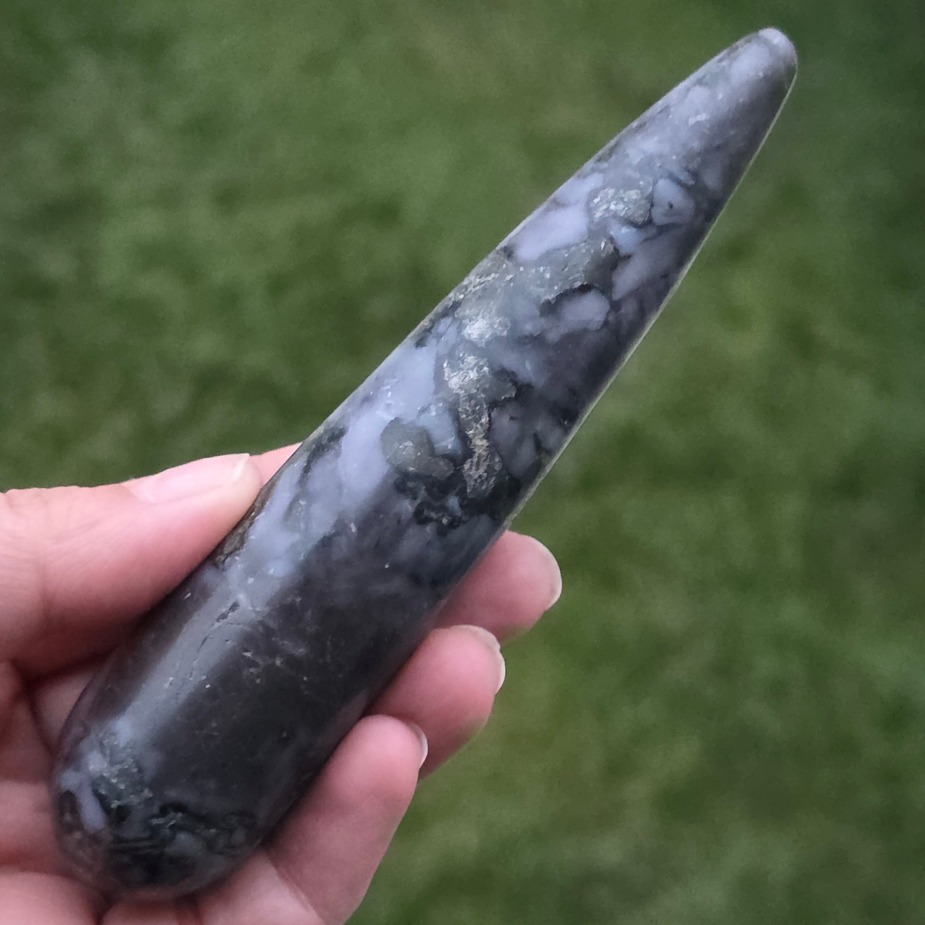 El merlín es una piedra semipreciosa rara y fascinante, reconocida por su combinación de colores contrastantes, blanco y negro, que le otorgan un aspecto único. Se considera una variedad de ópalo dendrítico o una combinación de cuarzo y otros minerales, y su estructura compleja la hace apreciada tanto por su belleza como por sus supuestas propiedades energéticas. El merlín es conocido en el mundo de la cristaloterapia por sus energías místicas y su asociación con la intuición, la clarividencia y el conocimiento espiritual.